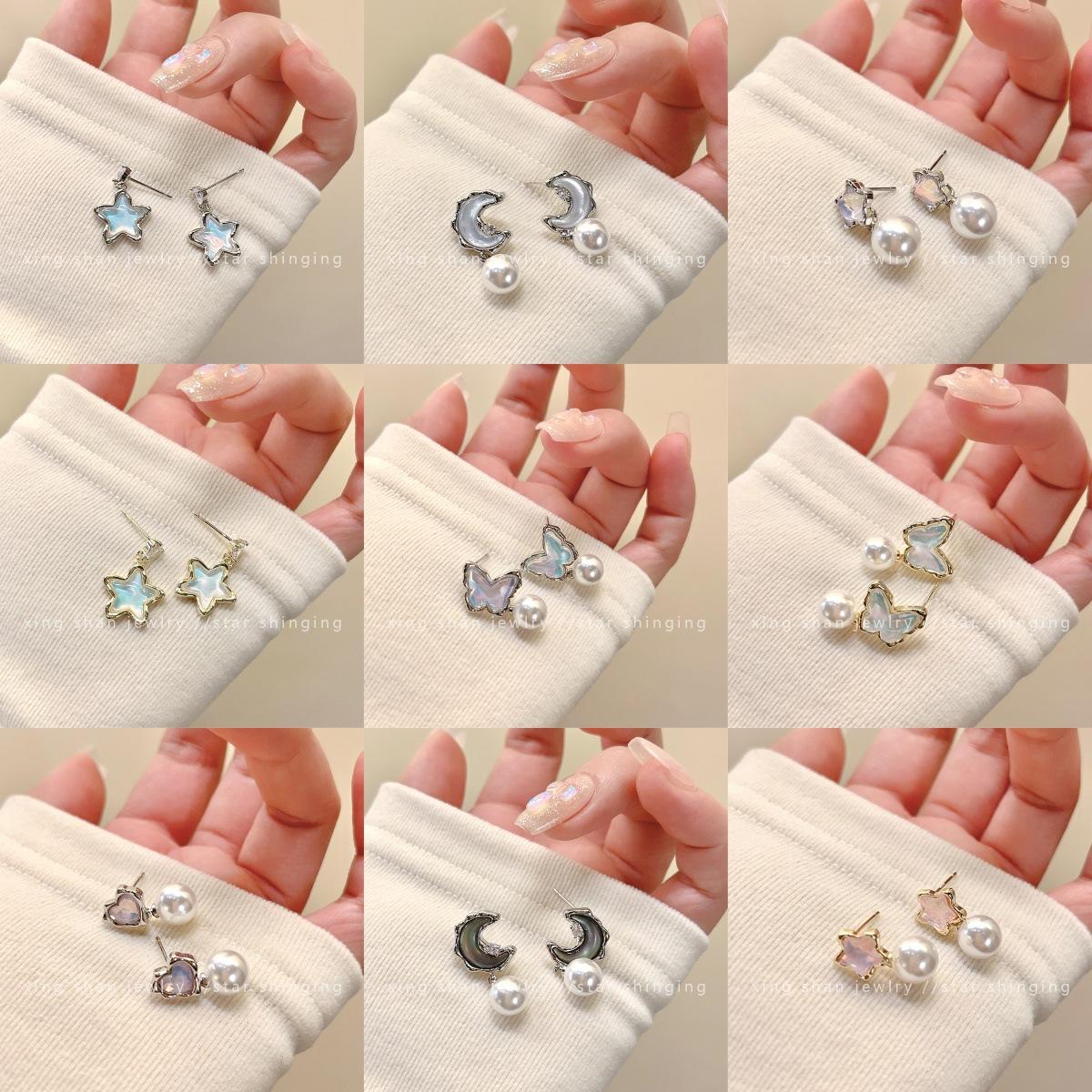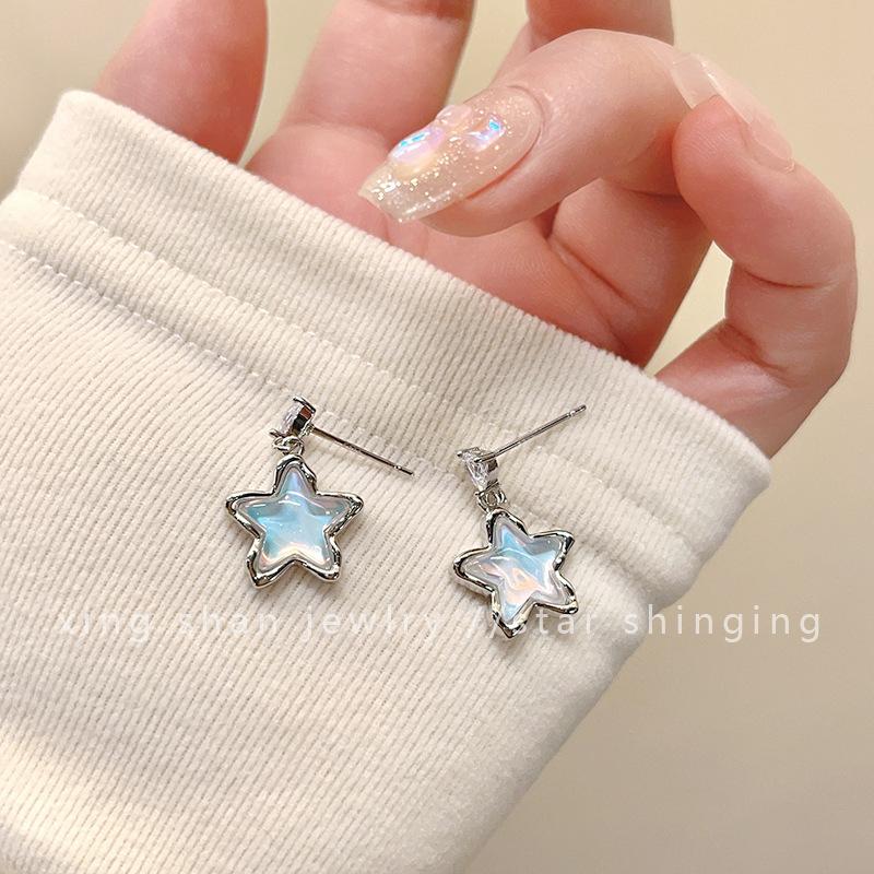 Pendientes de aguja de plata con circonita estrellada de Shining Star, pendientes de moda para mujer con sensación de frío y temperamento 2024, nuevos pendientes