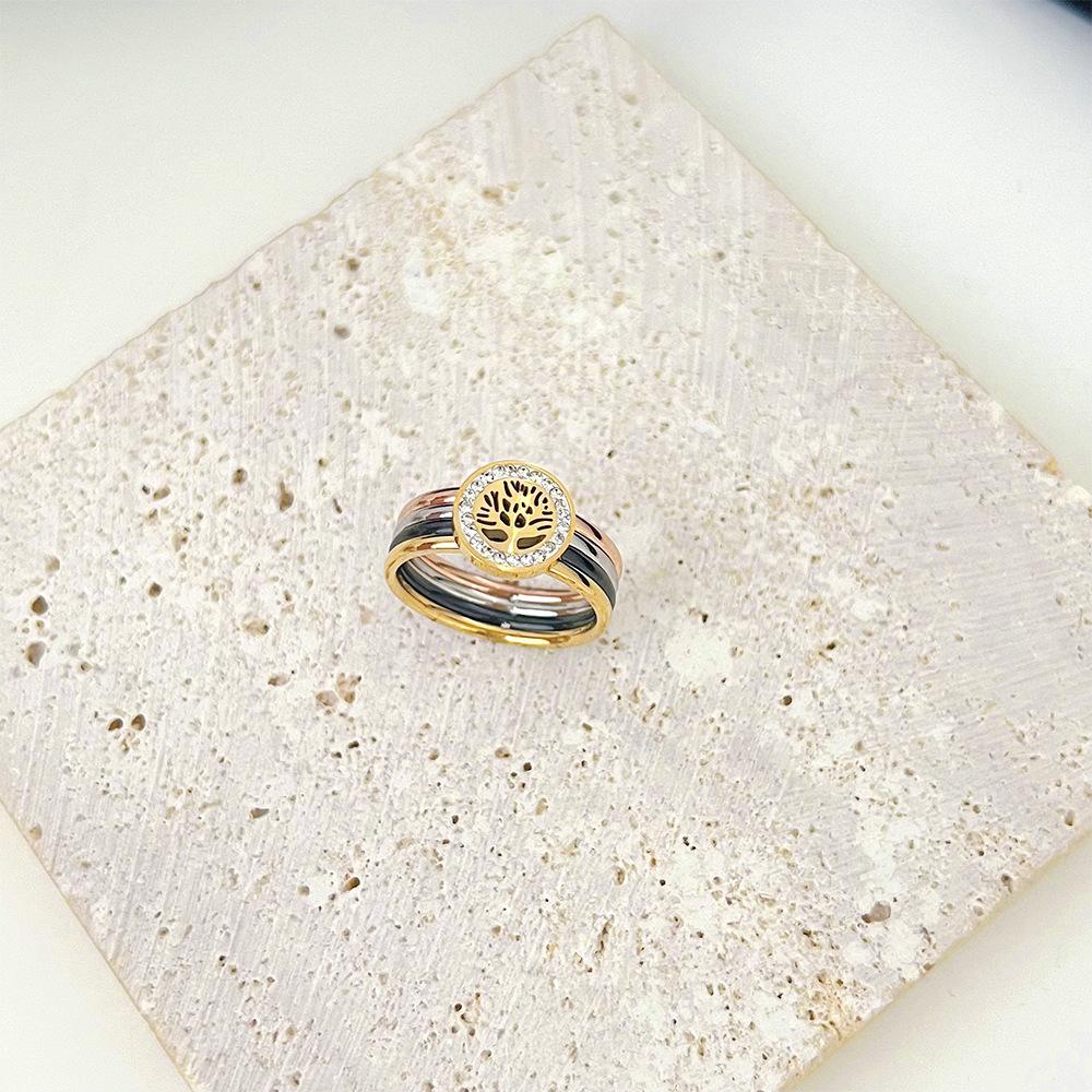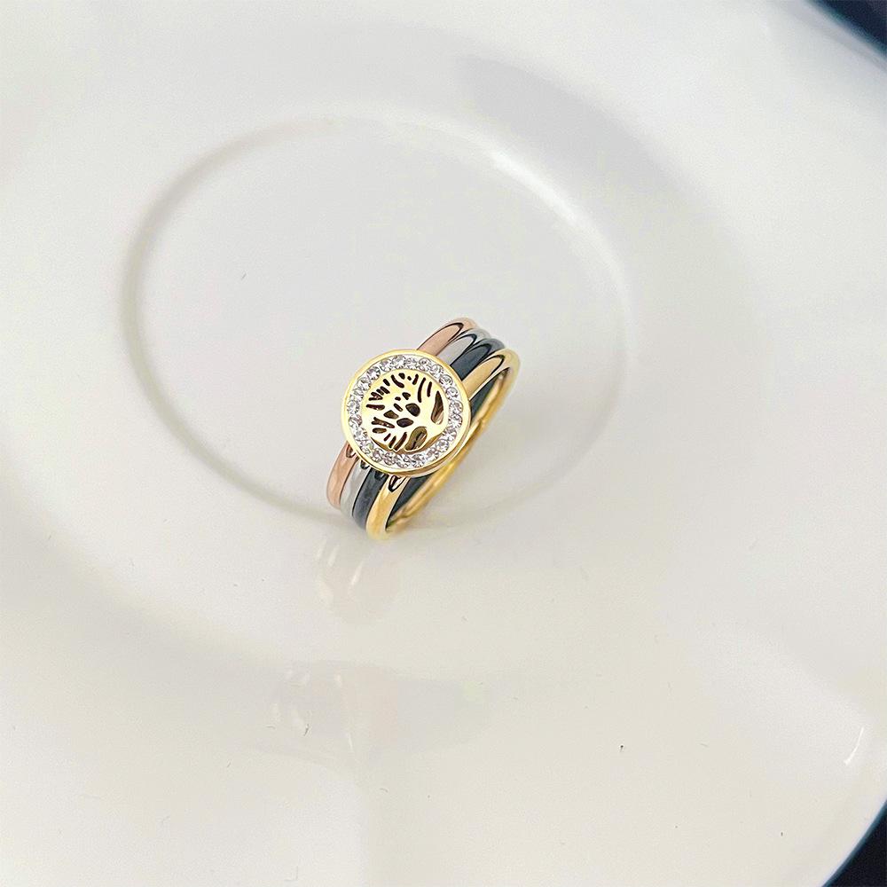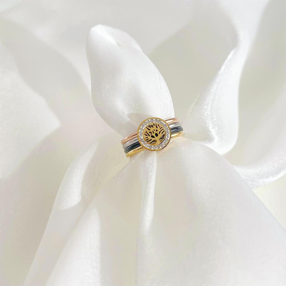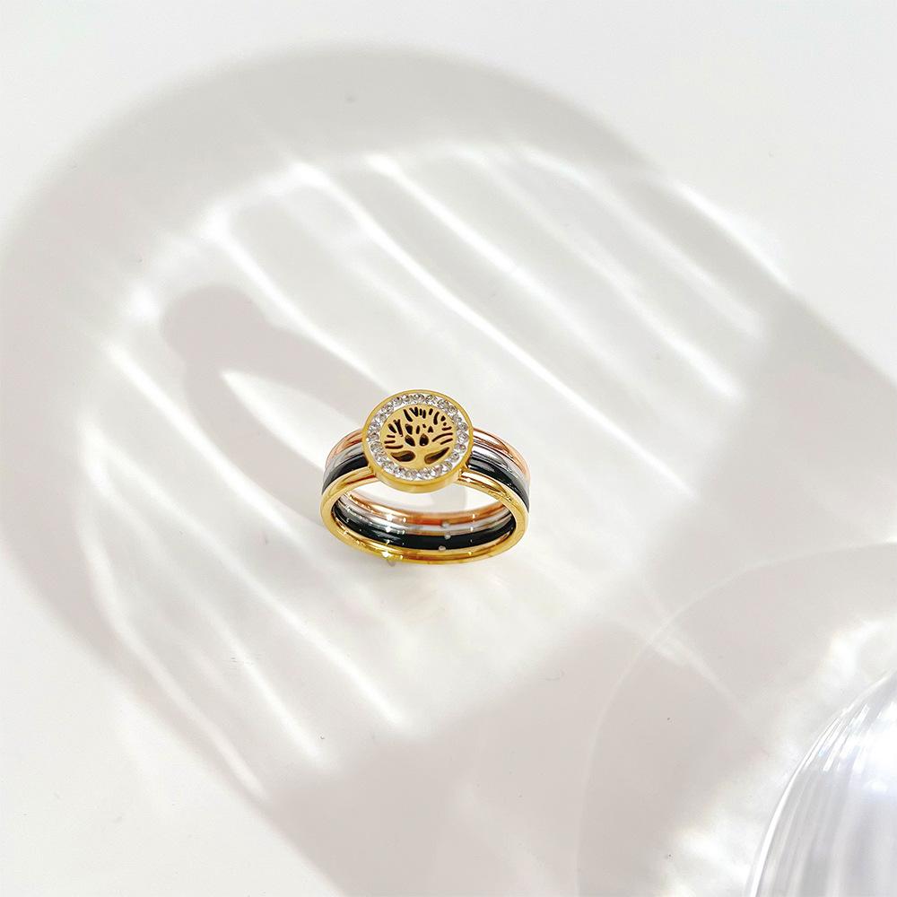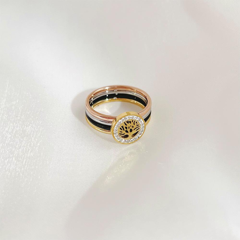 Anillo árbol del mundo de moda de lujo ligero estilo europeo y americano para mujer exquisito elegante de alta gama joyería de mano personalidad diamante anillo que combina con todo
