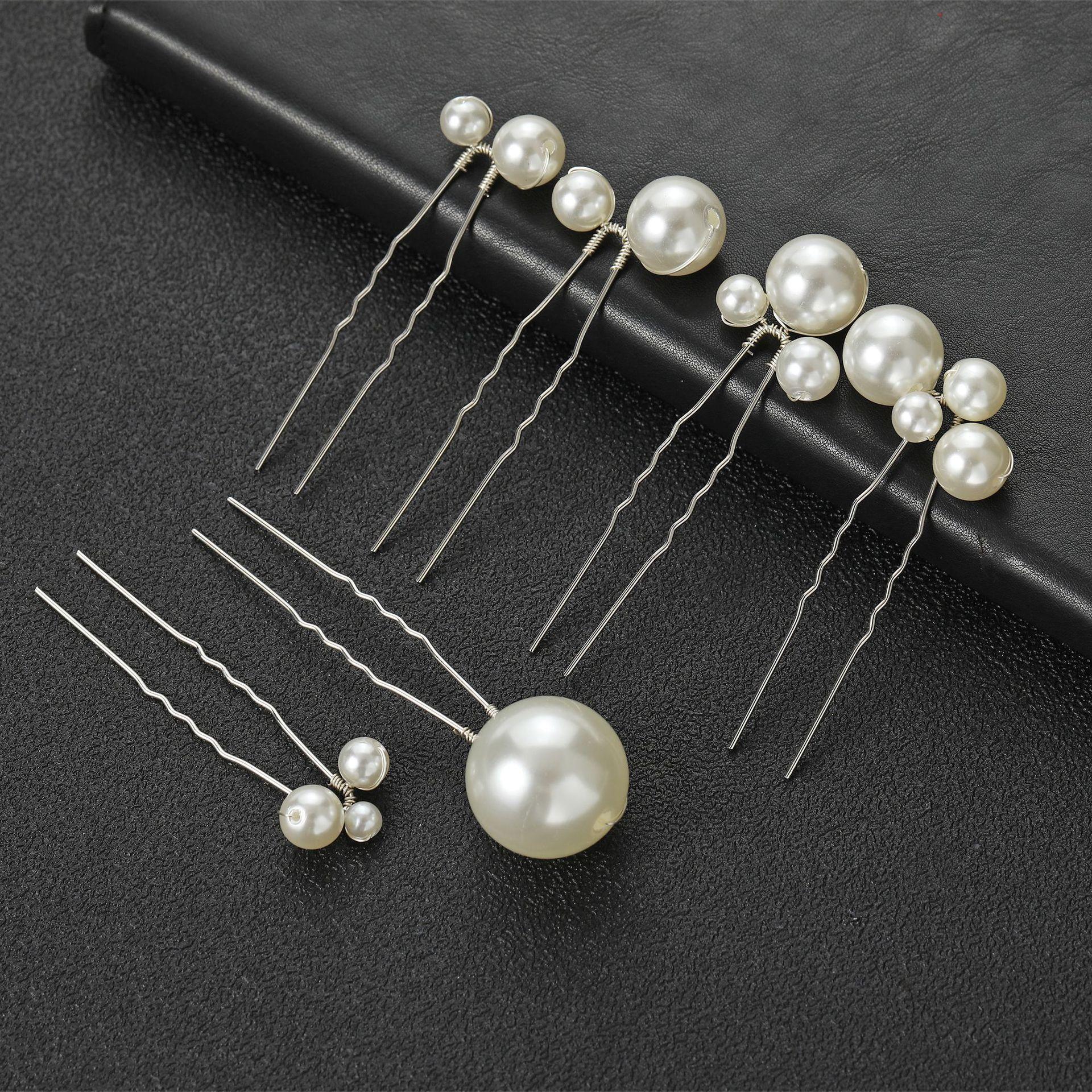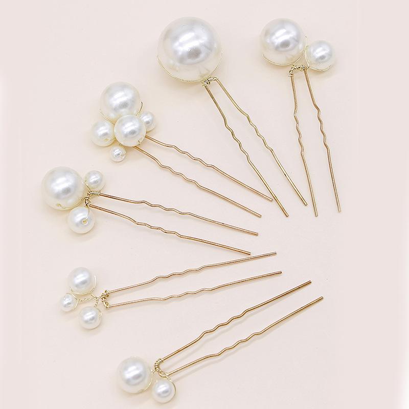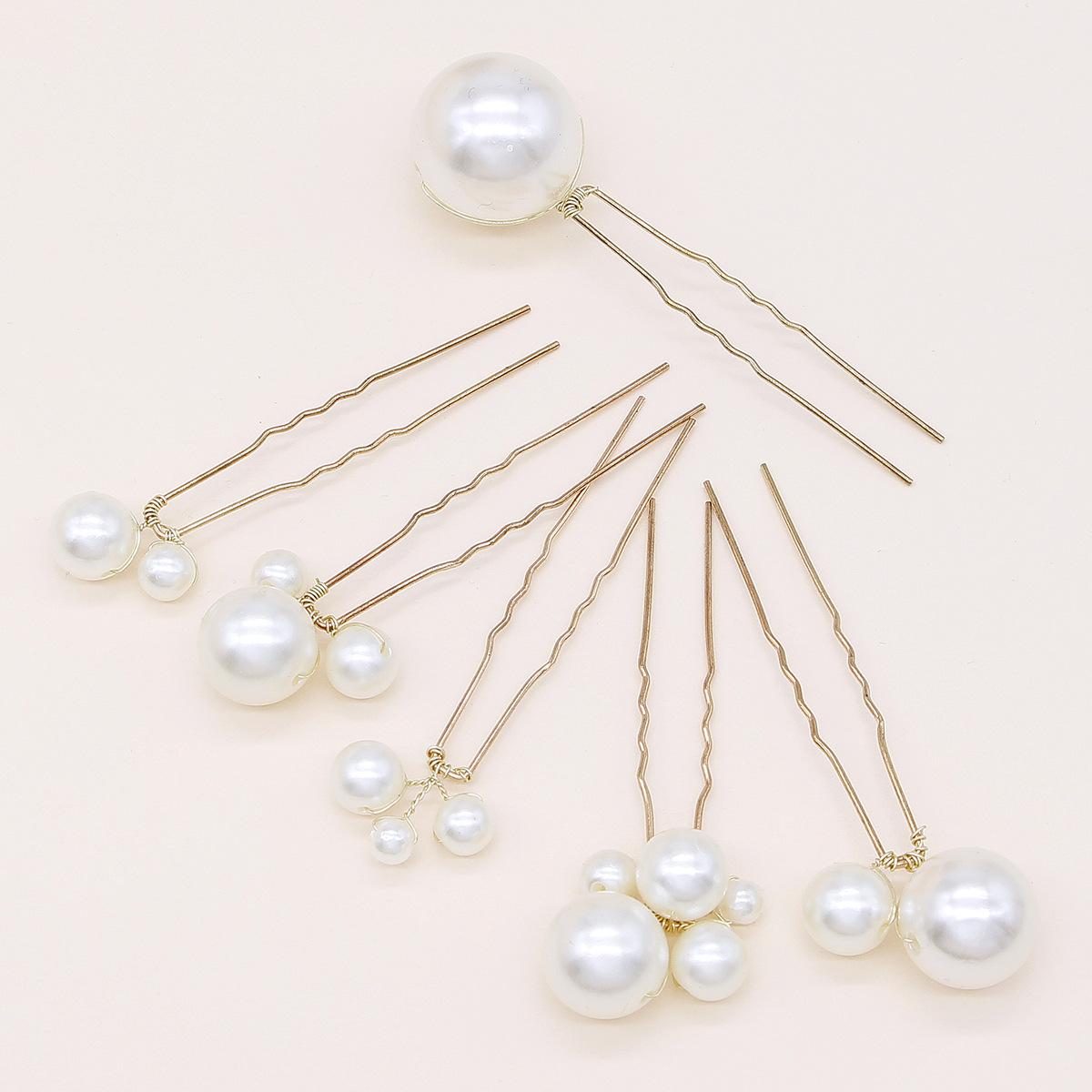 Accesorios para el cabello de novia para boda 6 un grupo de horquillas de perla brillante en forma de U horquilla Europa y Estados Unidos transfronterizos
