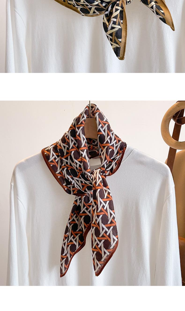Bufanda de algodón y lino a cuadros de 70 cm con banda para el cabello, bufanda cuadrada pequeña para mujer, bufanda fina de estilo coreano, bufanda decorativa para traje, bufanda a juego.