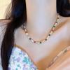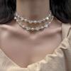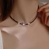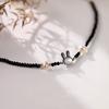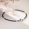 Cadena de clavícula con forma de conejo y concha de cristal negro de perla de agua dulce para mujer, estilo coreano, elegante diseño de moda de celebridades de Internet, cadena de clavícula con sentido