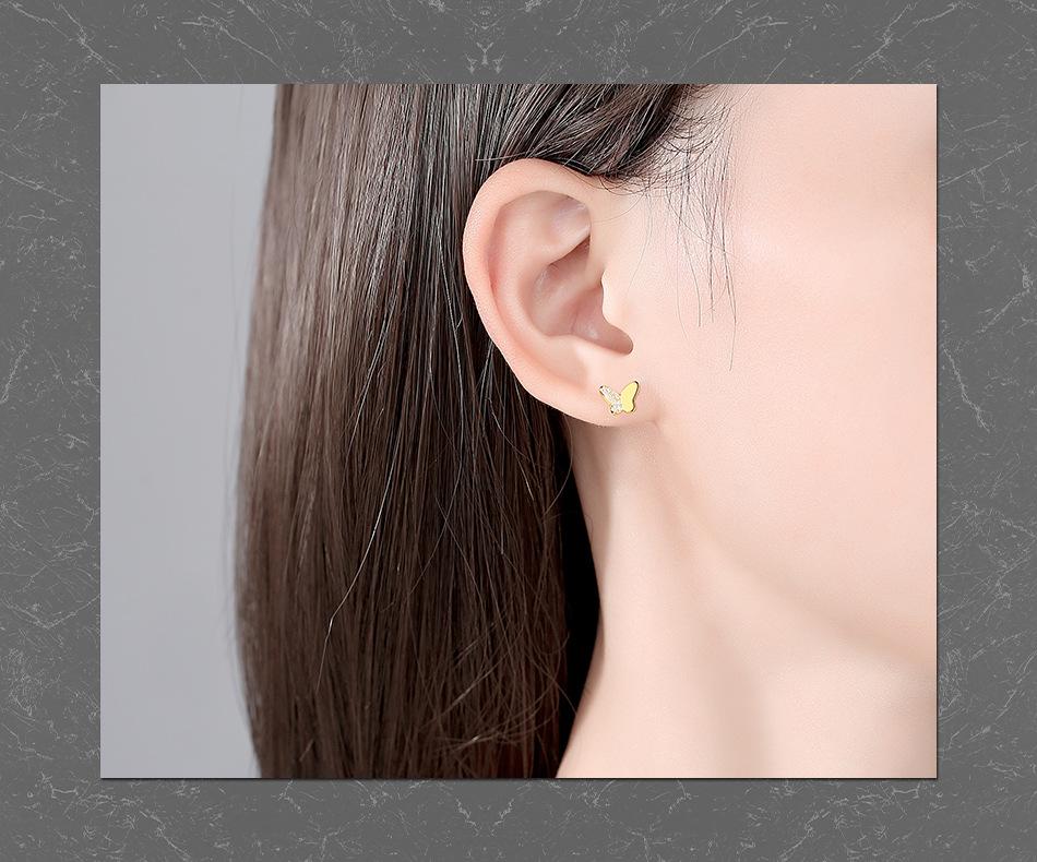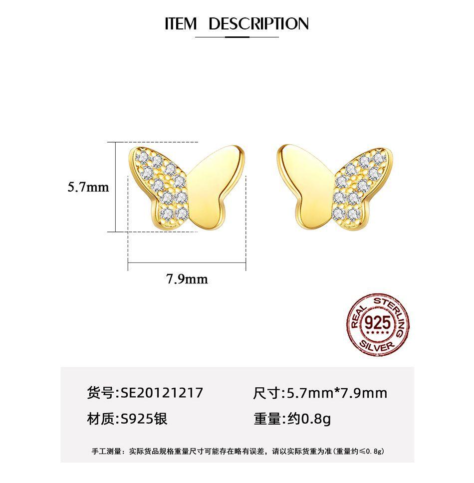 PAG & MAG - Nuevos pendientes de mariposa para mujer, pendientes de circonita microincrustada en plata S925, versión coreana de la exquisita fábrica de joyas con orejas de hada.