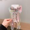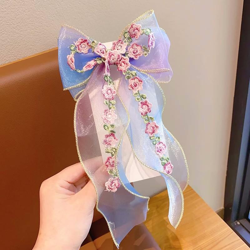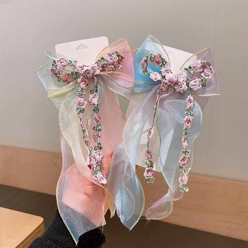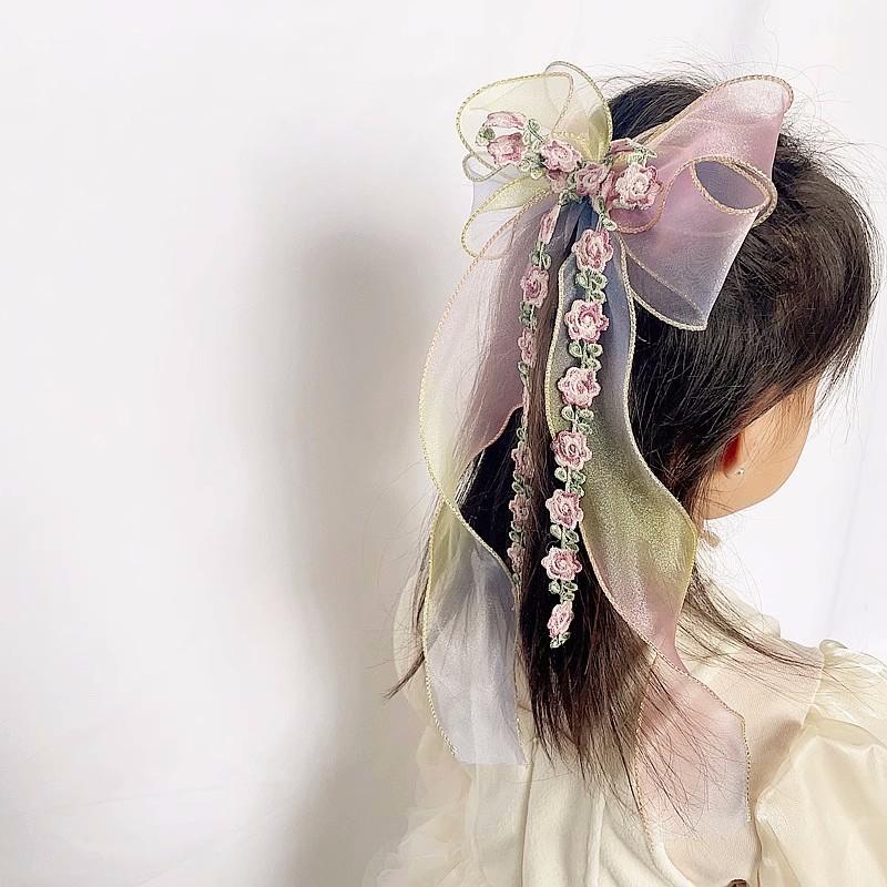 Horquilla de malla bordada para niña, con lazo, estilo princesa, con clip superior, para niña