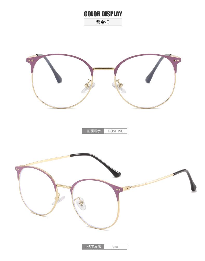 2023 nueva moda versión coreana de gafas sencillas anti-luz azul personalidad retro lisas montura redonda espejo plano con miopía