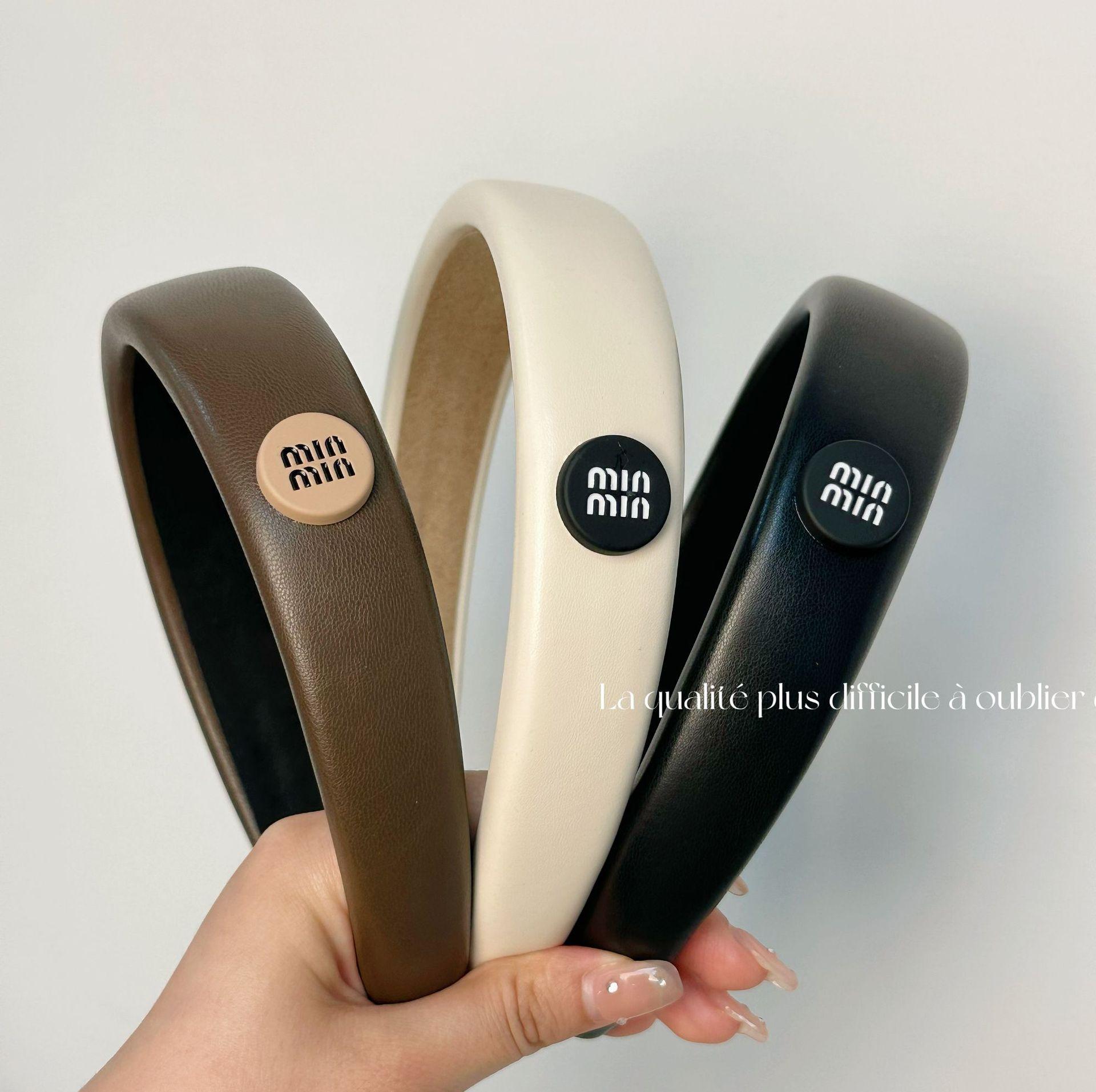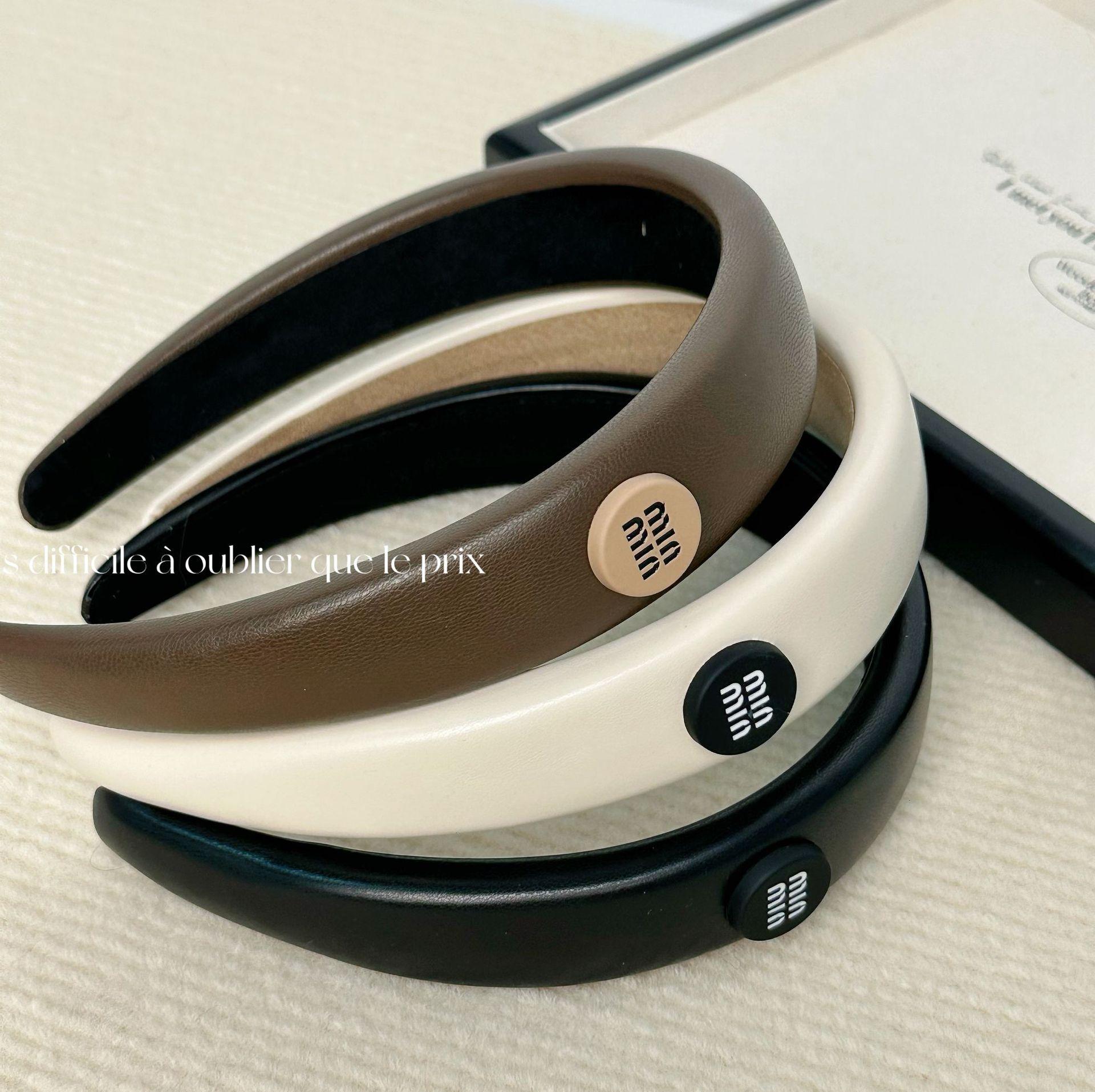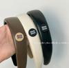 Diadema coreana de cuero con letra, hebilla redonda, esponja, nuevo diseño de otoño e invierno 2023, diadema con sentido del diseño, parte superior alta del cráneo, tocado sencillo