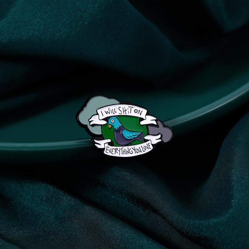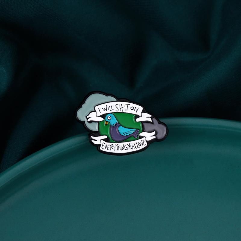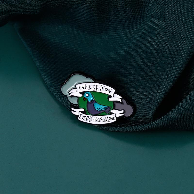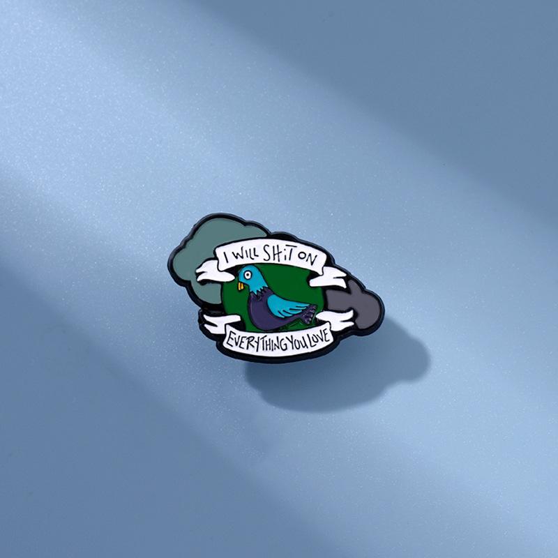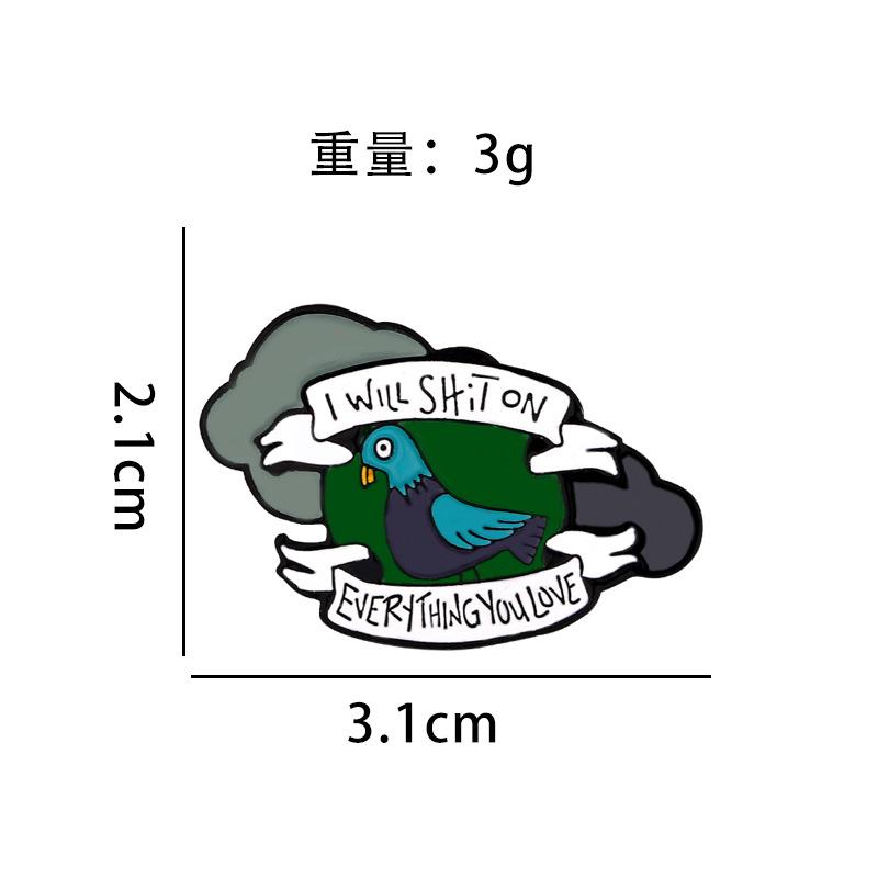 Broche de joyería de aleación con letras populares de comercio electrónico transfronterizo, insignia de pintura con forma de paloma de dibujos animados creativos, venta al por mayor