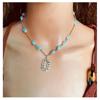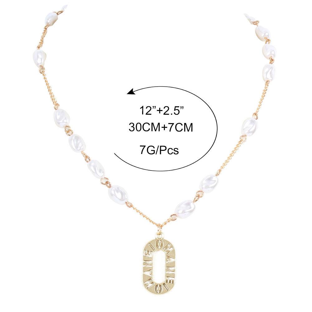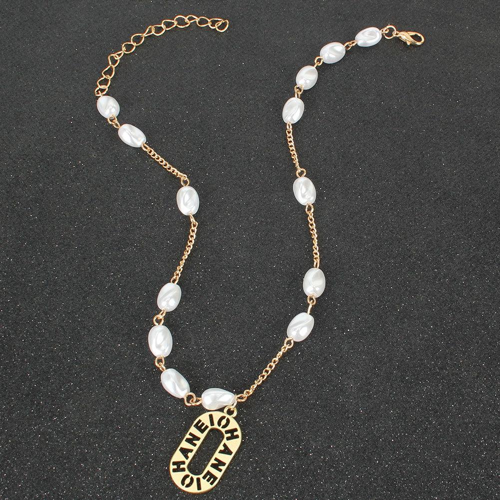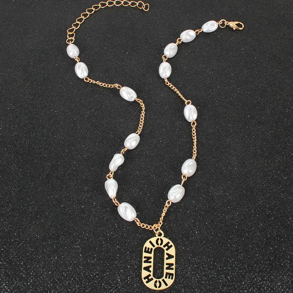Collar con colgante de letra de aleación de moda de estilo europeo y americano, cadena de clavícula de perla, collar sencillo con borde cruzado para mujer 16260