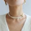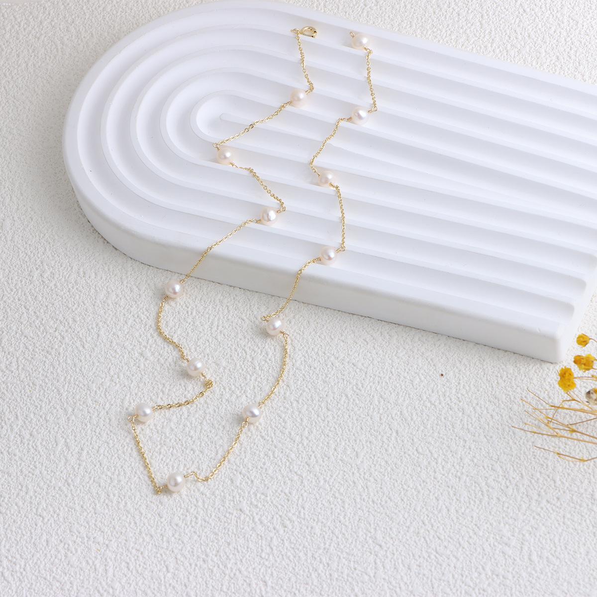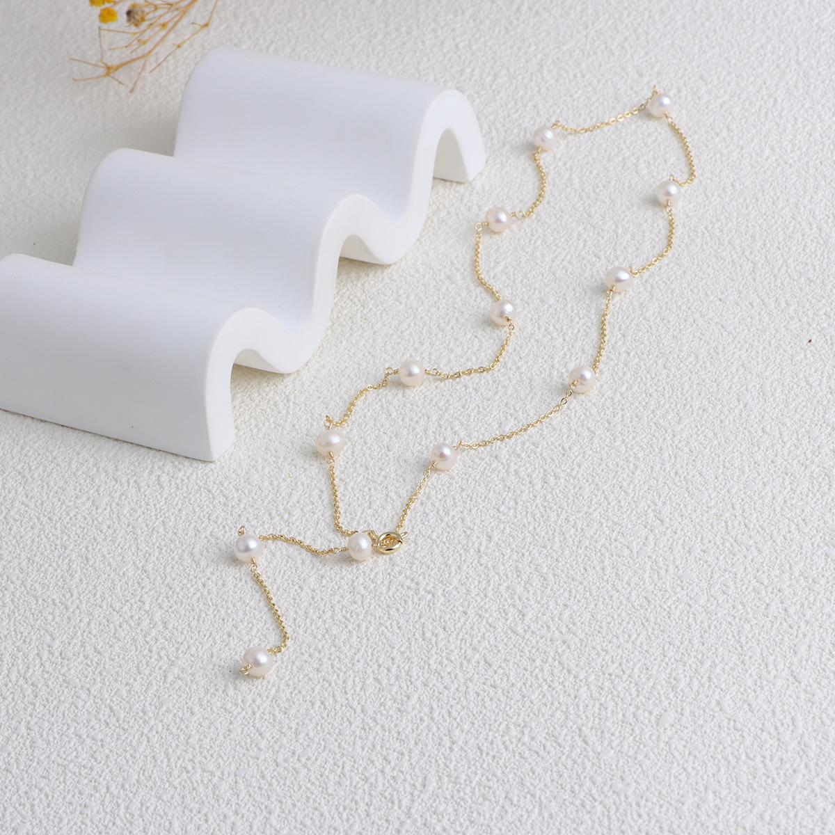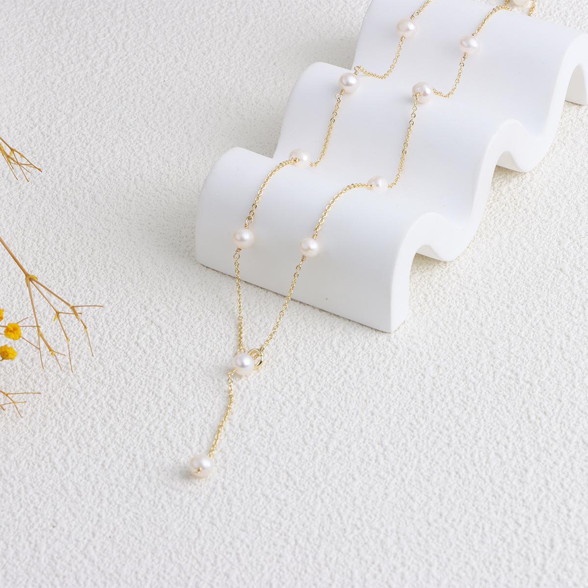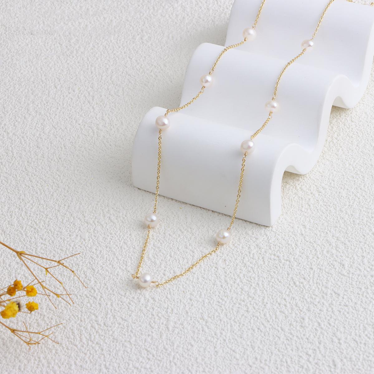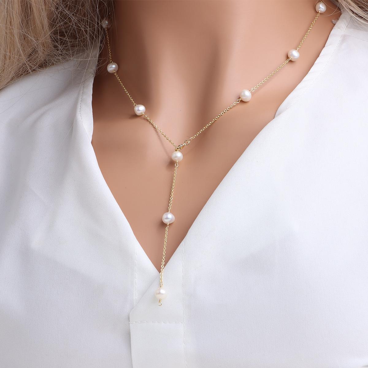 Cadena de clavícula con perlas de agua dulce doradas, joyería transfronteriza, de lujo, ligera y a la moda, combina con todo.