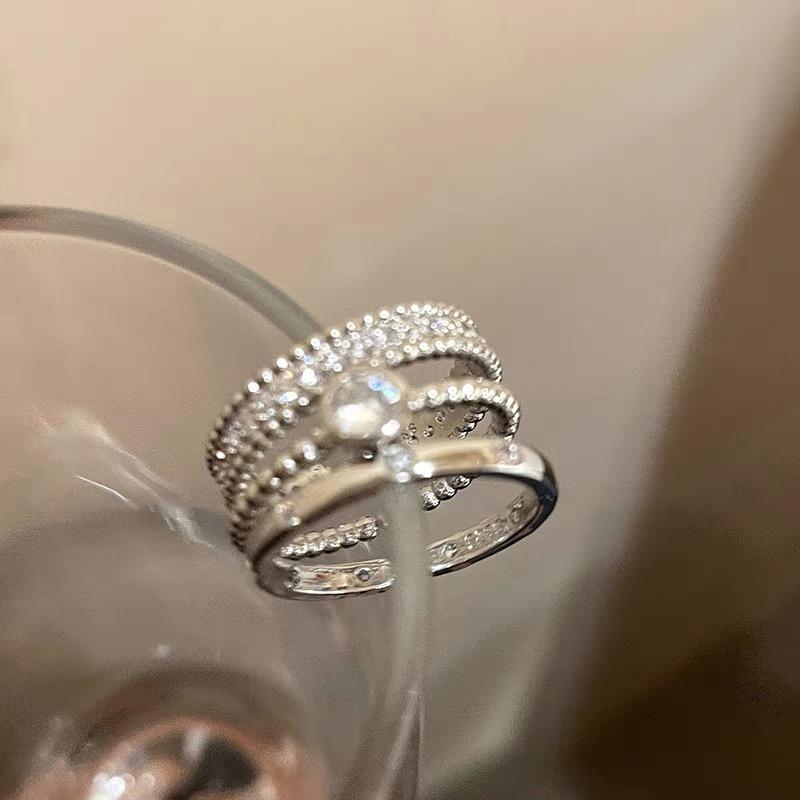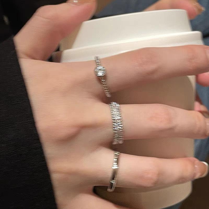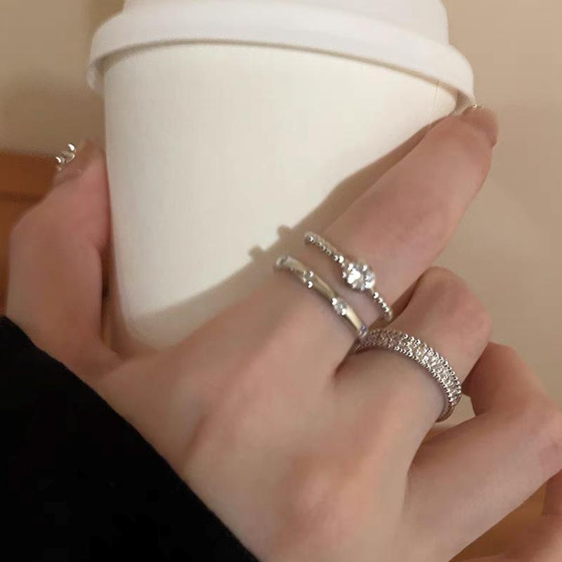 Anillo liso de metal con circonita, anillo abierto, adecuado para diseño de nicho femenino, anillo para el dedo índice con sentido avanzado, anillo simple de viento frío.