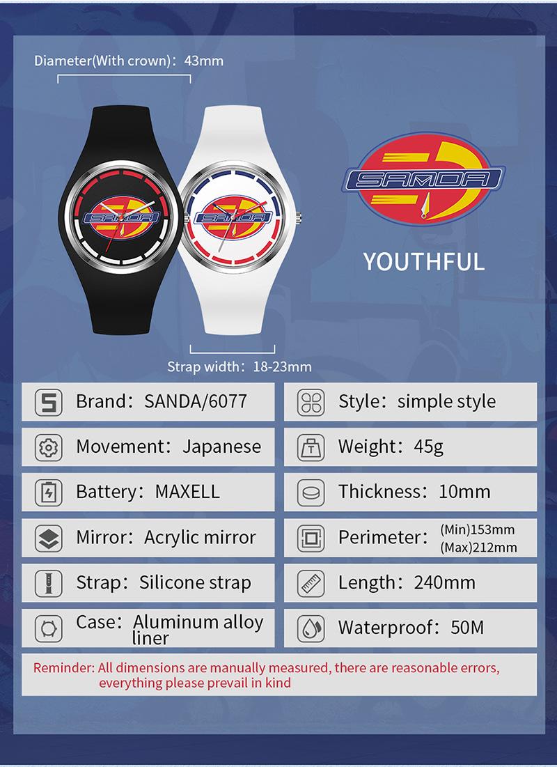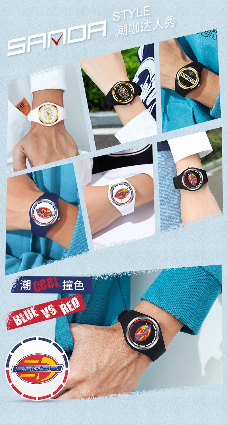 Reloj Sanda TJ6077 con correa de silicona para hombres y mujeres, estudiantes, moderno y creativo.