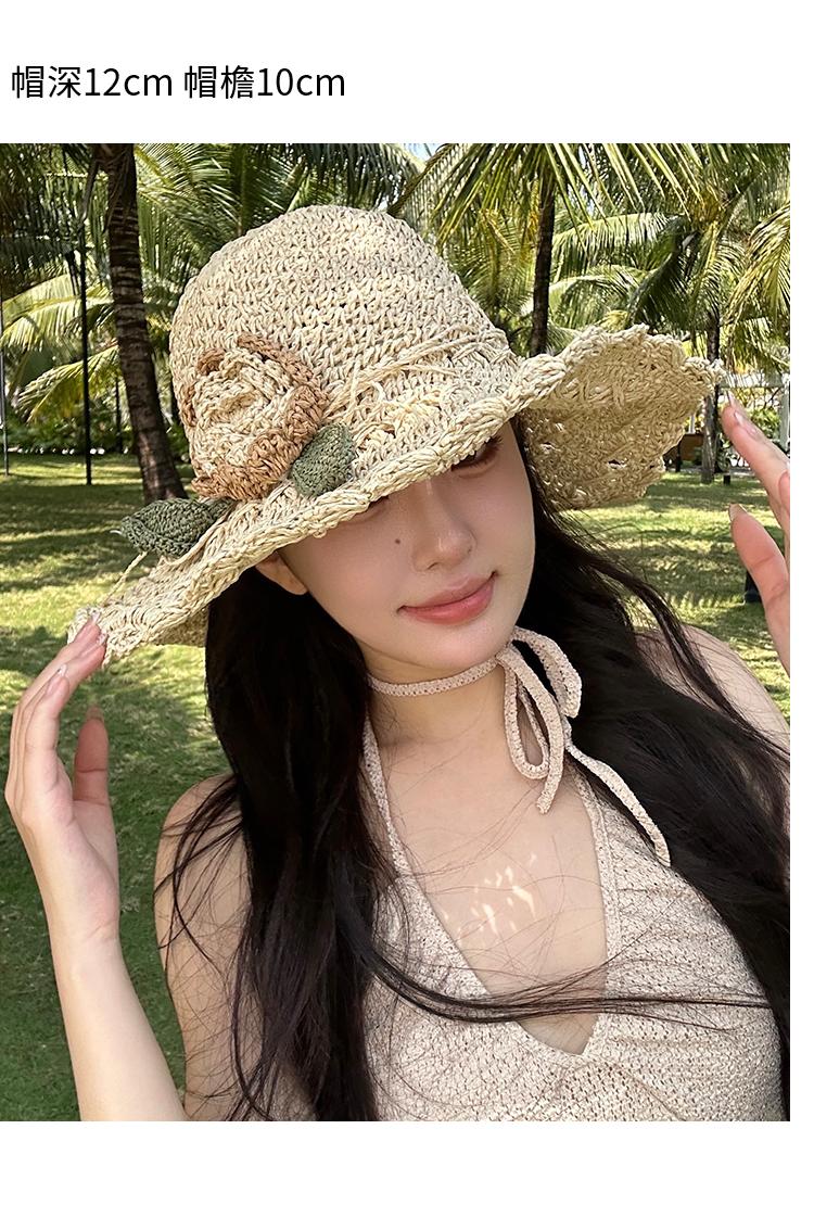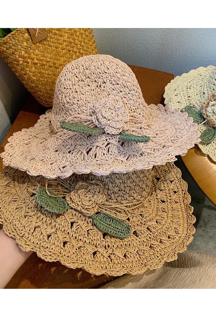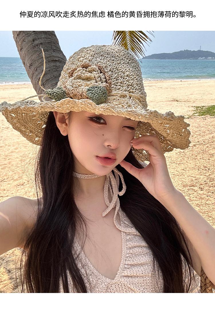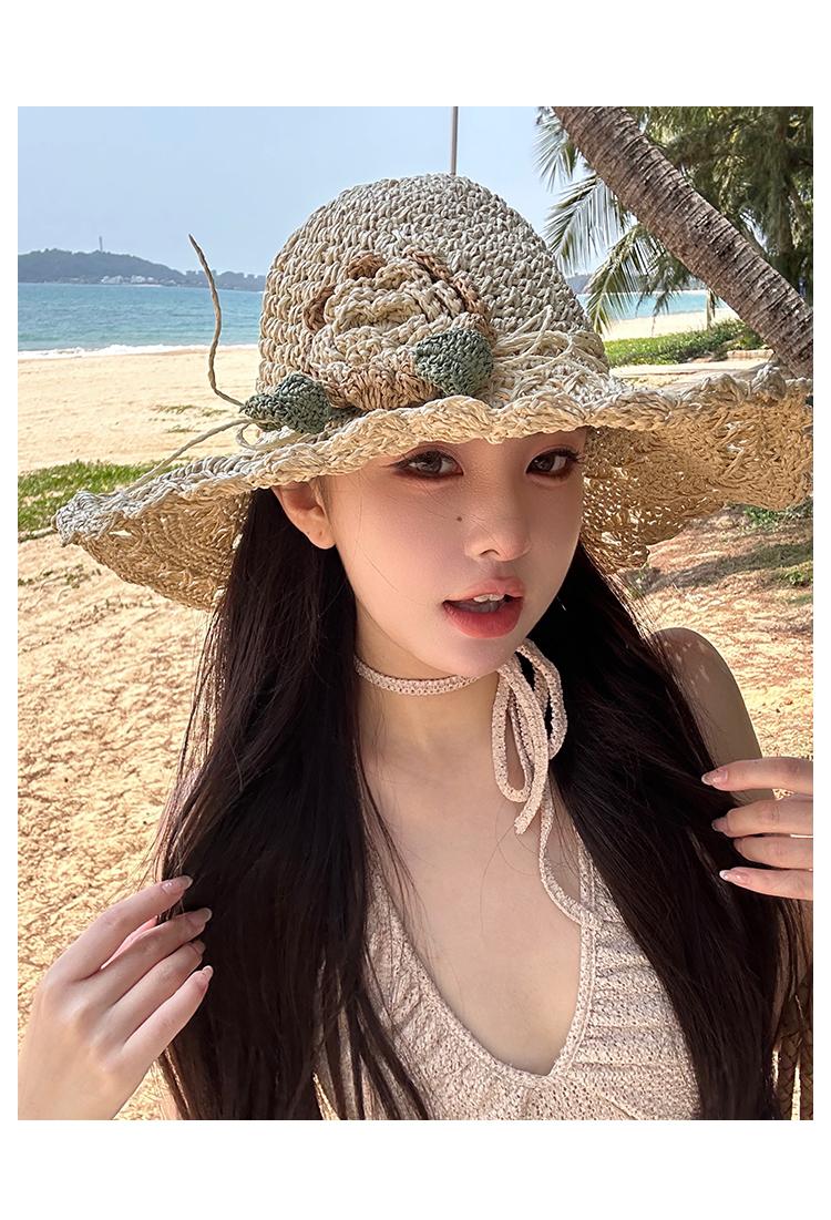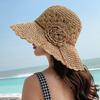 Sombrero de Paja Tejido a Mano con Flores para Mujer, Plegable, Sombrero de Sol de Ala Ancha para Vacaciones de Verano en la Playa