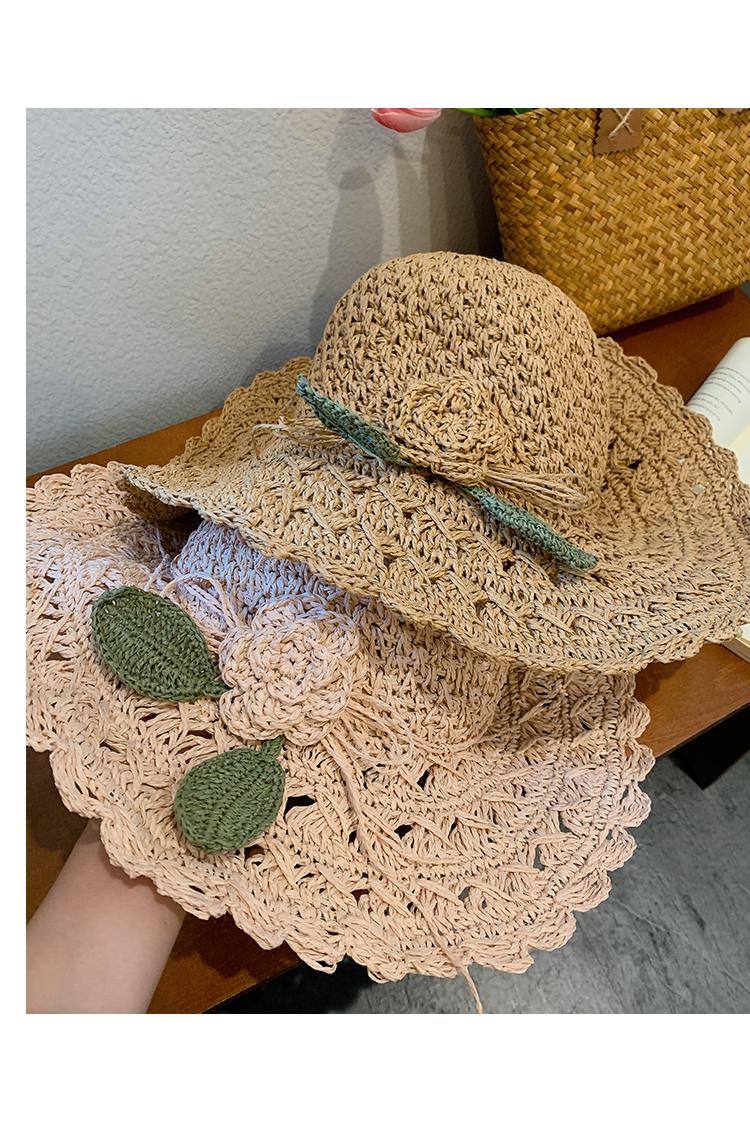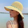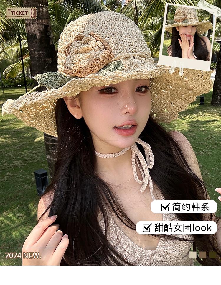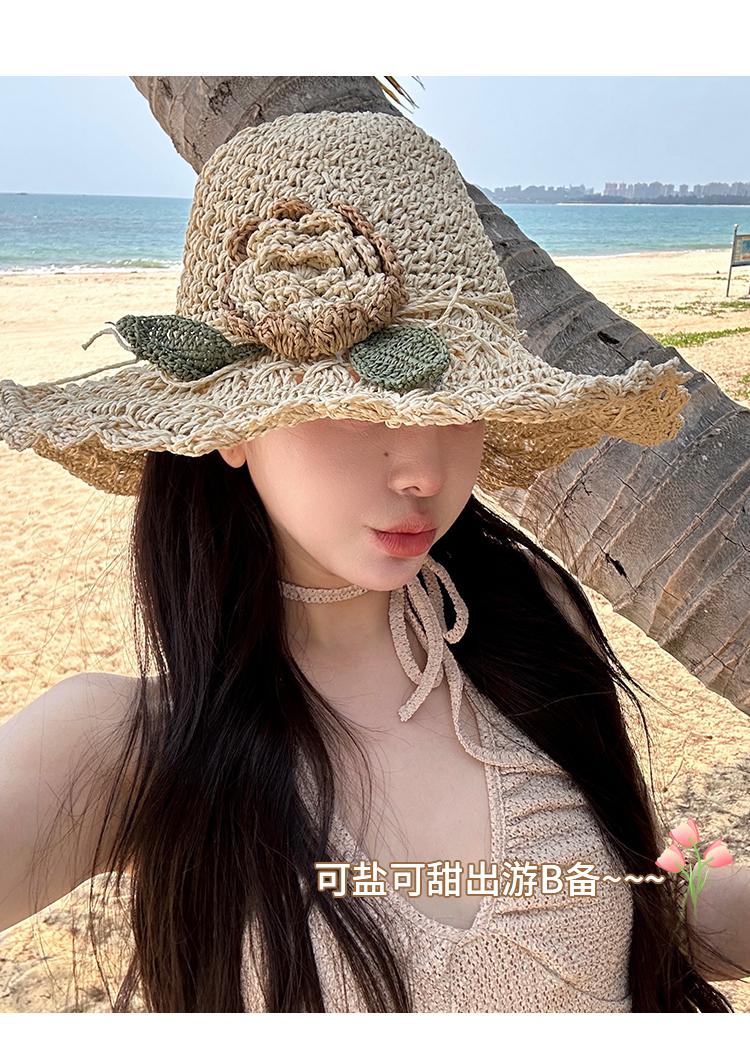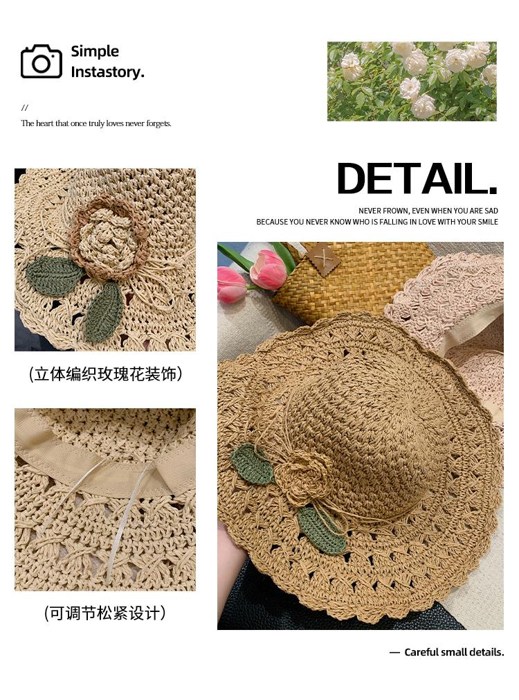Sombrero de Paja Tejido a Mano con Flores para Mujer, Plegable, Sombrero de Sol de Ala Ancha para Vacaciones de Verano en la Playa