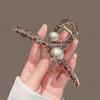 Horquilla elegante de Internet Advanced Sensation con forma de tiburón para la parte trasera de la cabeza, con forma de cruz geométrica y perla, sencilla