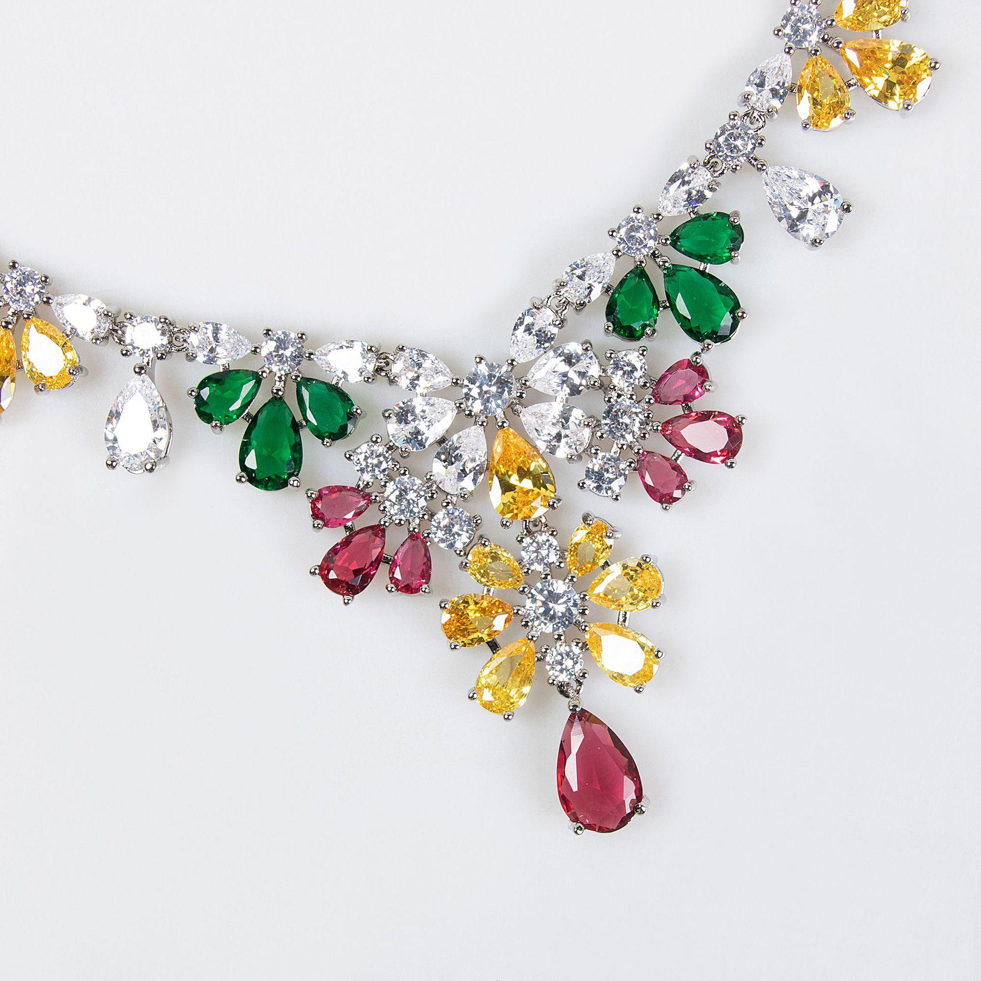Collar y pendientes de boda para novia europea y americana, conjunto de circón brillante, accesorios para cenas y fiestas, joyería sencilla para vestido de novia.