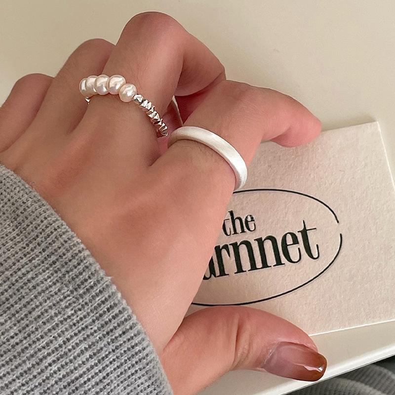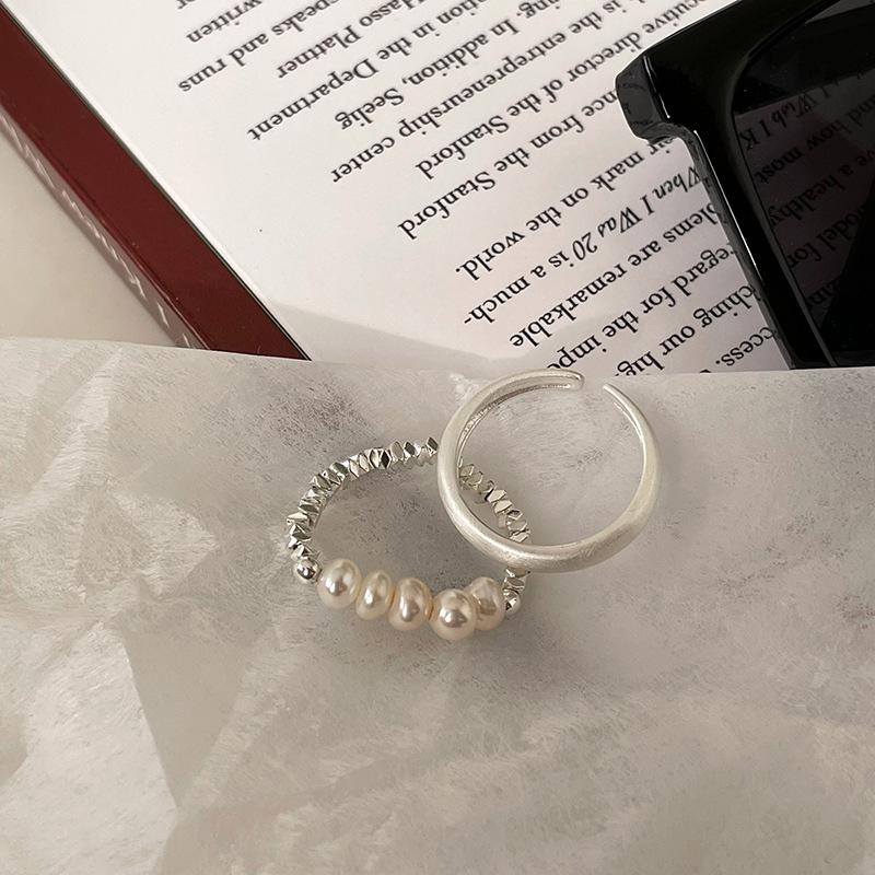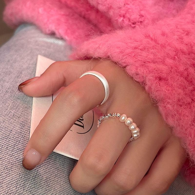 Anillo de Plata con Perla de Agua Dulce Nuevo 2023 para Mujer Diseño Nicho Anillo de Dedo Marea Ajustable Anillo Liso