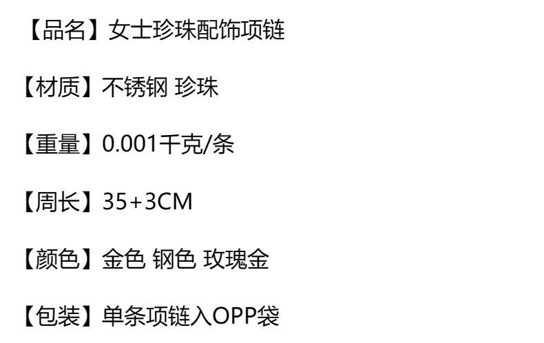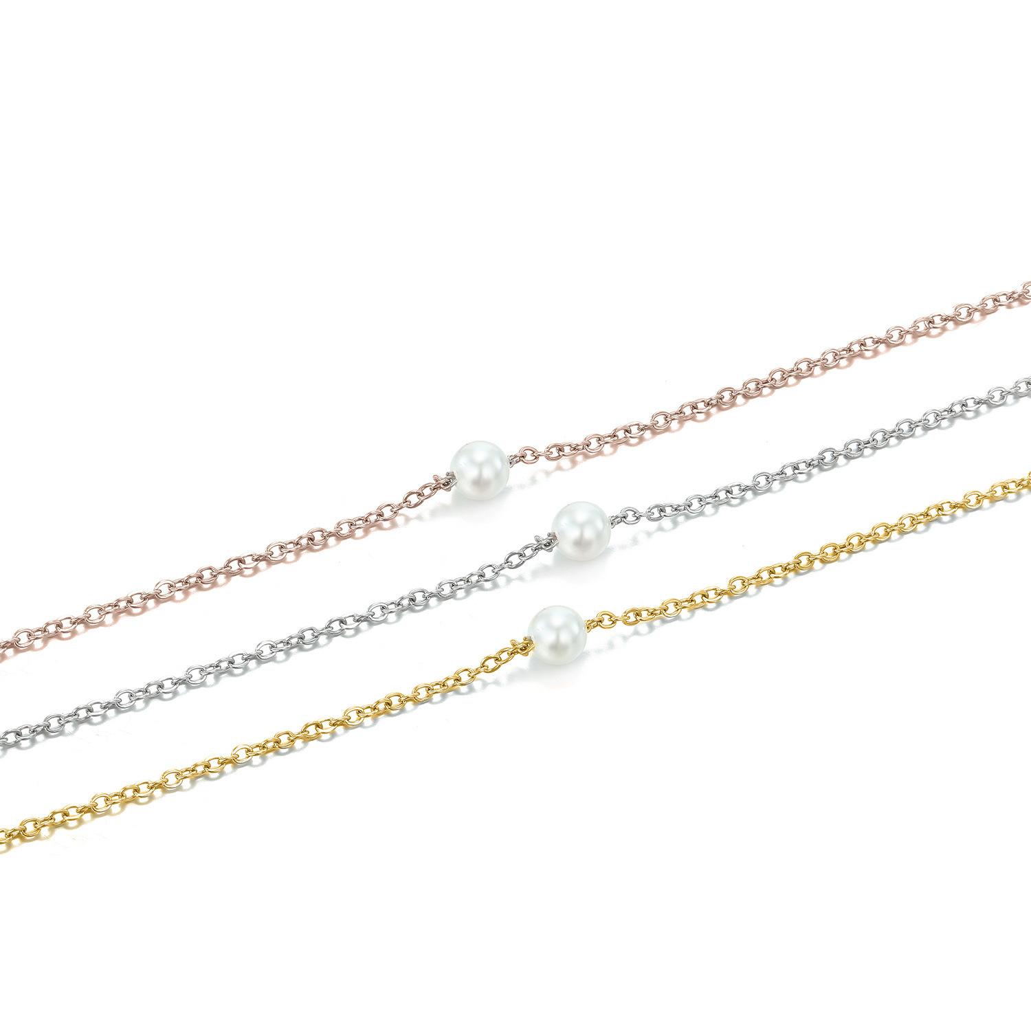 Abalorio Perla Accesorios Collar Nueva Moda Acero Inoxidable Titanio IPG Oro 14K Collar Cadena de Cuello Cadena Clavícula Mujeres Simple