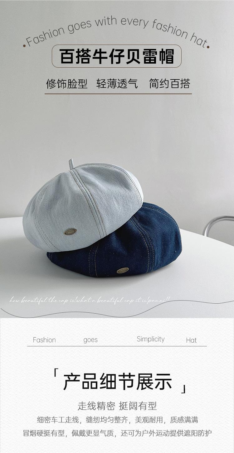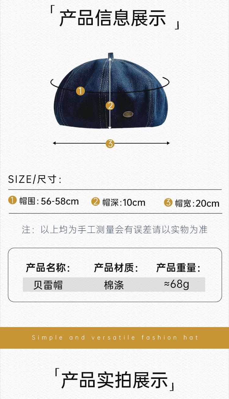 Boina vaquera de moda para mujer, estilo tridimensional, adelgazante, bonita, azul, estilo pintor japonés.