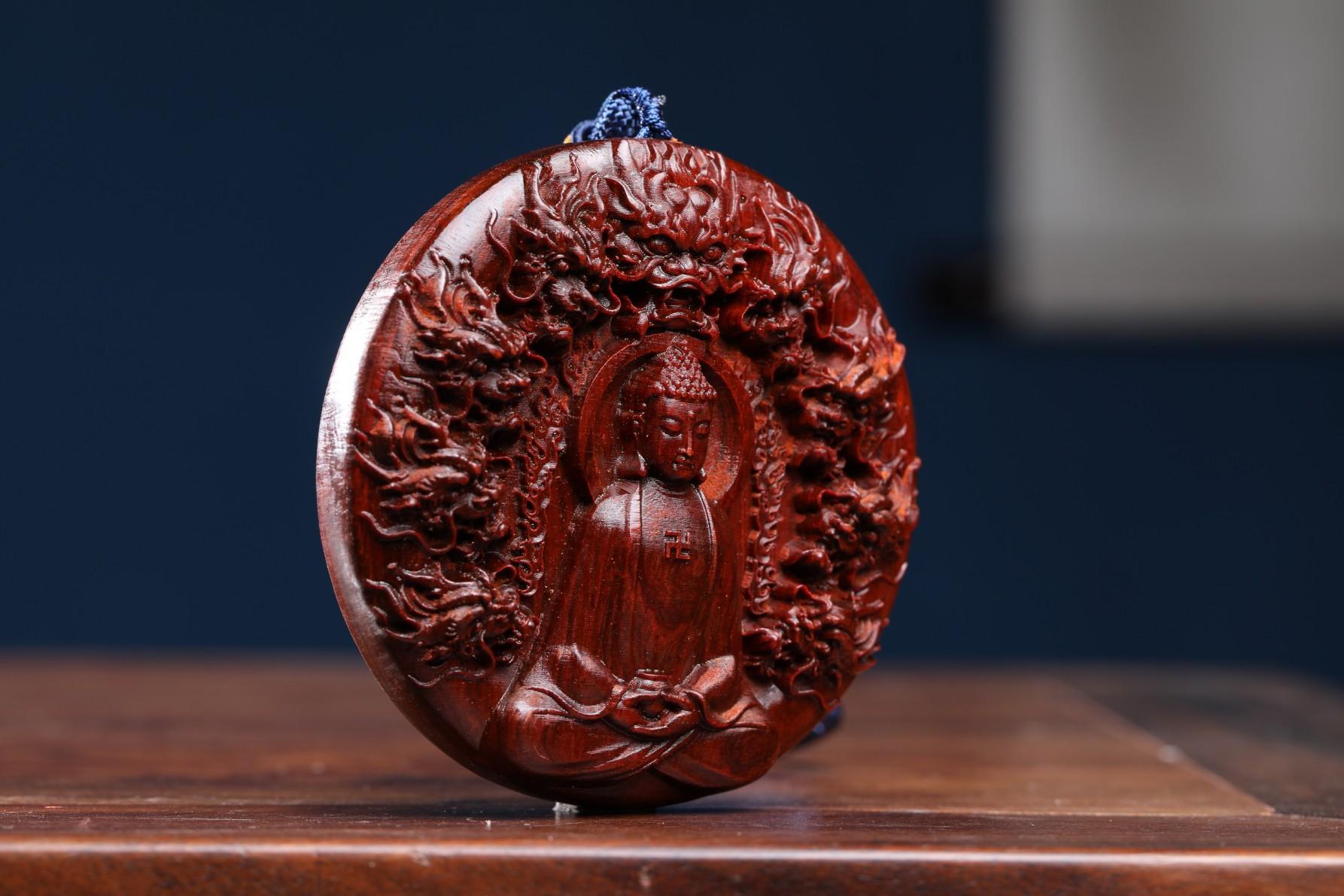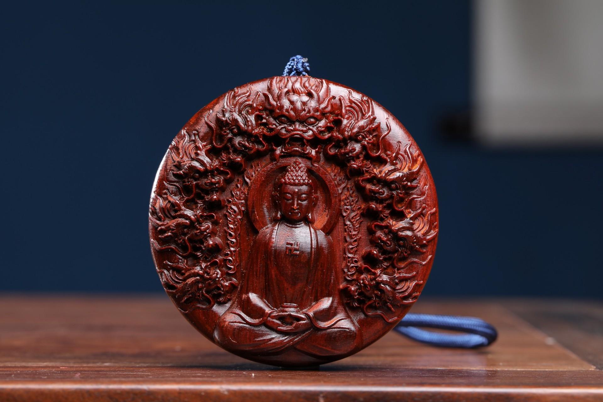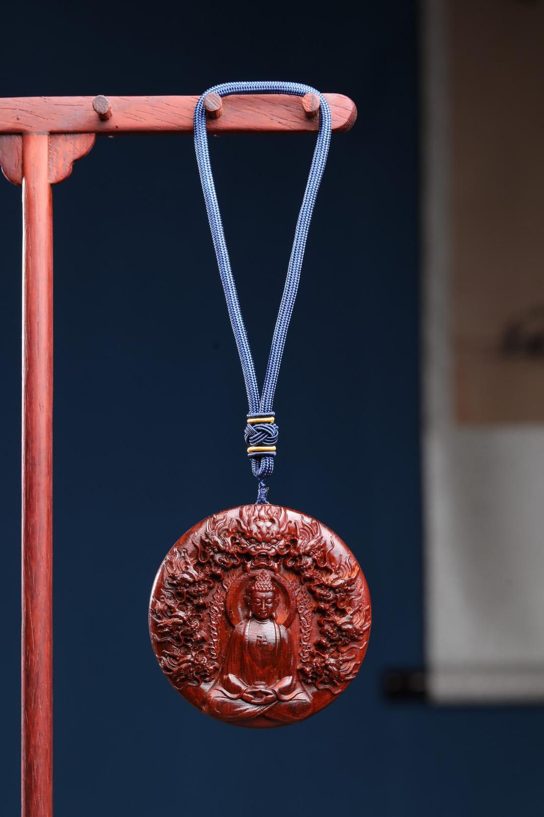 Colgante de hoja pequeña de palisandro con forma de Buda de Kowloon para hombres y mujeres, tallado en palisandro, Buda del gran día corriendo, adornos para manija de coche