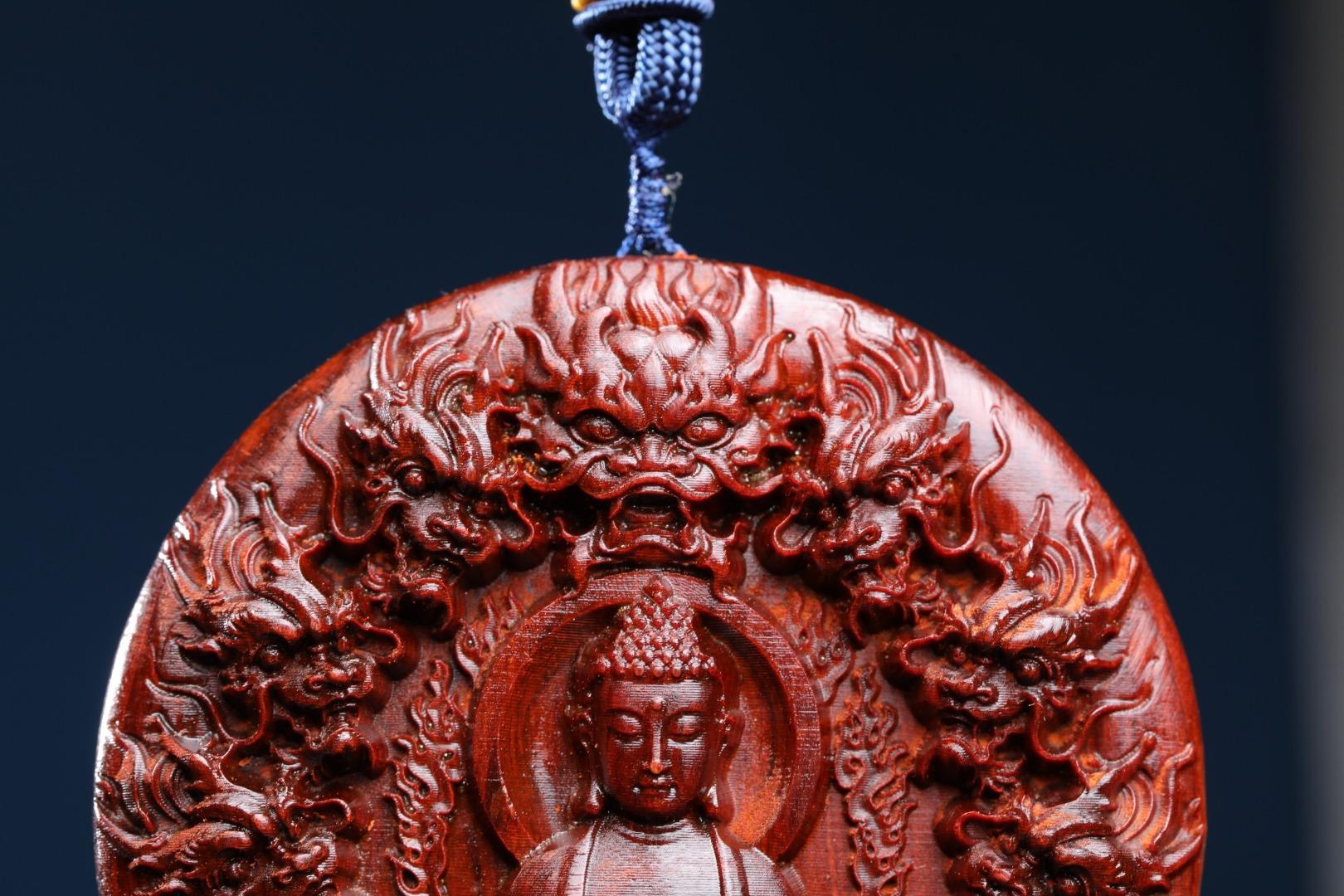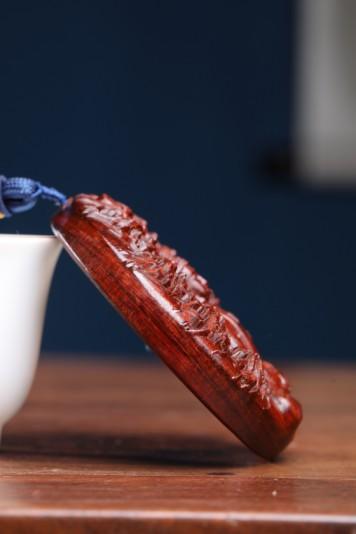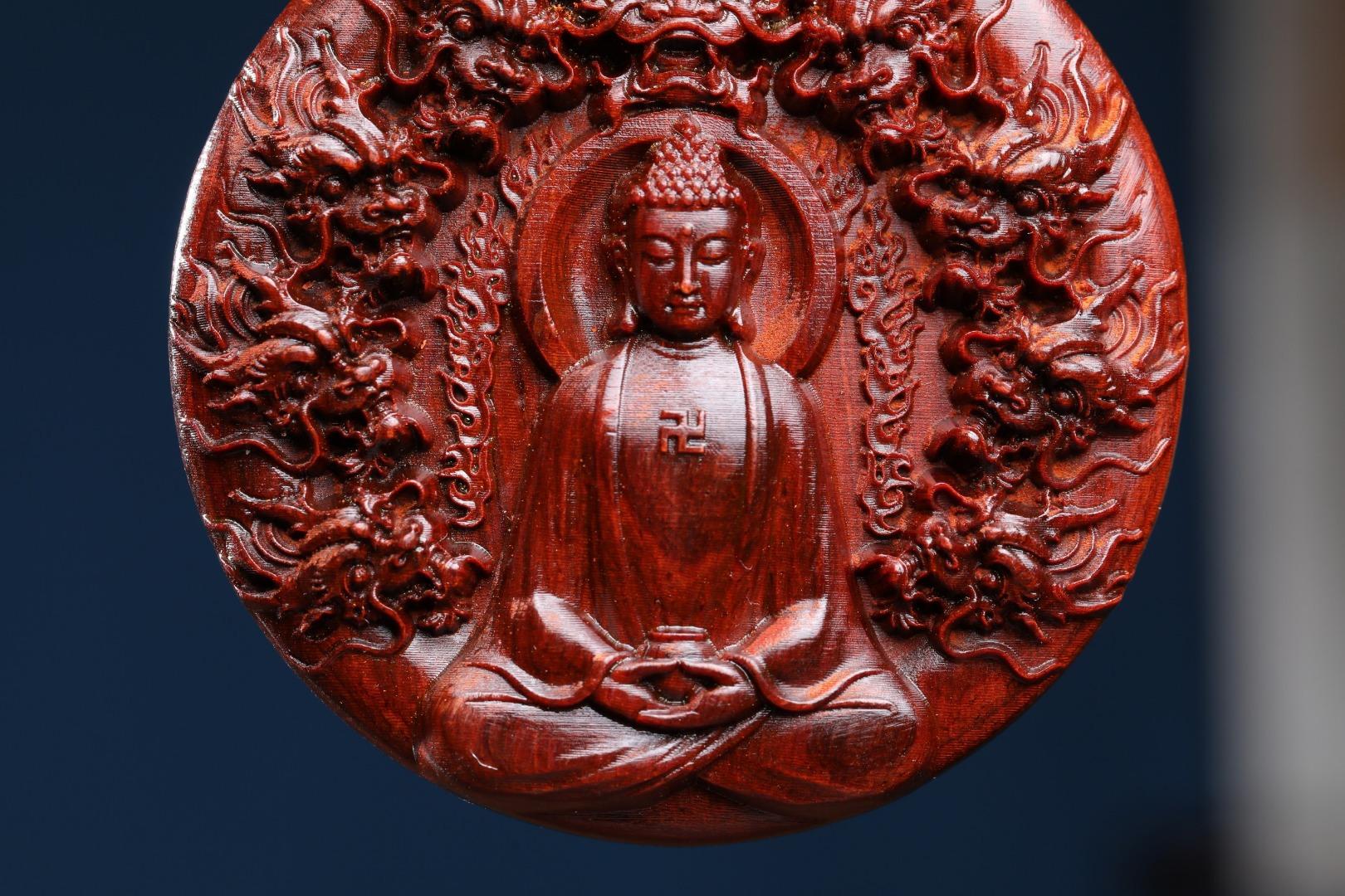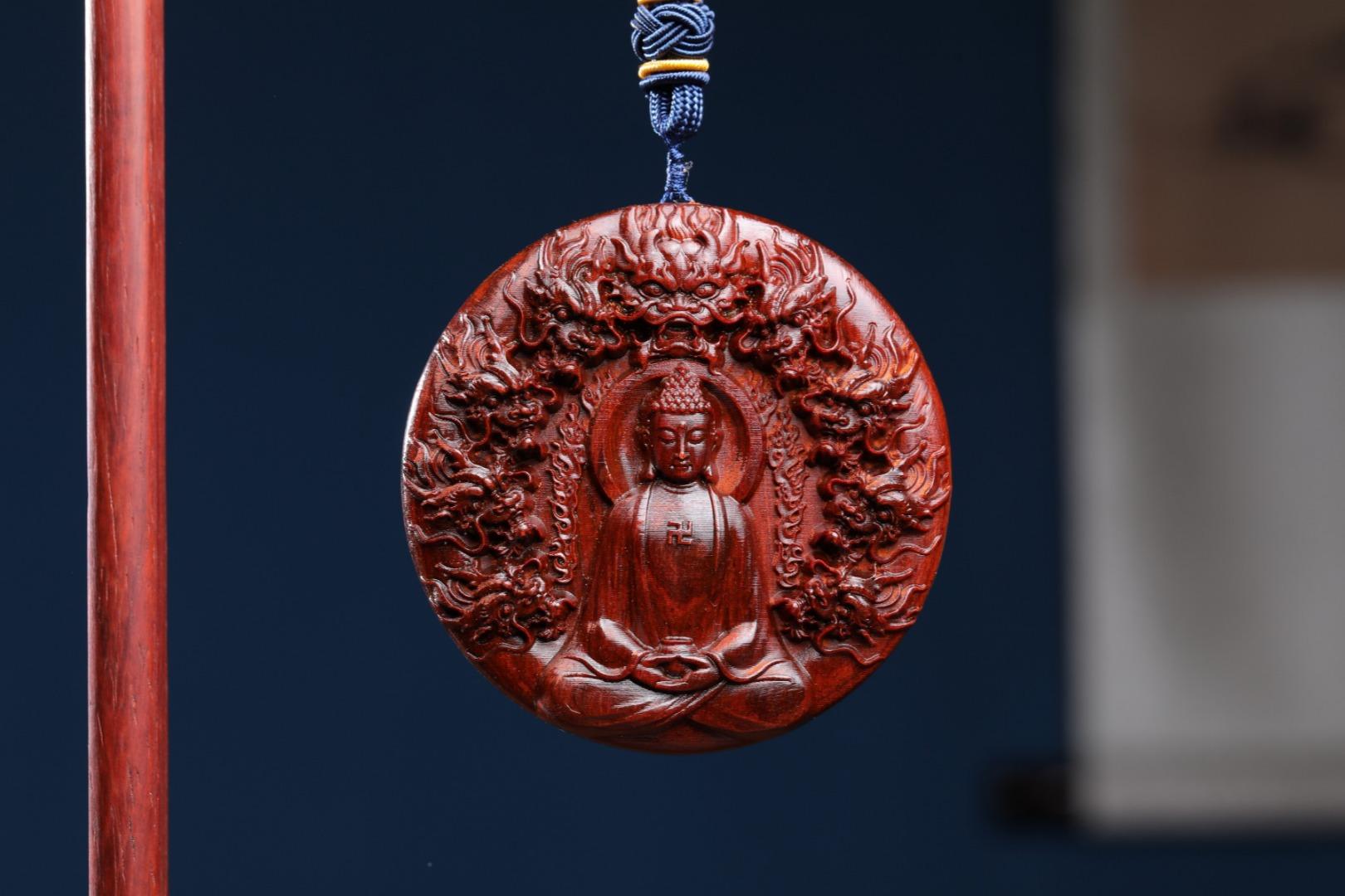 Colgante de hoja pequeña de palisandro con forma de Buda de Kowloon para hombres y mujeres, tallado en palisandro, Buda del gran día corriendo, adornos para manija de coche