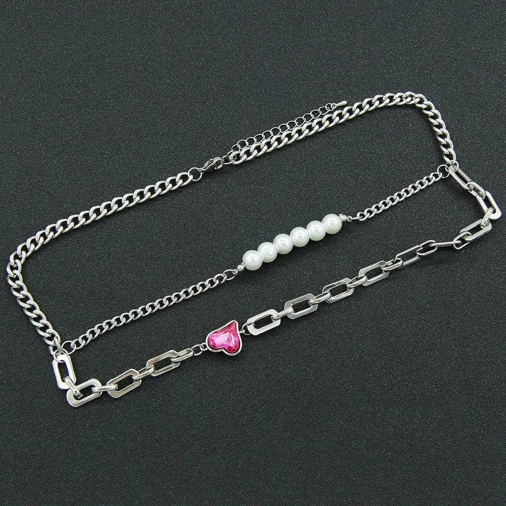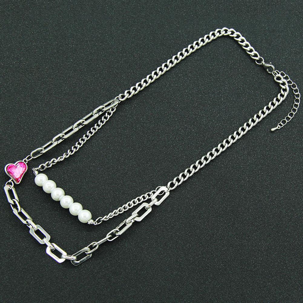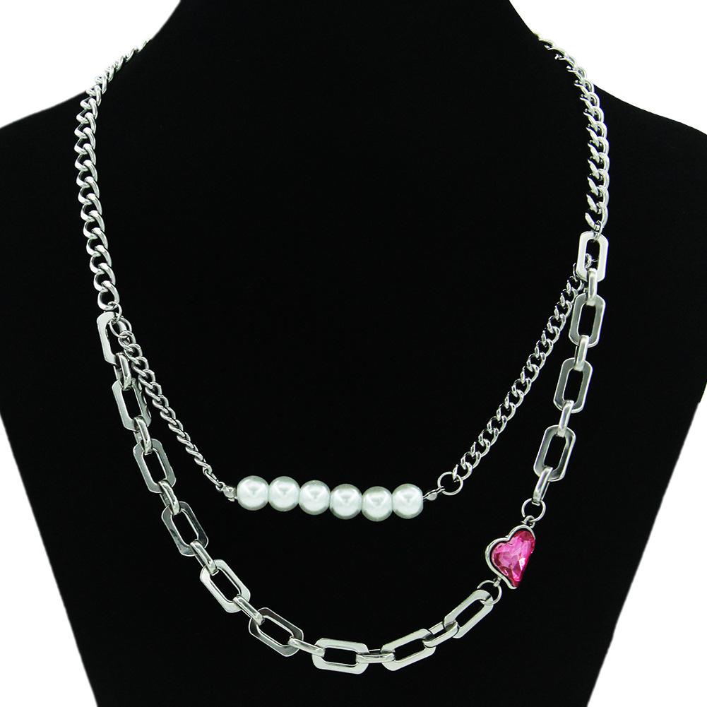 | |  | | Collar de cadena de acero de titanio con costuras de perlas de amor, joyería de tendencia dulce y fresca con alas de viento frío estilo europeo y americano ¥6.80 |  |