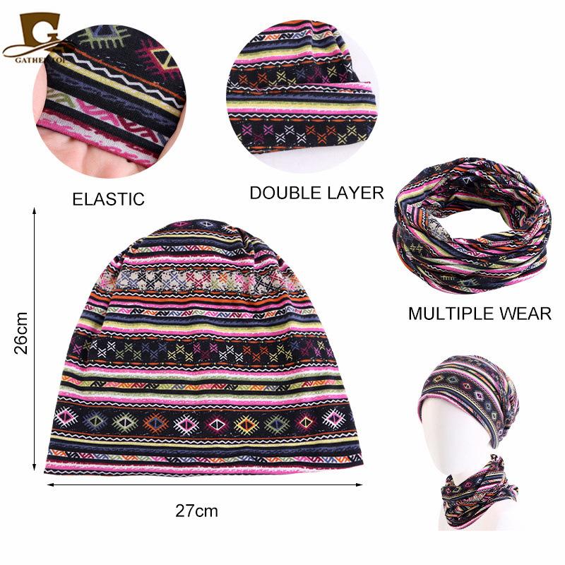 Gorro pañuelo para la cabeza estilo étnico para hombre y mujer, gorro de algodón elástico tipo pullover, bufanda cuello, trenza cola de caballo, gorro retorcido