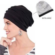 AliExpress Gorro de Quimioterapia de Doble Capa con Forro de Satén de Venta Caliente para Mujer Gorro Slouchy Gorro para Dormir Algodón Gorro Postparto