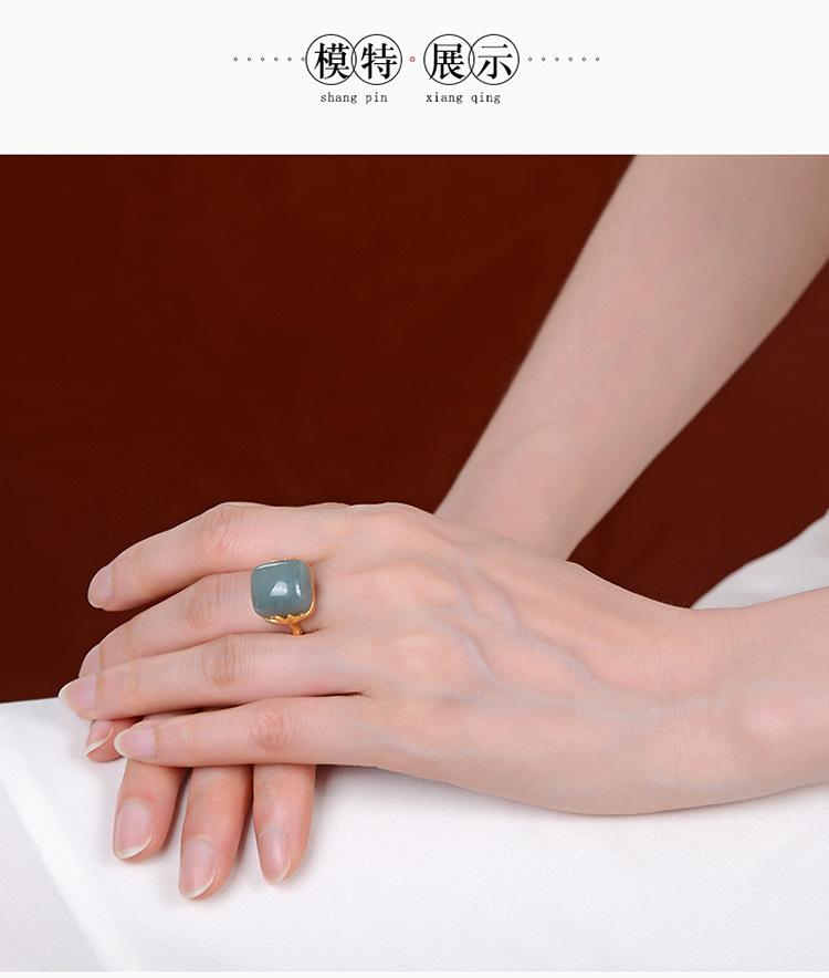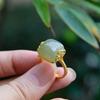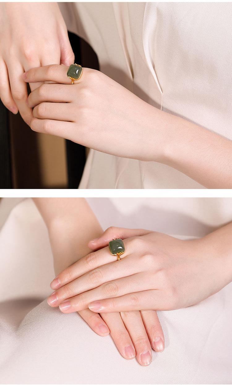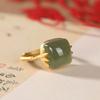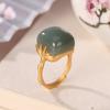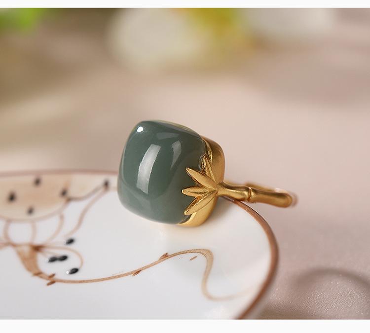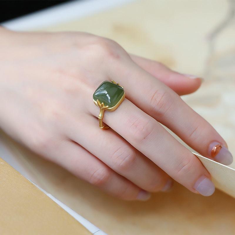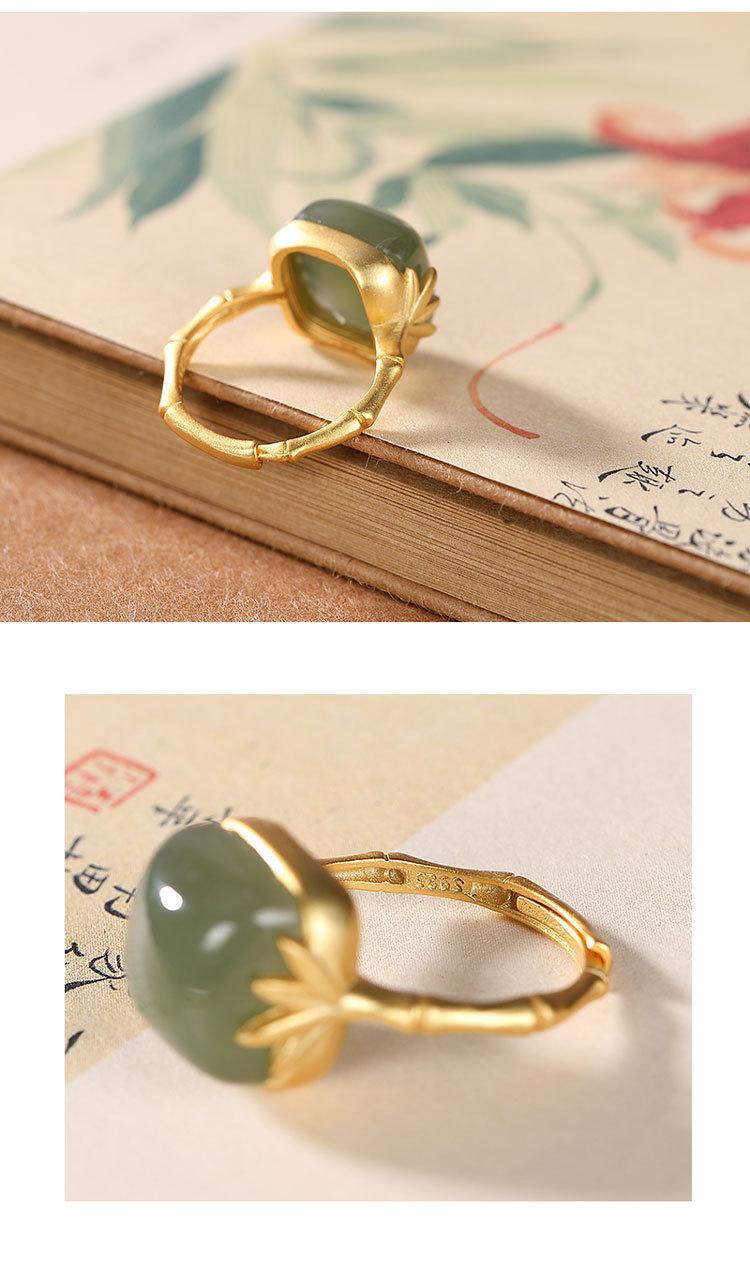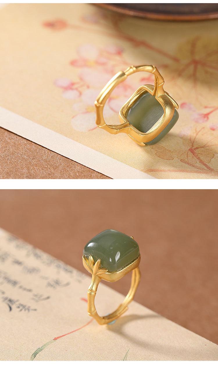 Anillo Nuevo de Jade Hetian de Imitación para Mujer Hoja de Bambú Método Antiguo Oro Jade Verde Diseño Nicho Sentido Avanzado Sección de Bambú Anillo Ajustable