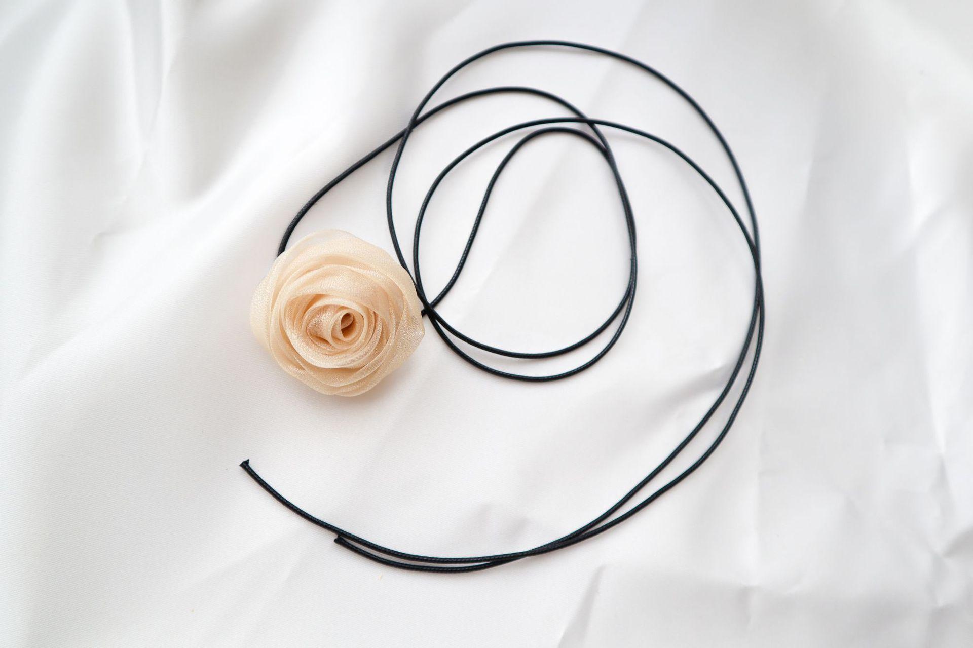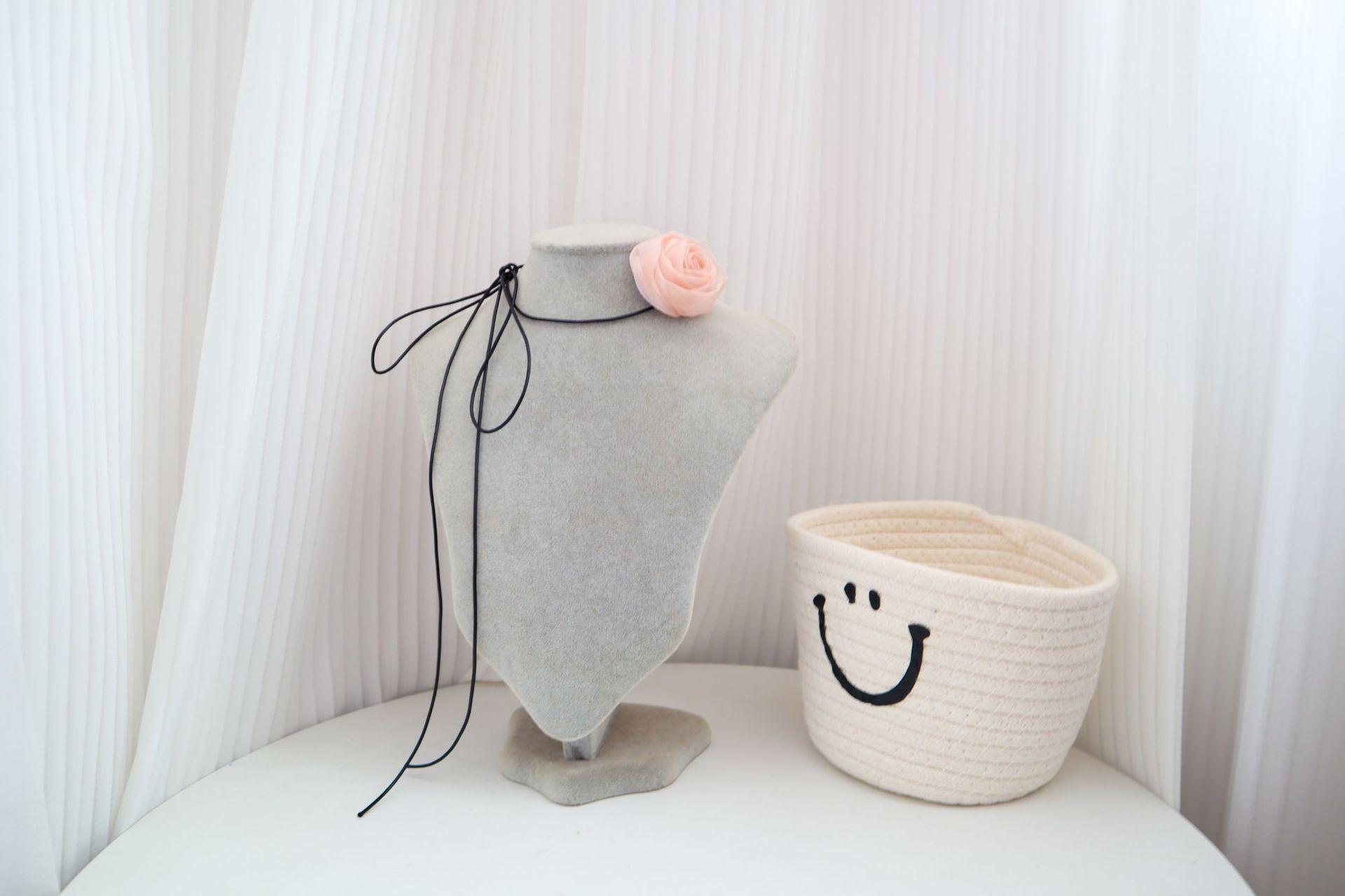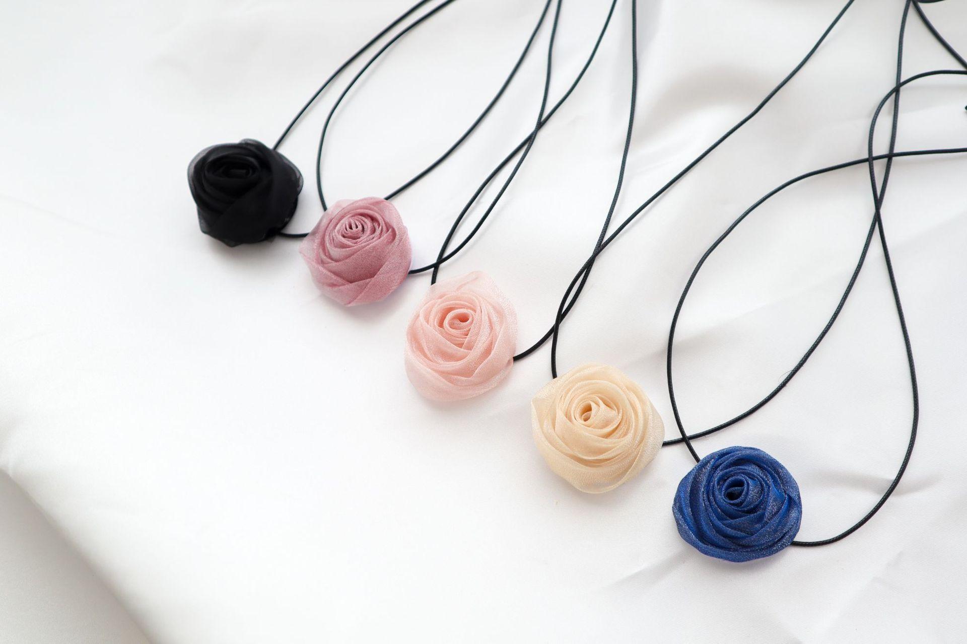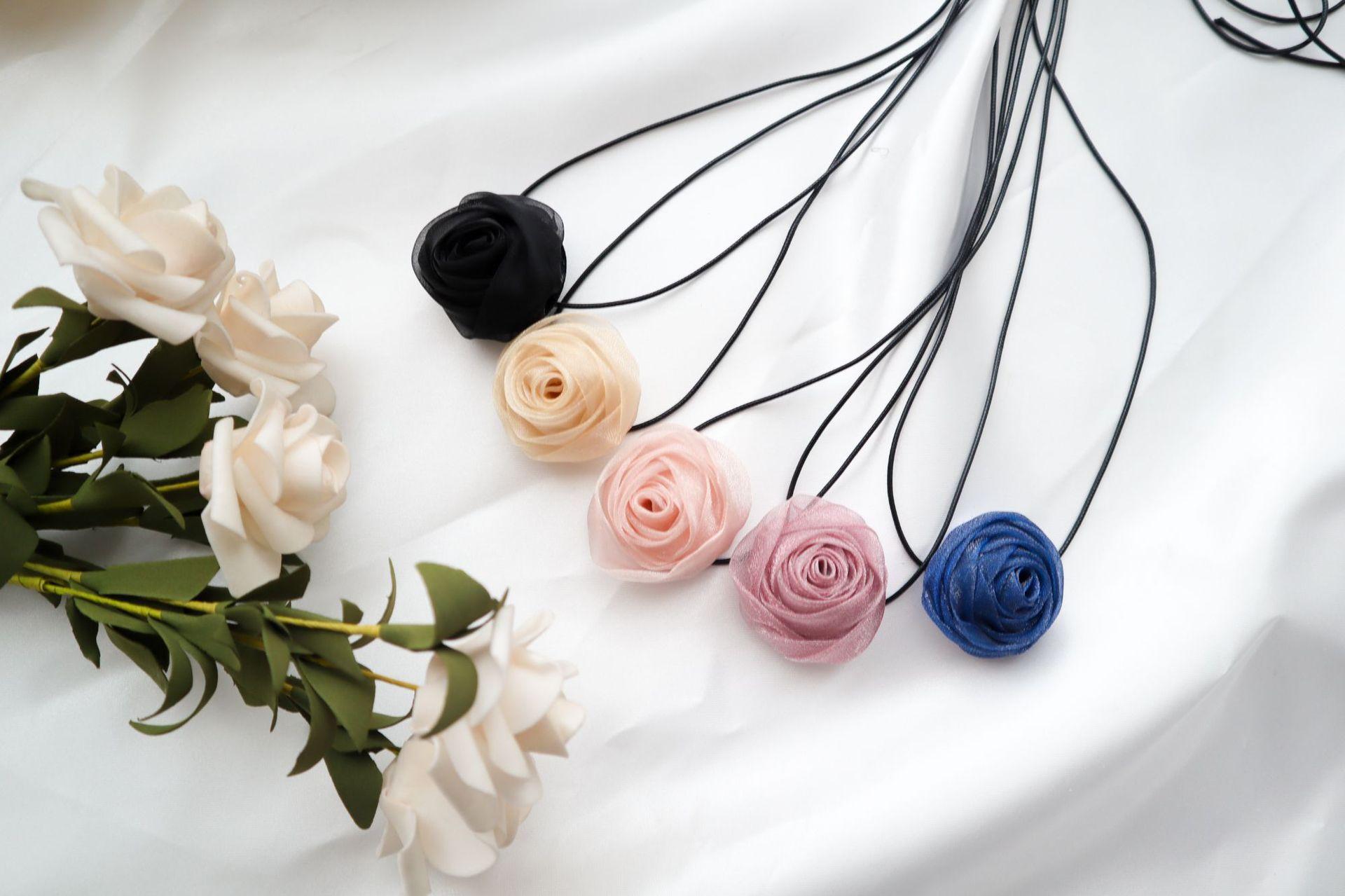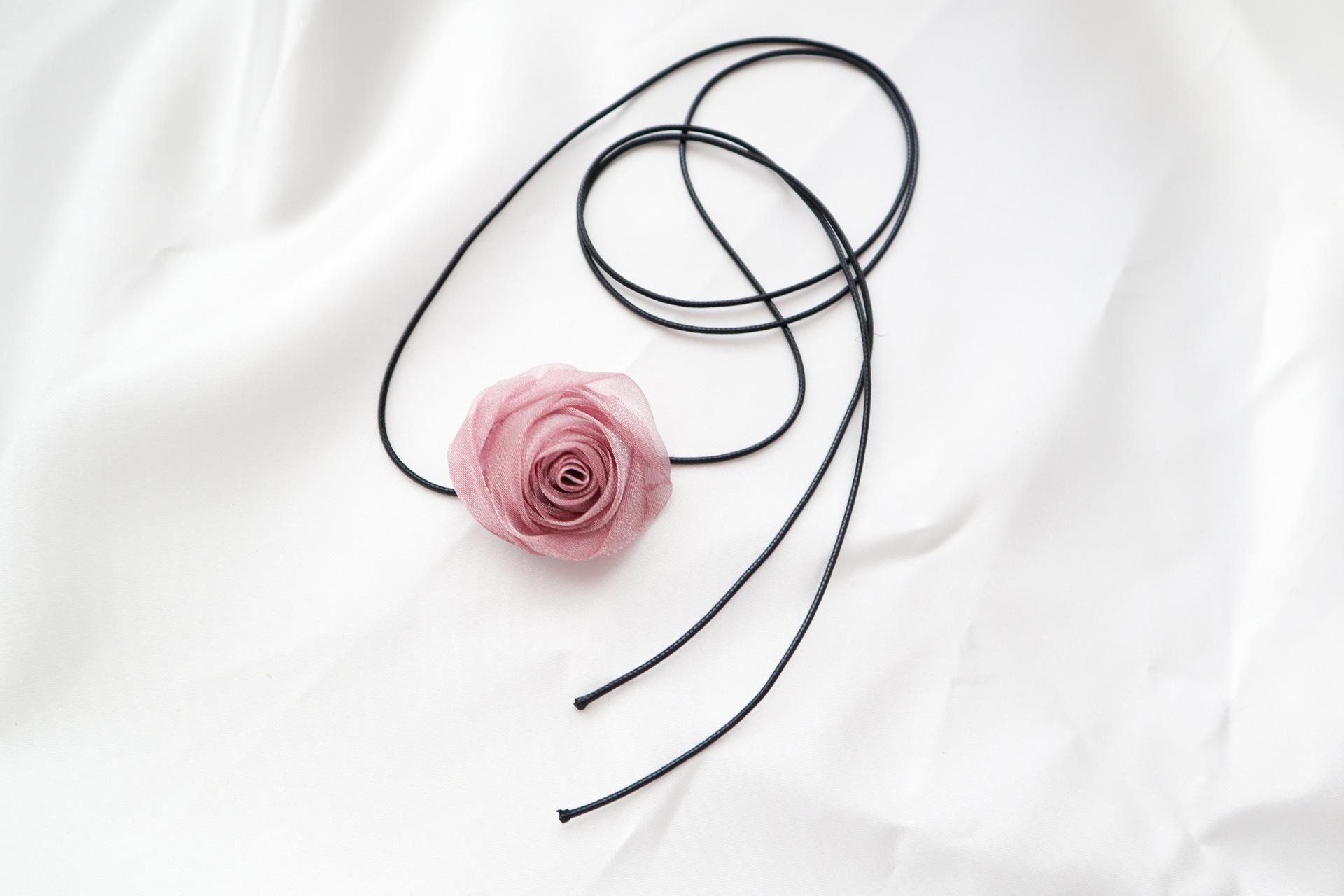 Elegante collar con cordones, collar de flores rosas para mujer, pajarita, gargantilla, collar de estilo dulce, cadena de clavícula