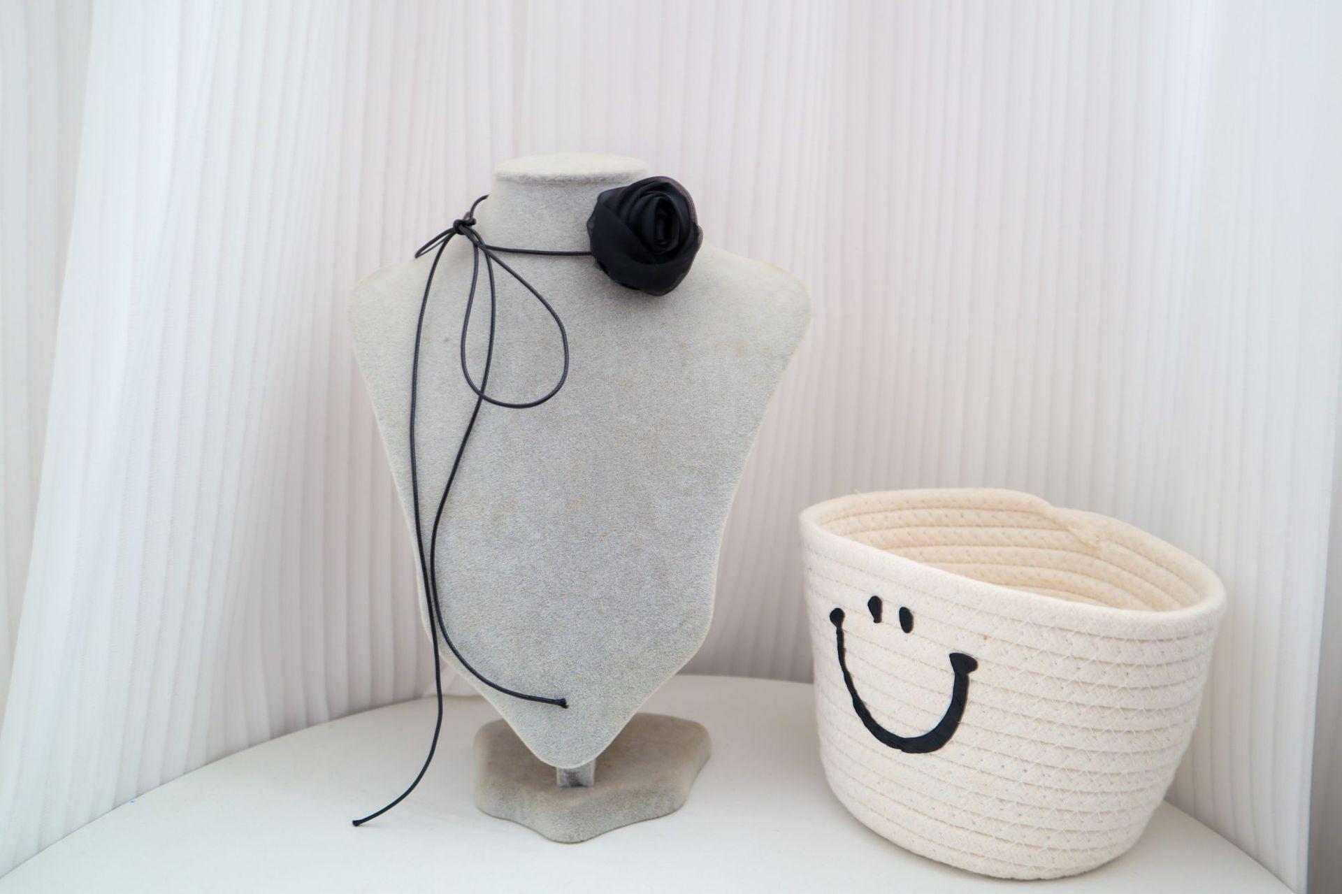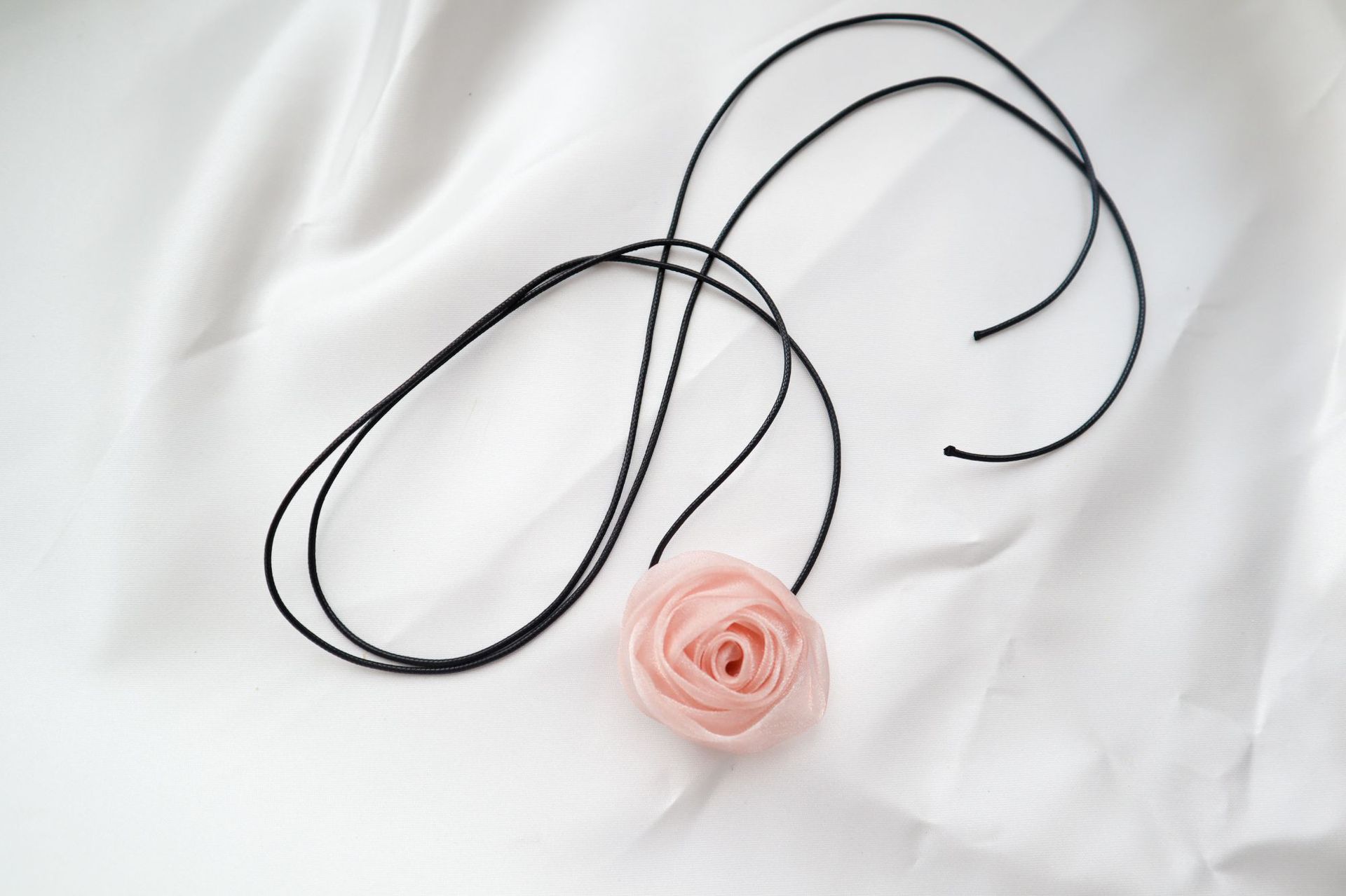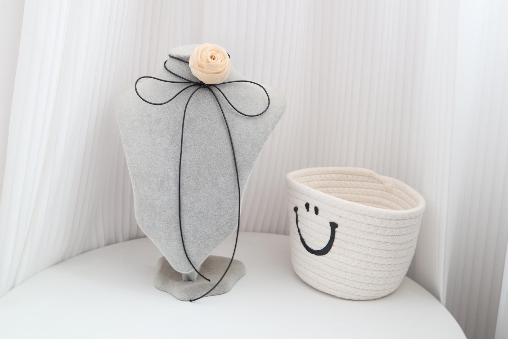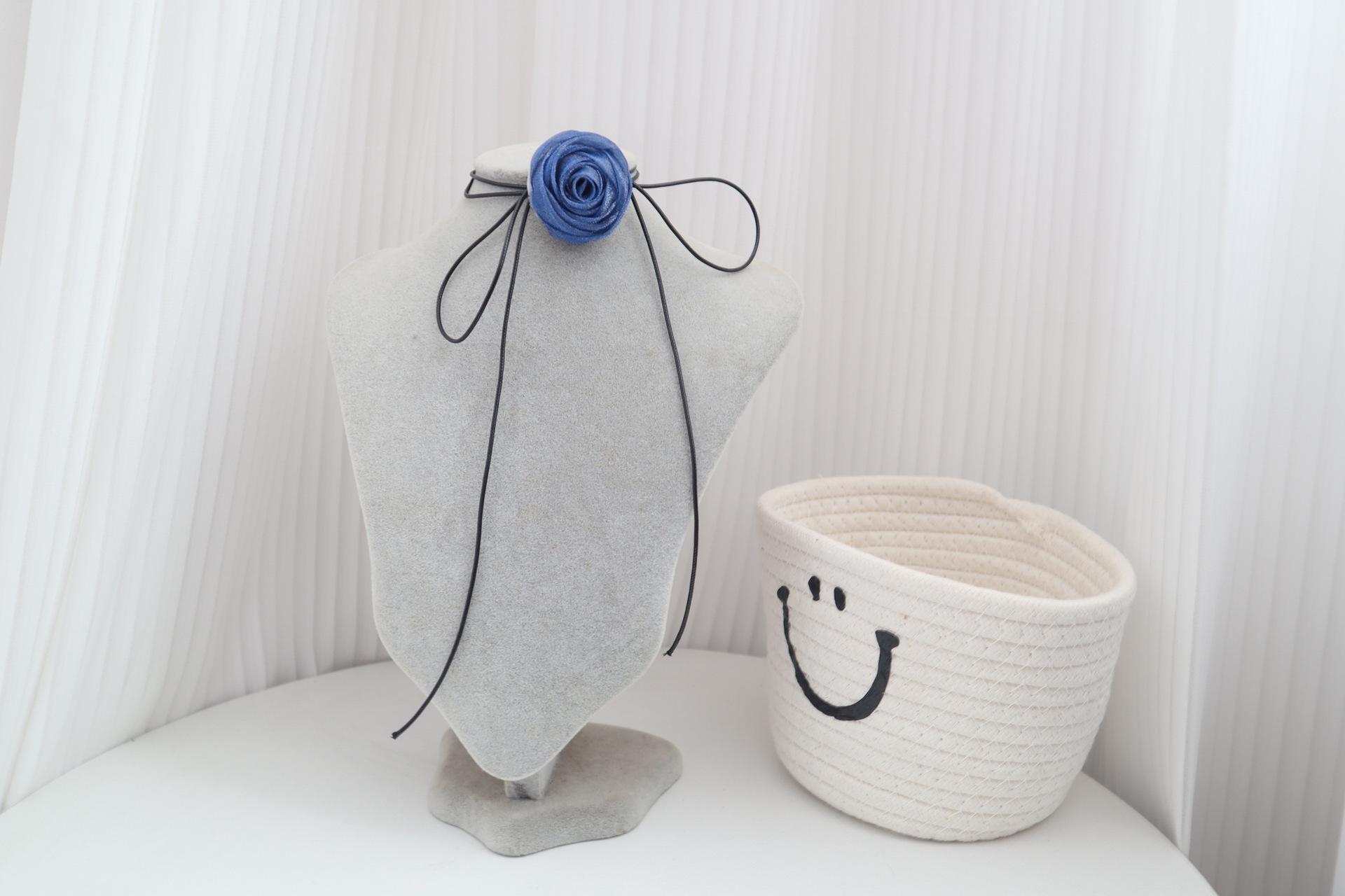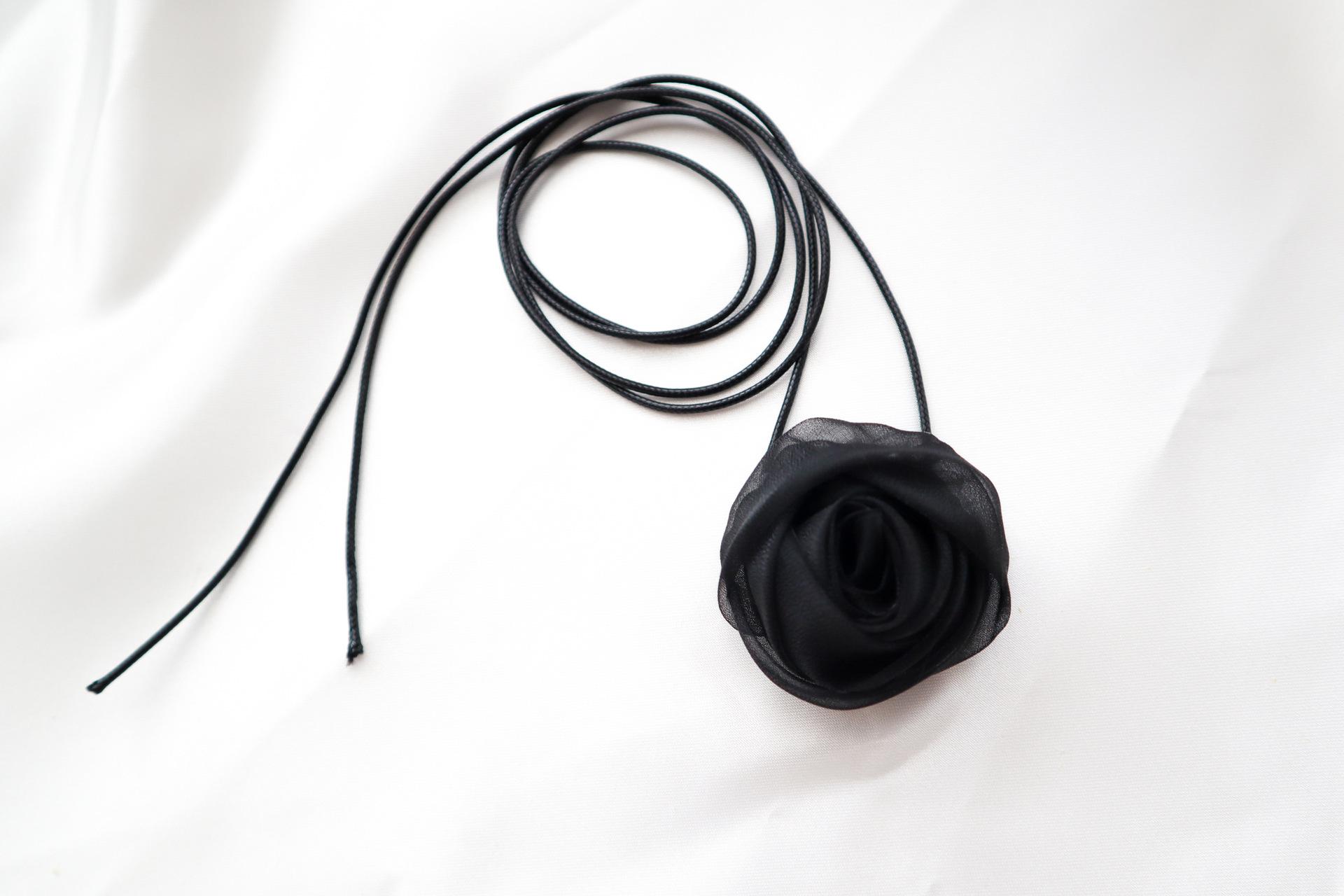 Elegante collar con cordones, collar de flores rosas para mujer, pajarita, gargantilla, collar de estilo dulce, cadena de clavícula