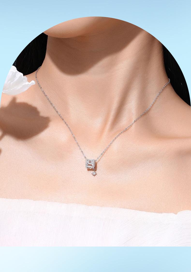 Collar de plata S925 con diseño de traductor de la suerte para mujer, estilo Ins, sencillo, ligero, de lujo, con cadena de clavícula y colgante con microincrustaciones versátil.