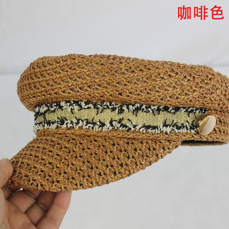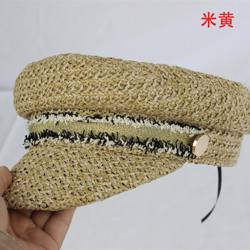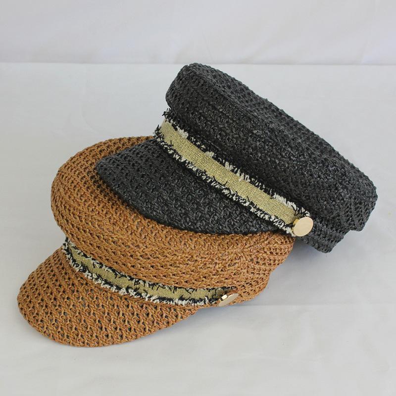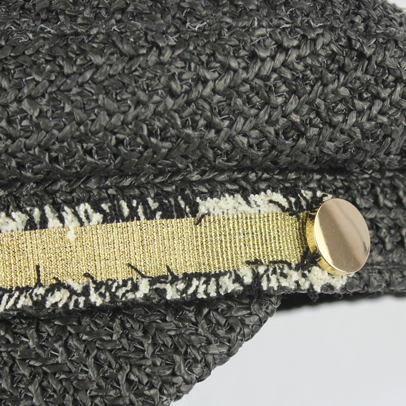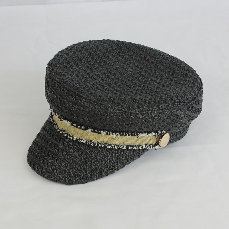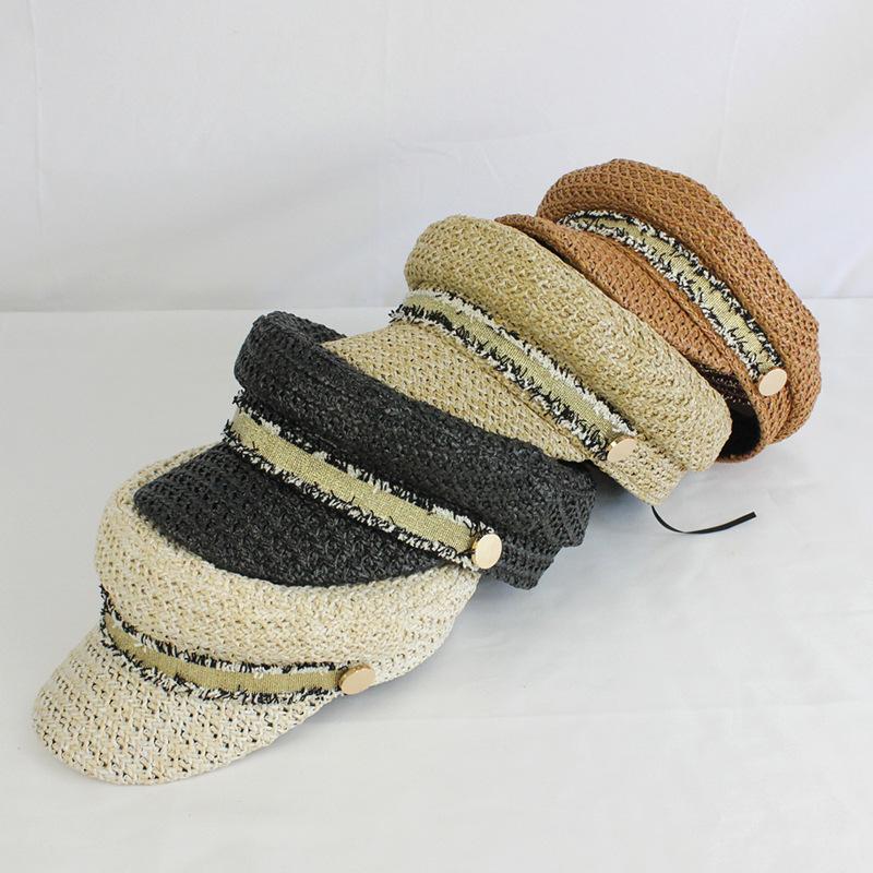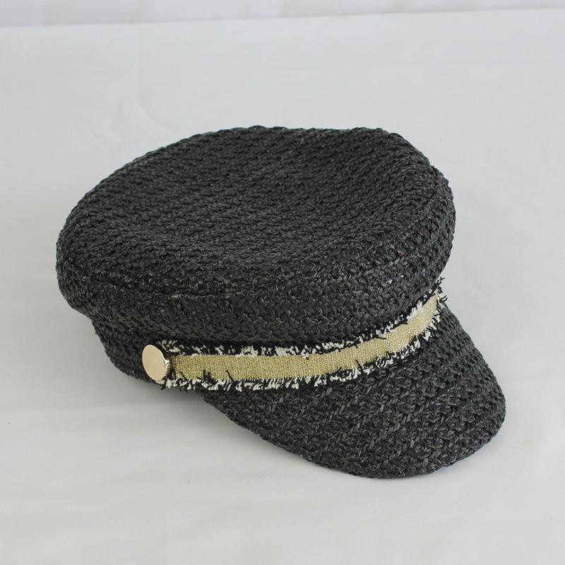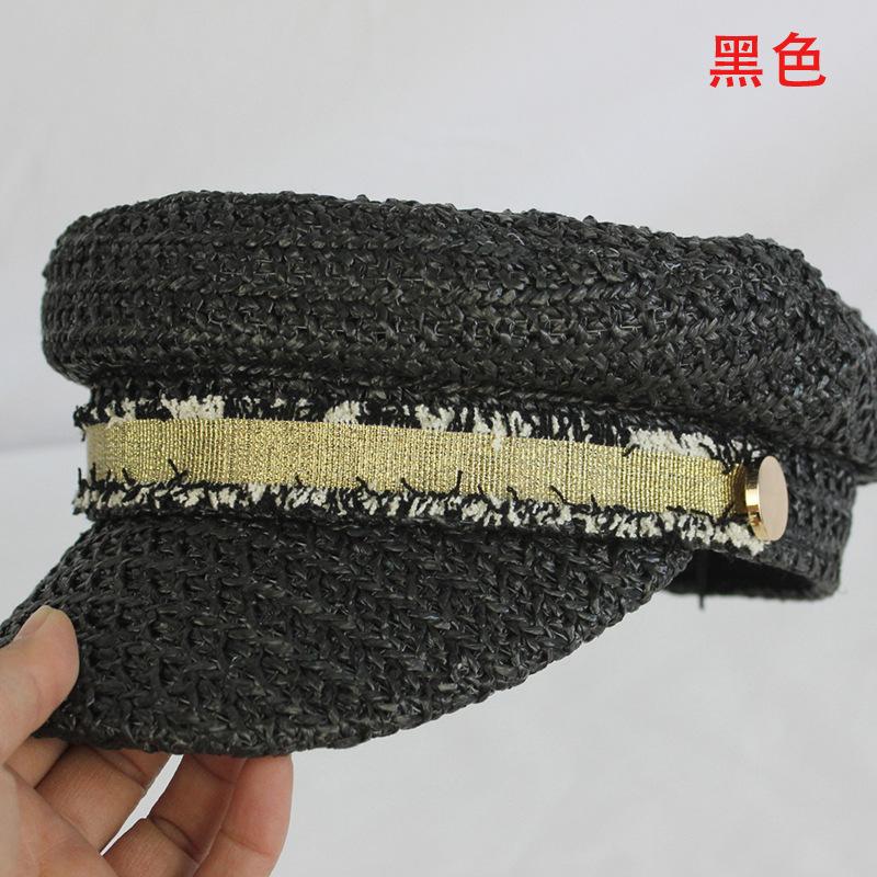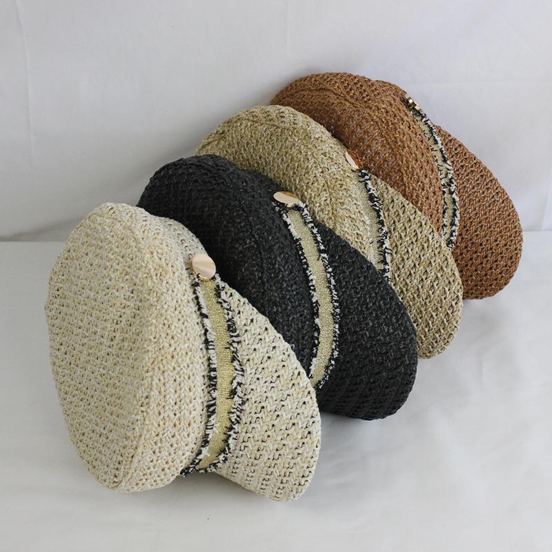 Boina estilo Chanel nueva para mujer, sombrero azul marino, verano, calado, transpirable, paja pp, sombrero militar, gorra con visera para exteriores
