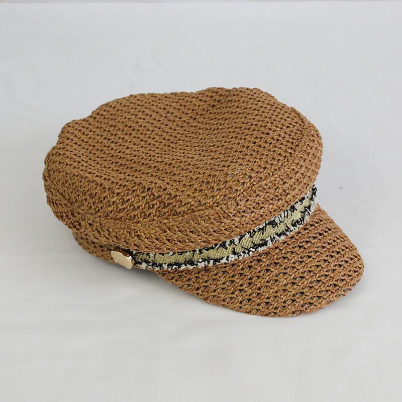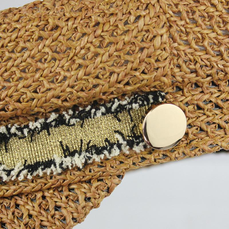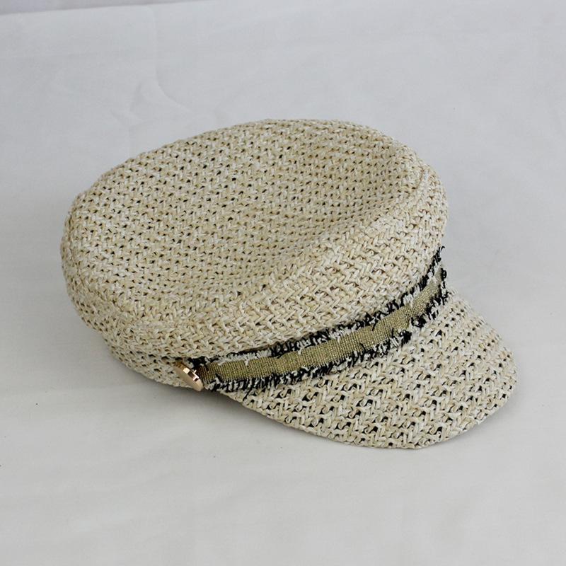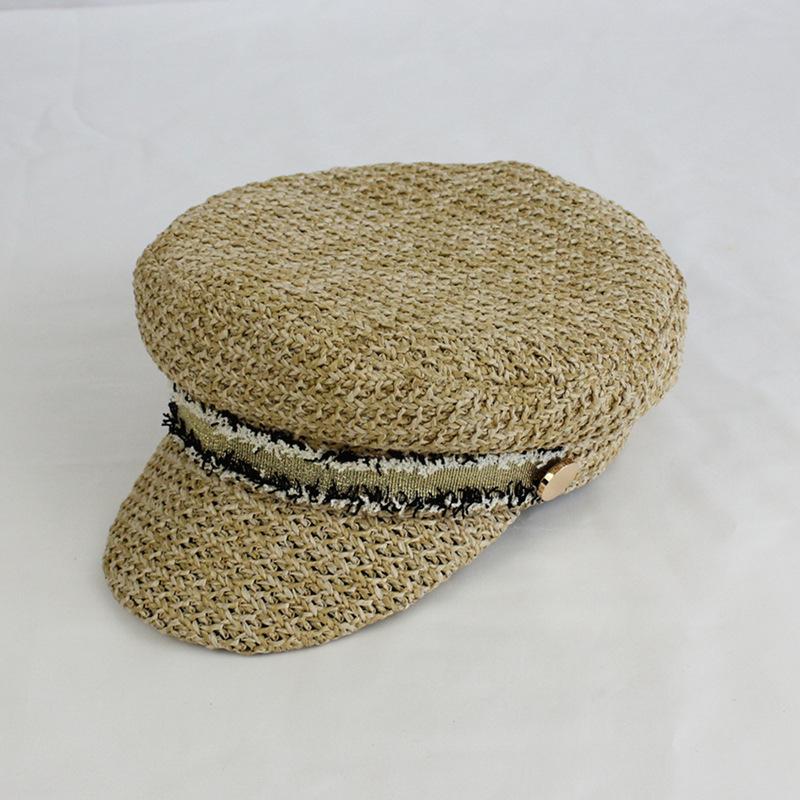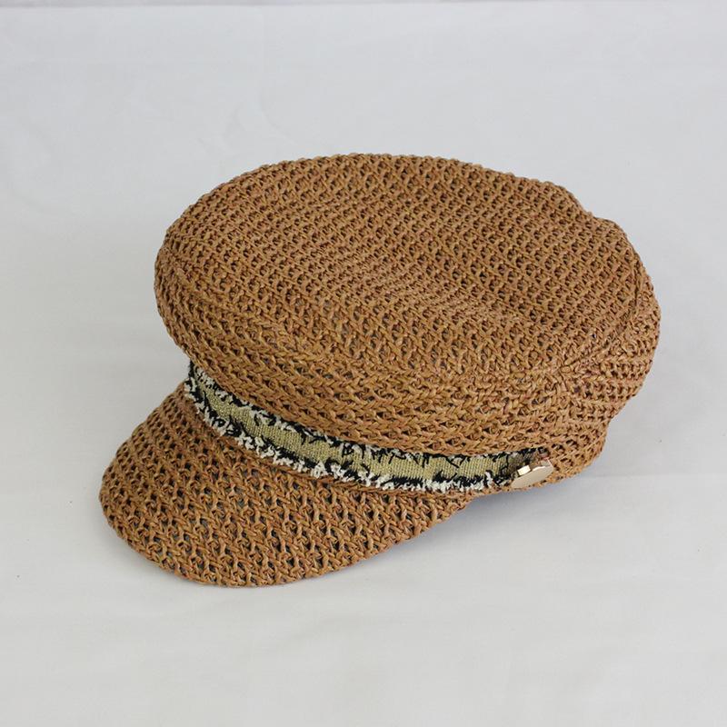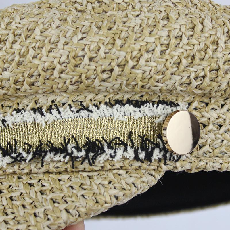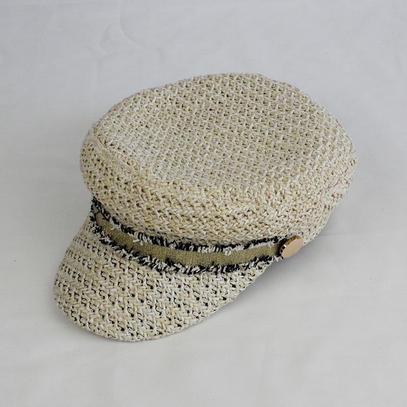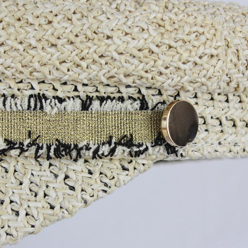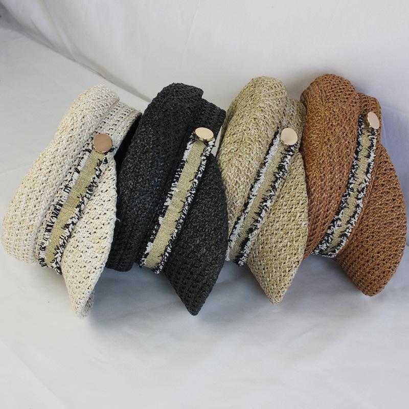 Boina estilo Chanel nueva para mujer, sombrero azul marino, verano, calado, transpirable, paja pp, sombrero militar, gorra con visera para exteriores