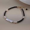 Silver Strip Freshwater Pearl Black Spinel Bracelet