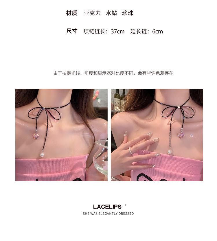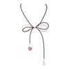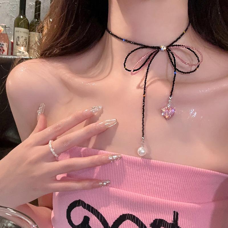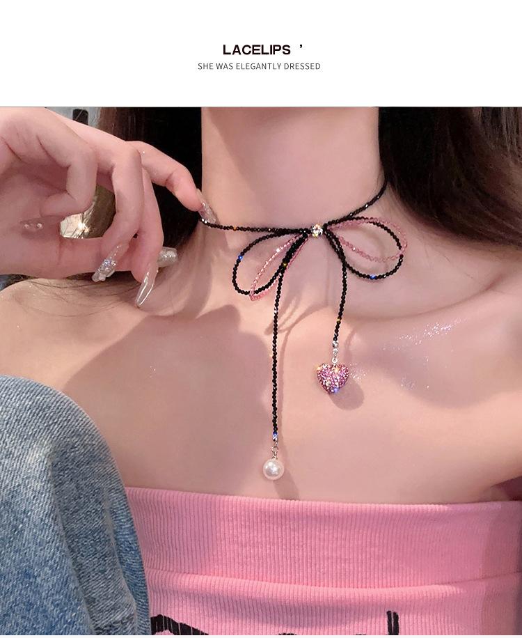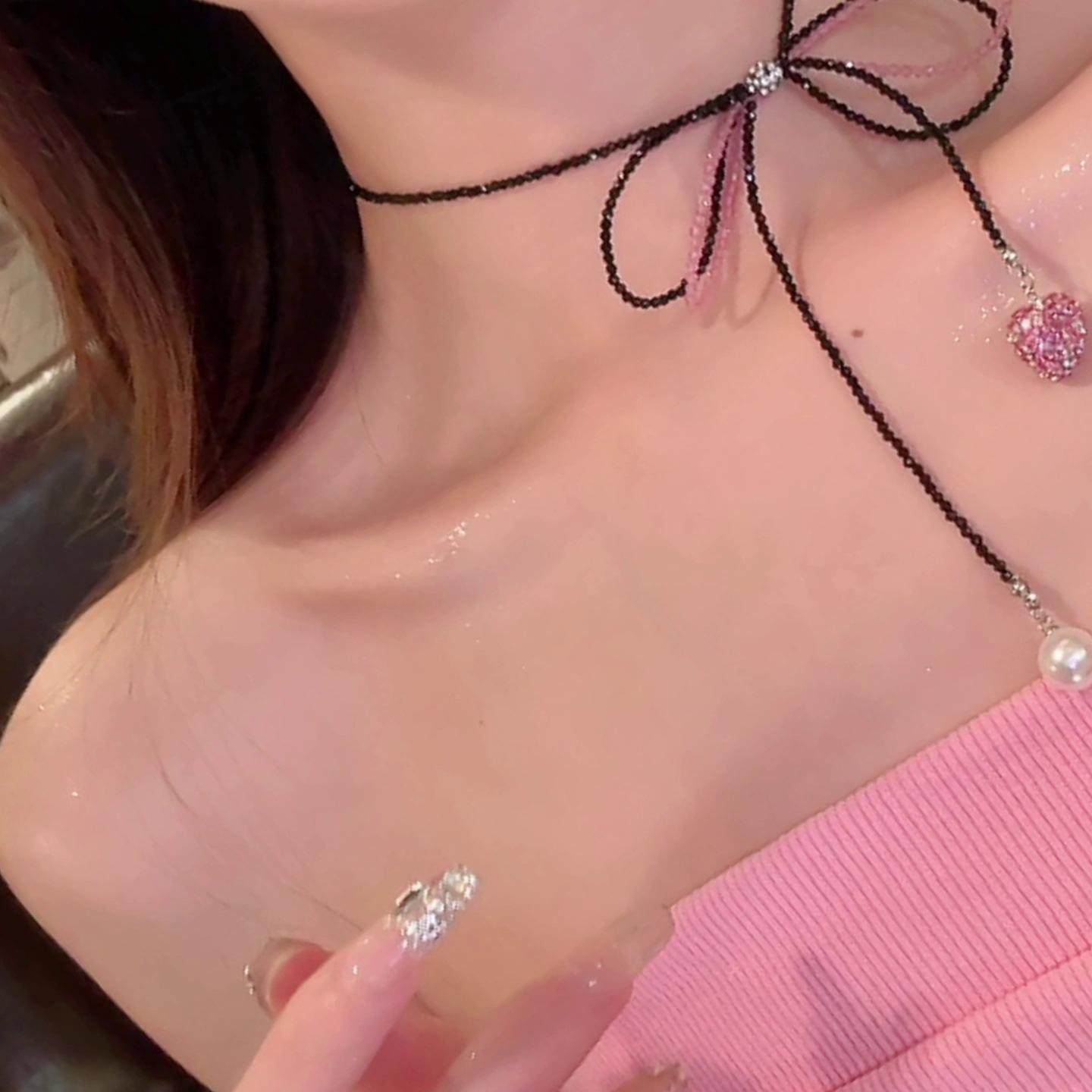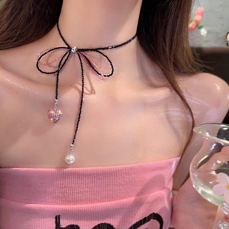 Collar de cuentas con lazo de perla de amor rosa para mujer, diseño de cadena de clavícula de nicho de lujo ligero, gargantilla de alta calidad