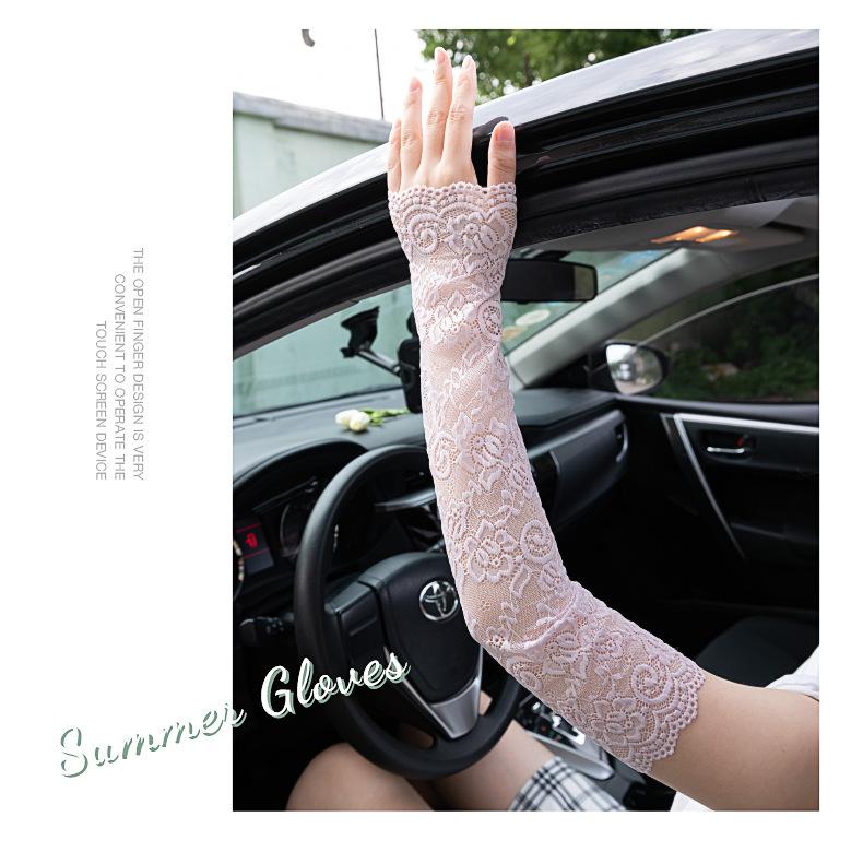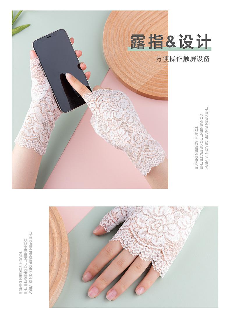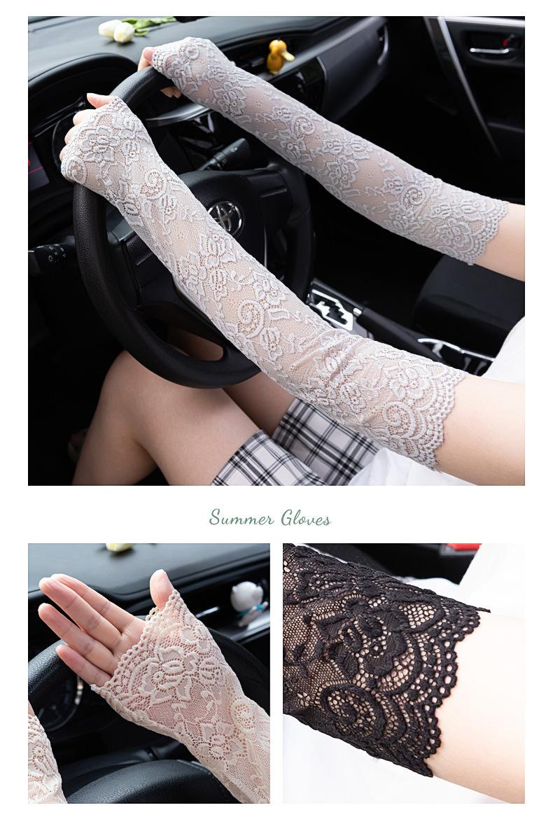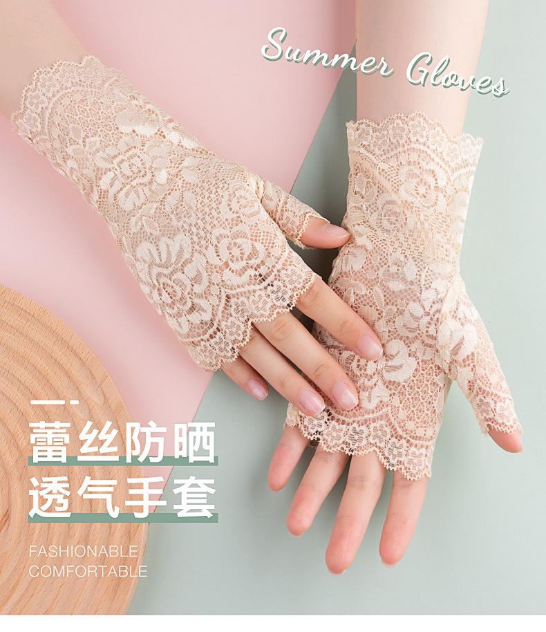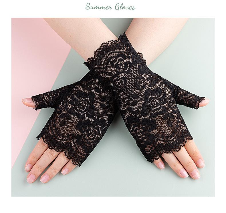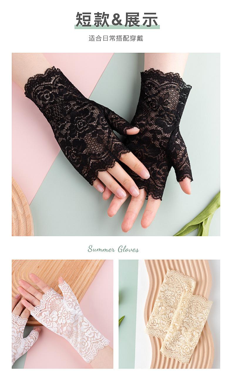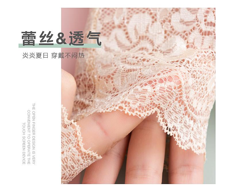 Guantes de protección solar de verano para mujer, para deportes al aire libre, para conducir, antideslizantes, transpirables, delgados, de encaje calado, con dedos descubiertos, compatibles con pantalla táctil