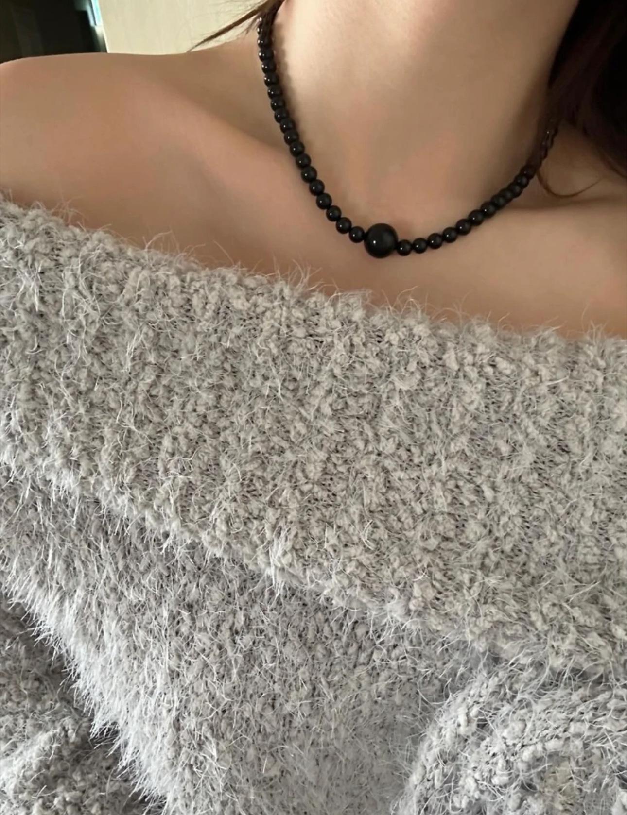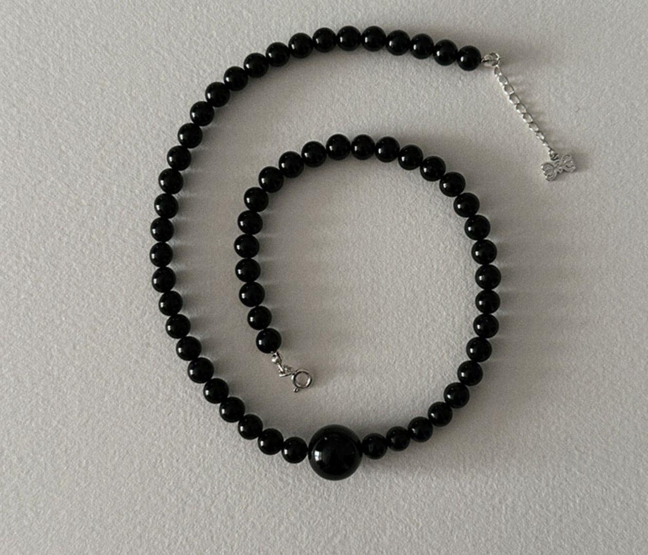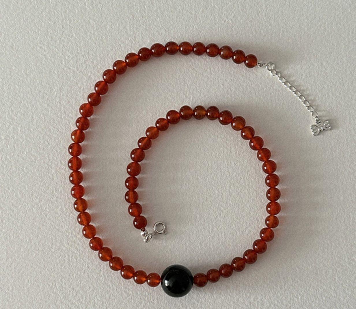 Collar de ágata negra natural hecho a mano, nuevo estilo chino, bola sencilla que combina con todo, cadena de clavícula retro personalizada con cuentas hechas a mano