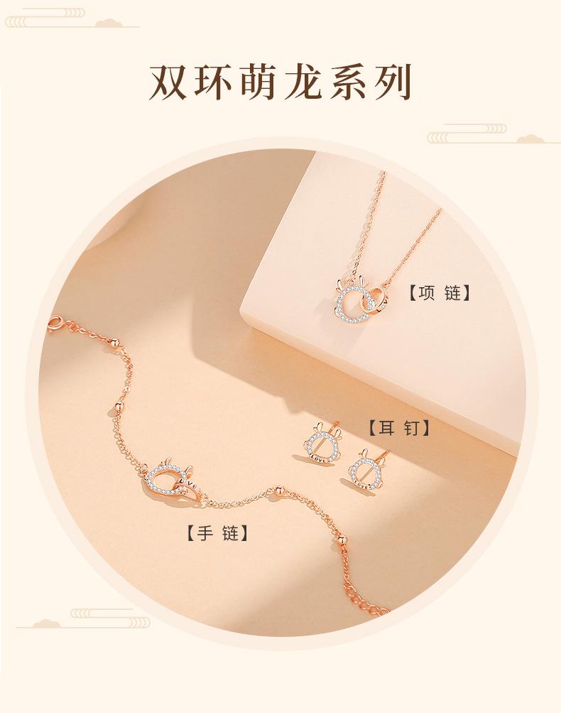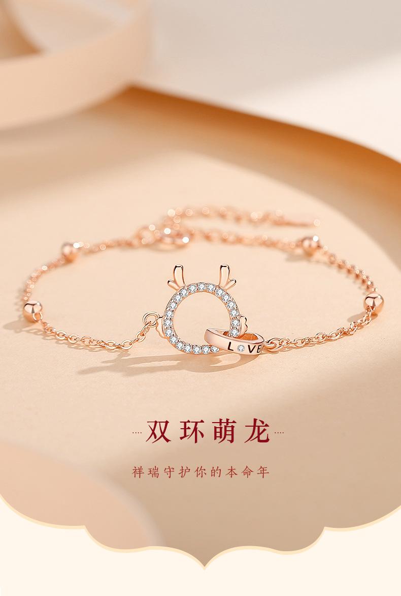 Gran Venta Pulsera Original de Doble Anillo con Lindo Dragón para Mujer Plata Esterlina Año del Zodíaco del Dragón Año Animal Nueva Tendencia Chinoiserie Lujo Accesible Joyería de Mano