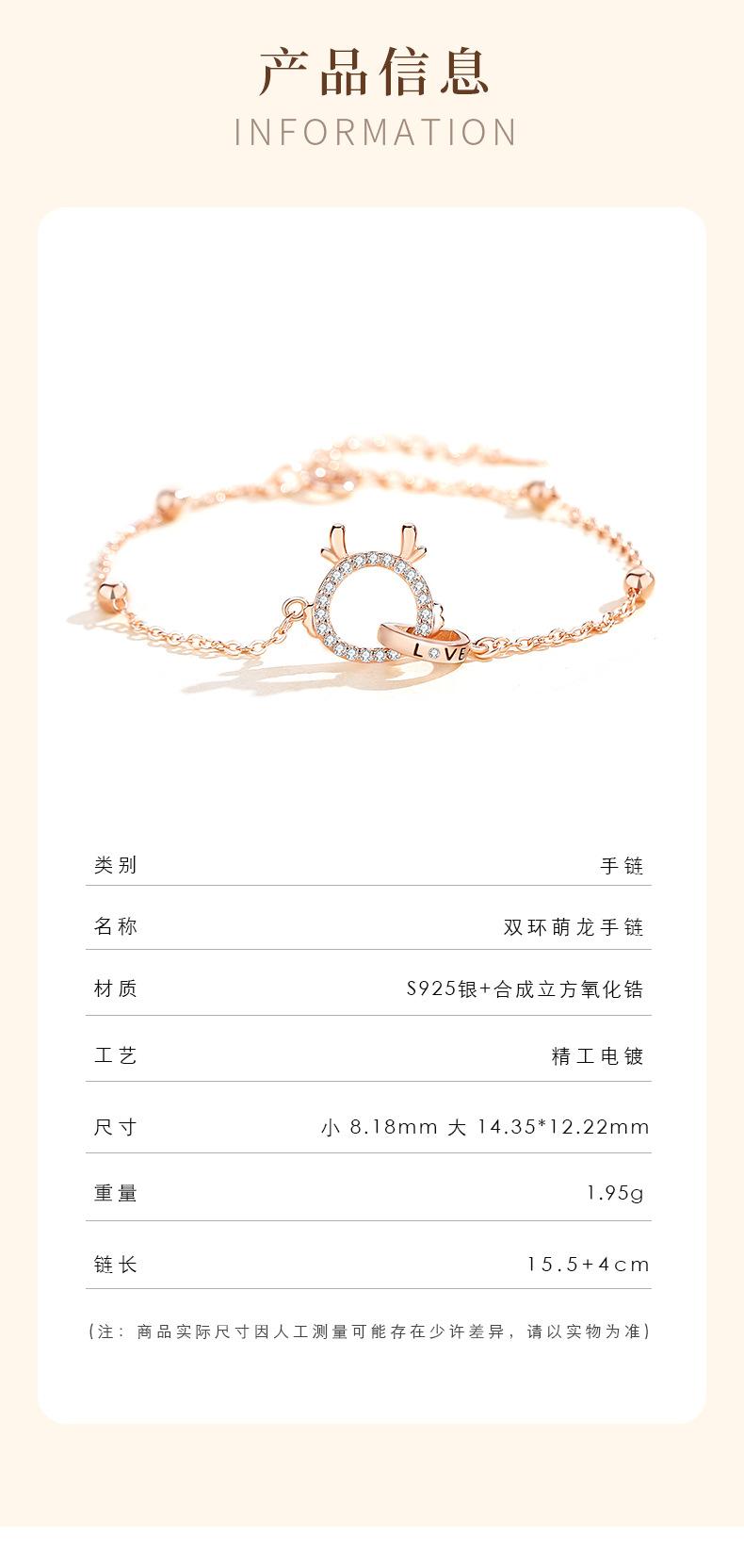 Double ring cute Dragon Bracelet rose gold, Double ring cute dragon bracelet White Gold