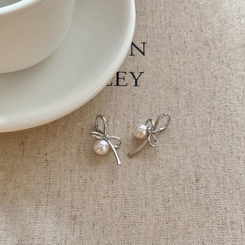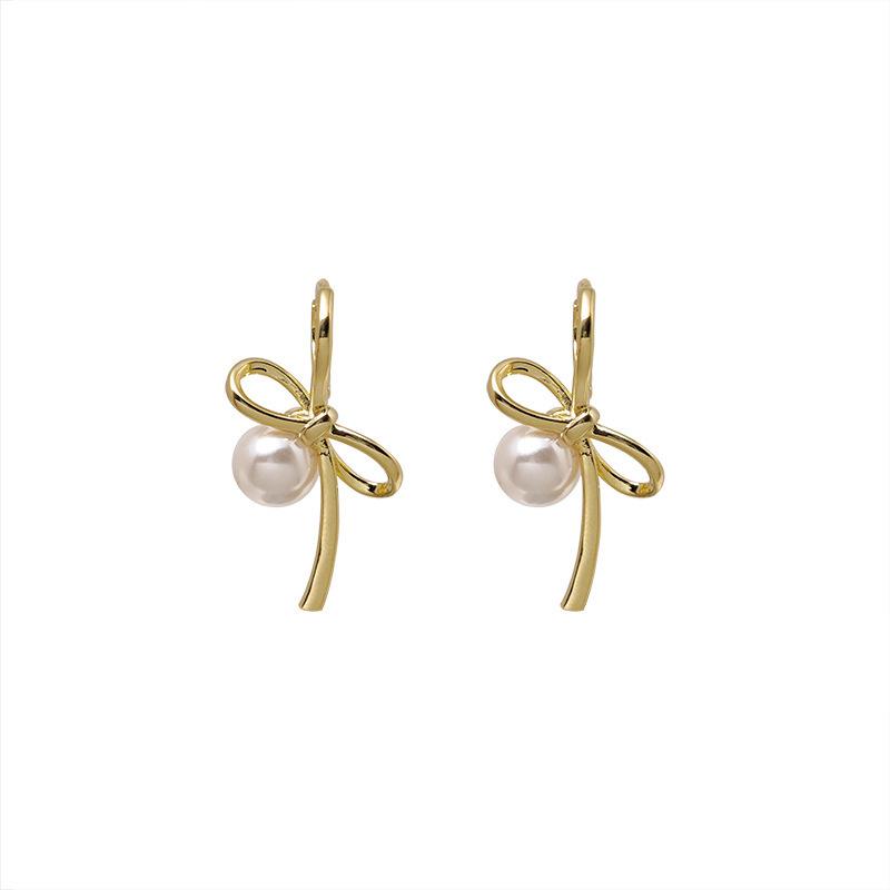 Pendientes de nicho con lazo simple y perla, elegantes, de moda, con viento frío, únicos y combinables para mujer.