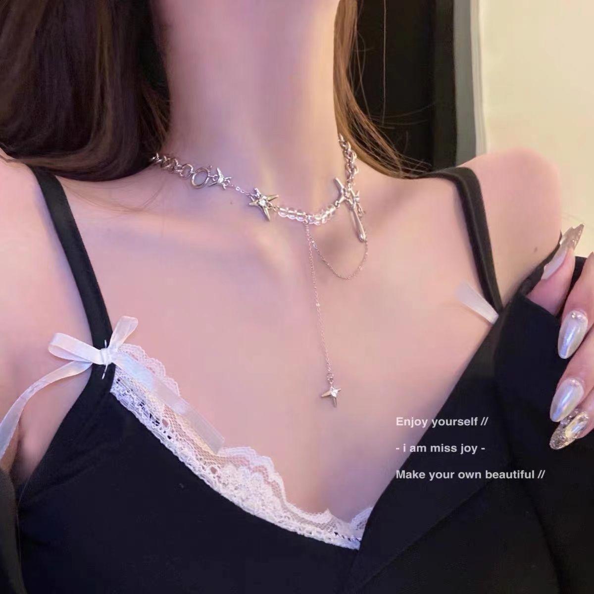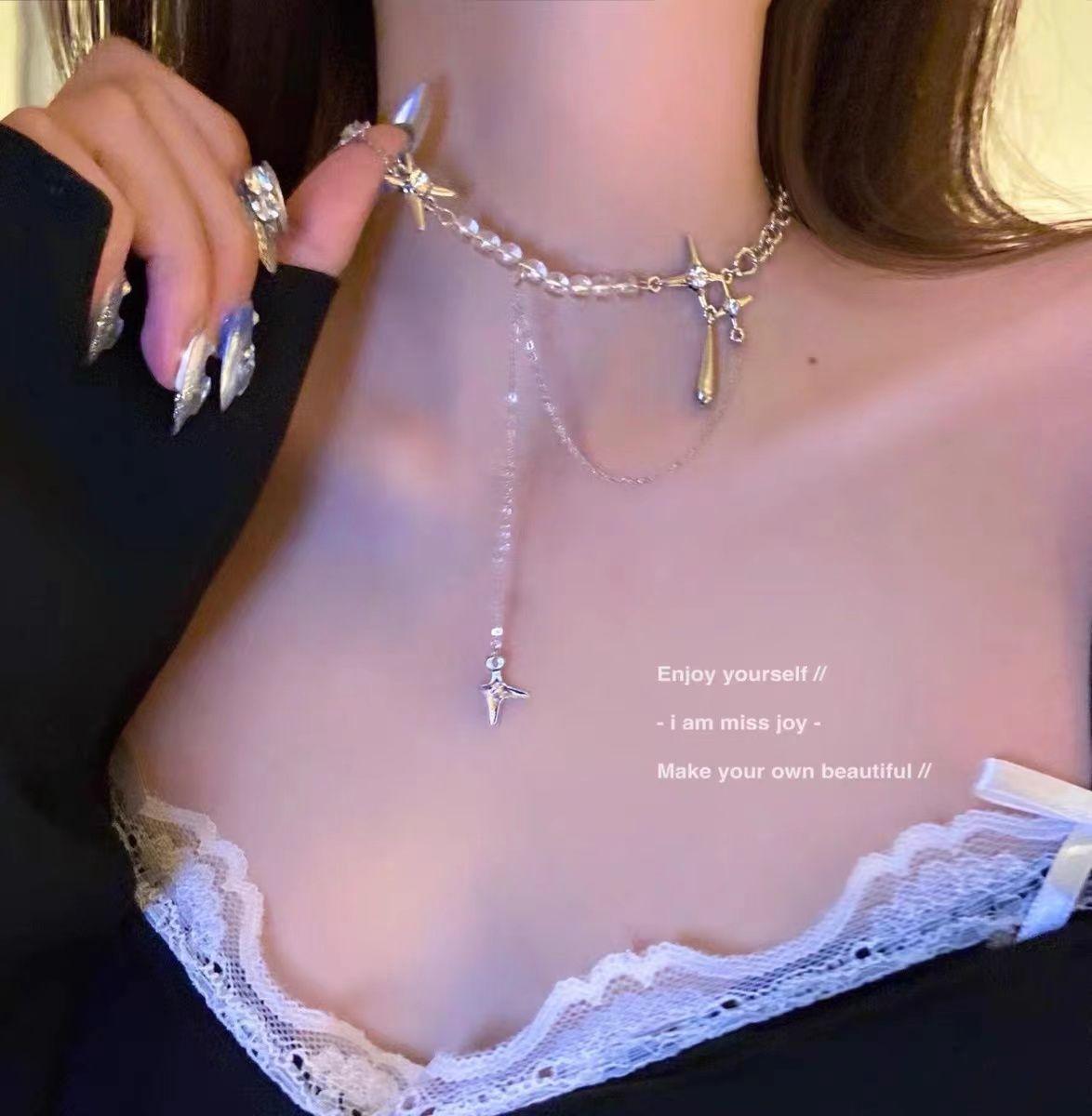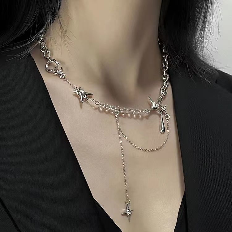 Collar para mujer 2022, nueva moda, diseño de nicho, colgante de gota de agua con forma de estrella, collar para chica sexy, dulce y genial, cadena de clavícula