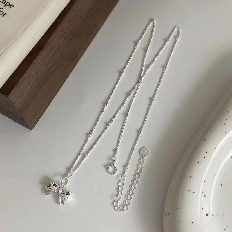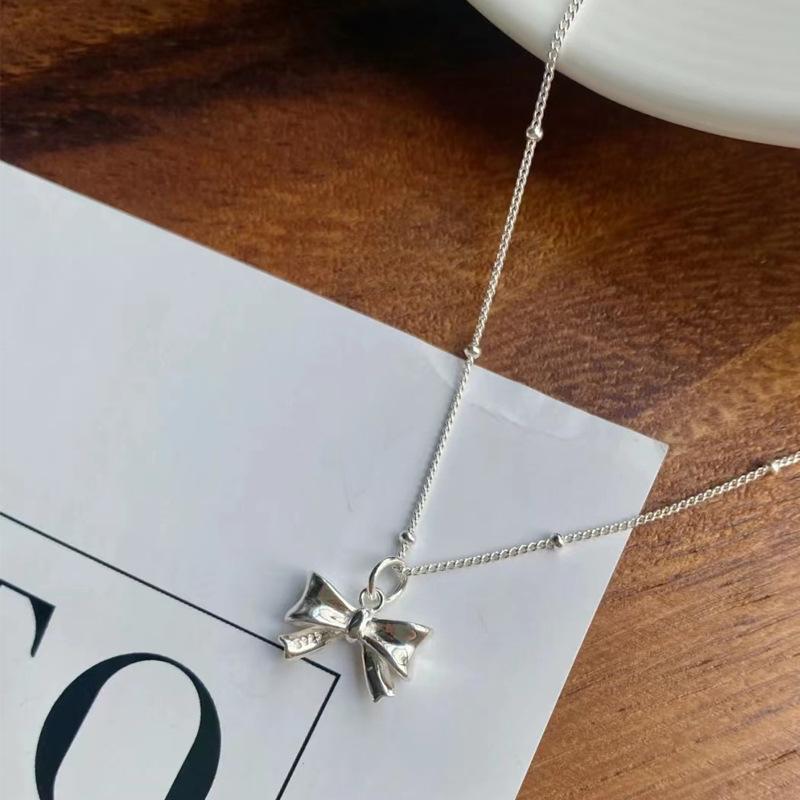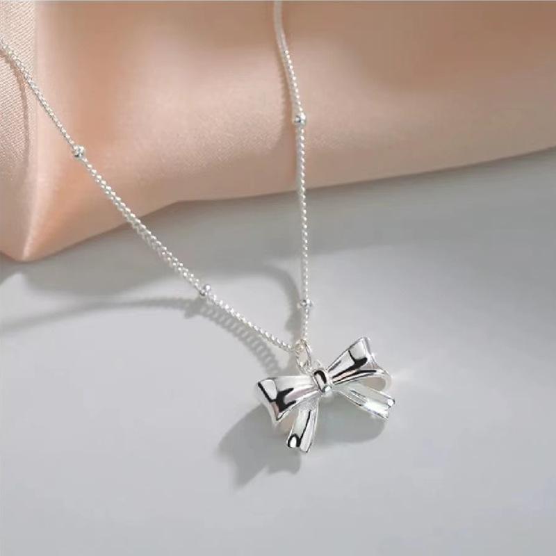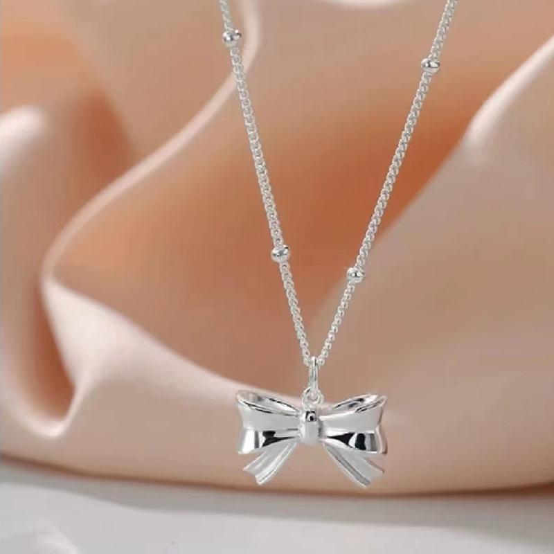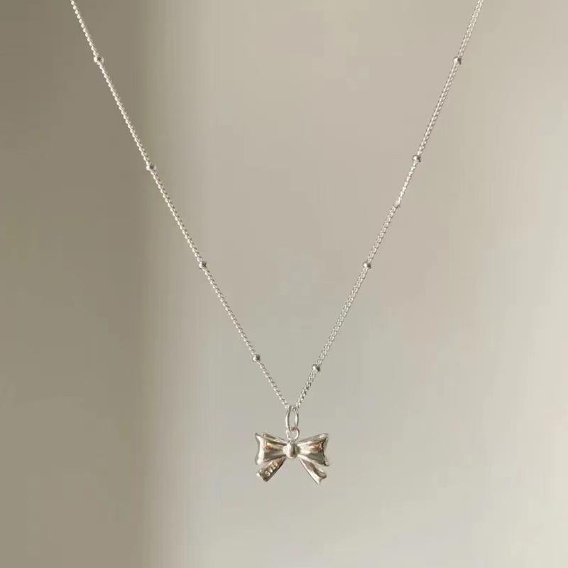 Bowknot pendant bead chain silver