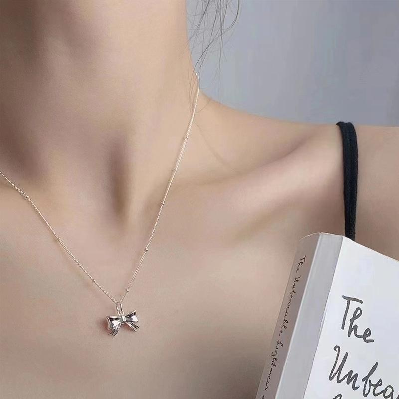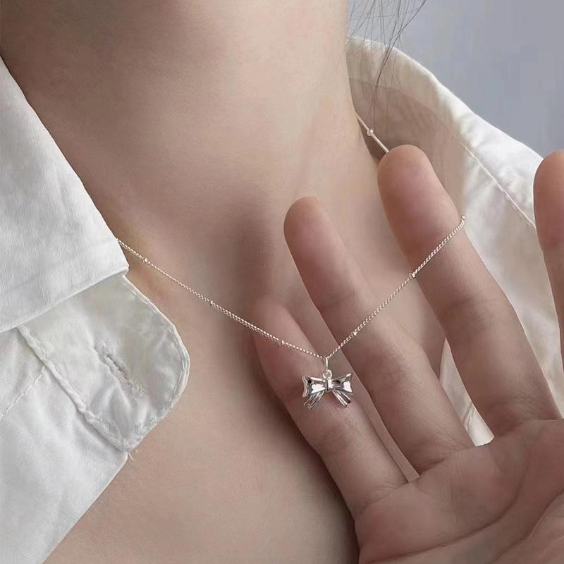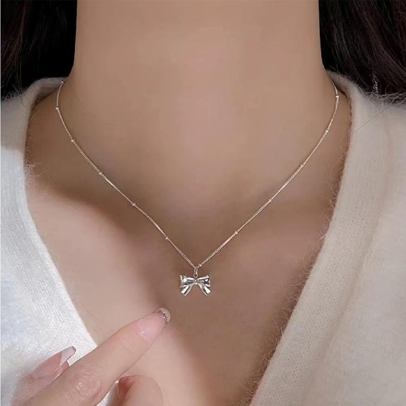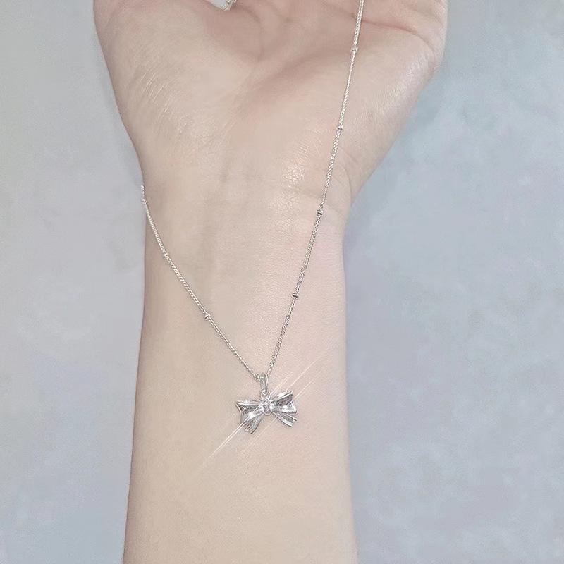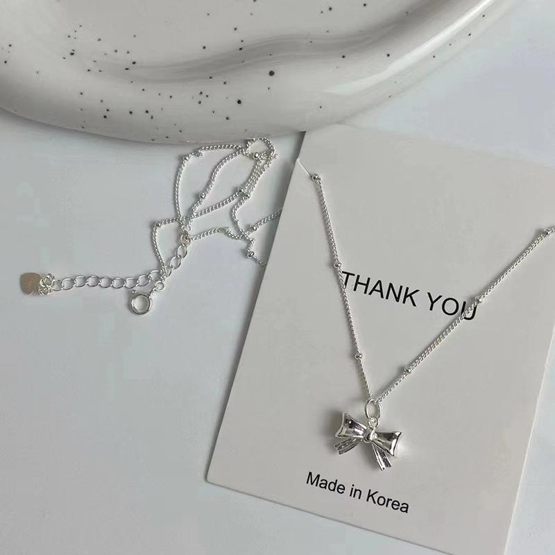 Bowknot pendant bead chain silver