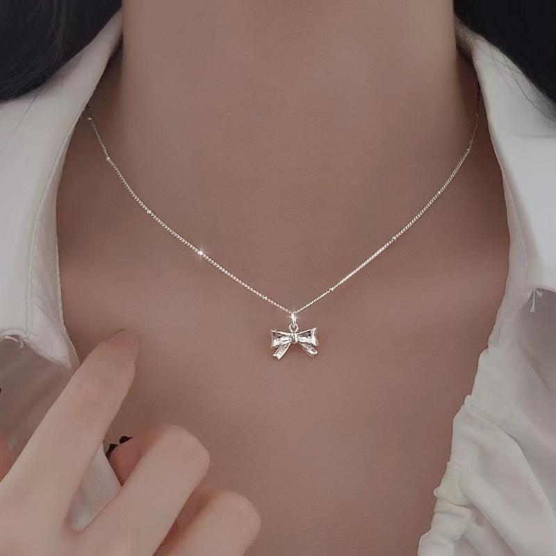 Collar de lazo de plata de ley 925 para mujer, ligero, lujoso, elegante, con cadena de cuentas, combinable a la moda, 2023.