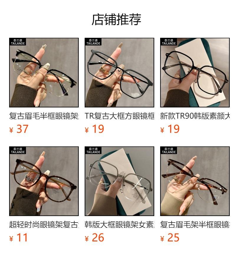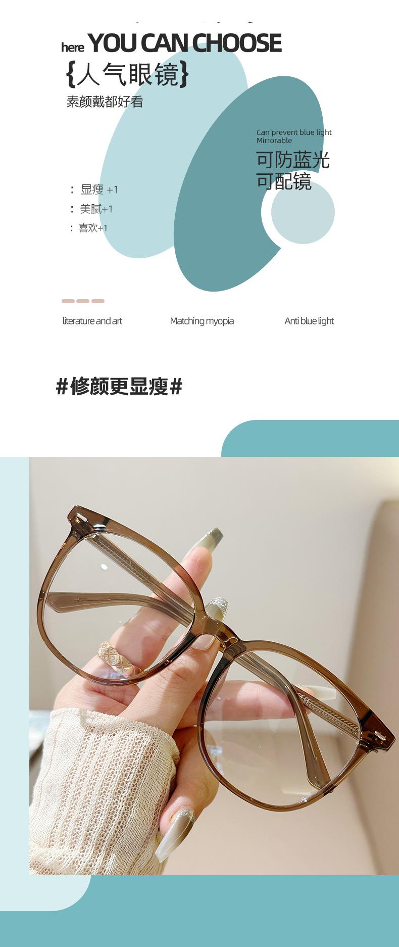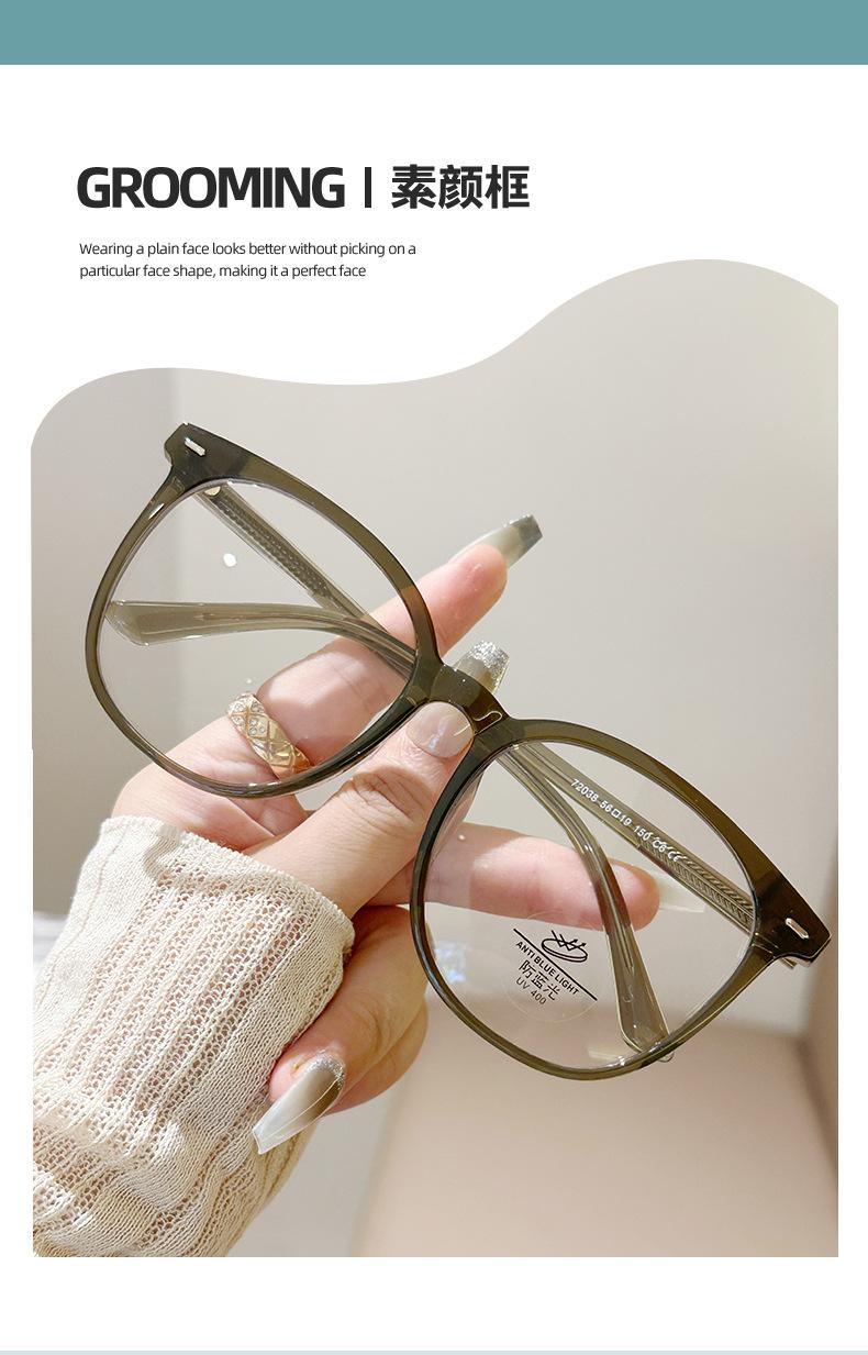 72038 Armazón Grande Estilo Coreano Tr90 para Gafas de Miopía para Hombres y Mujeres Venta al por Mayor Hogar Diario Estilo Perezoso Negro Brillante Gafas Planas