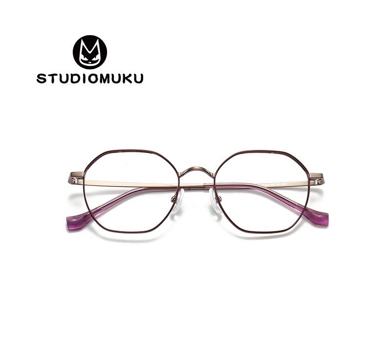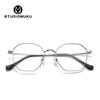 STUDIOMUKU Madera Gafas Cool Marco Artístico Retro Diseño Poligonal con Gafas de Montura Ligera y Delgada