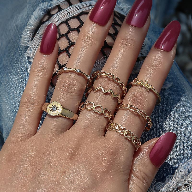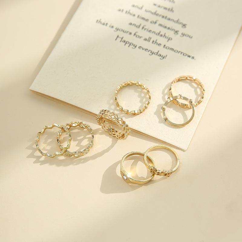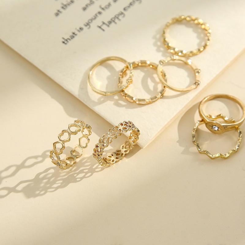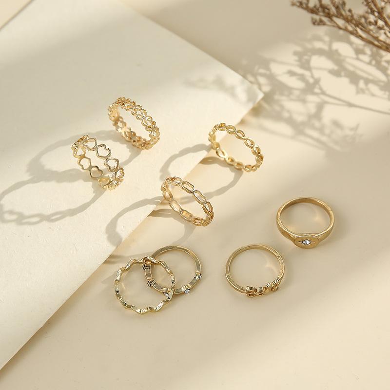 Deseo Nuevo Anillo de Nudo Hueco para Articulación Europeo y Americano Simple Letra Diamante Amor Anillo de 10 Piezas Anillo