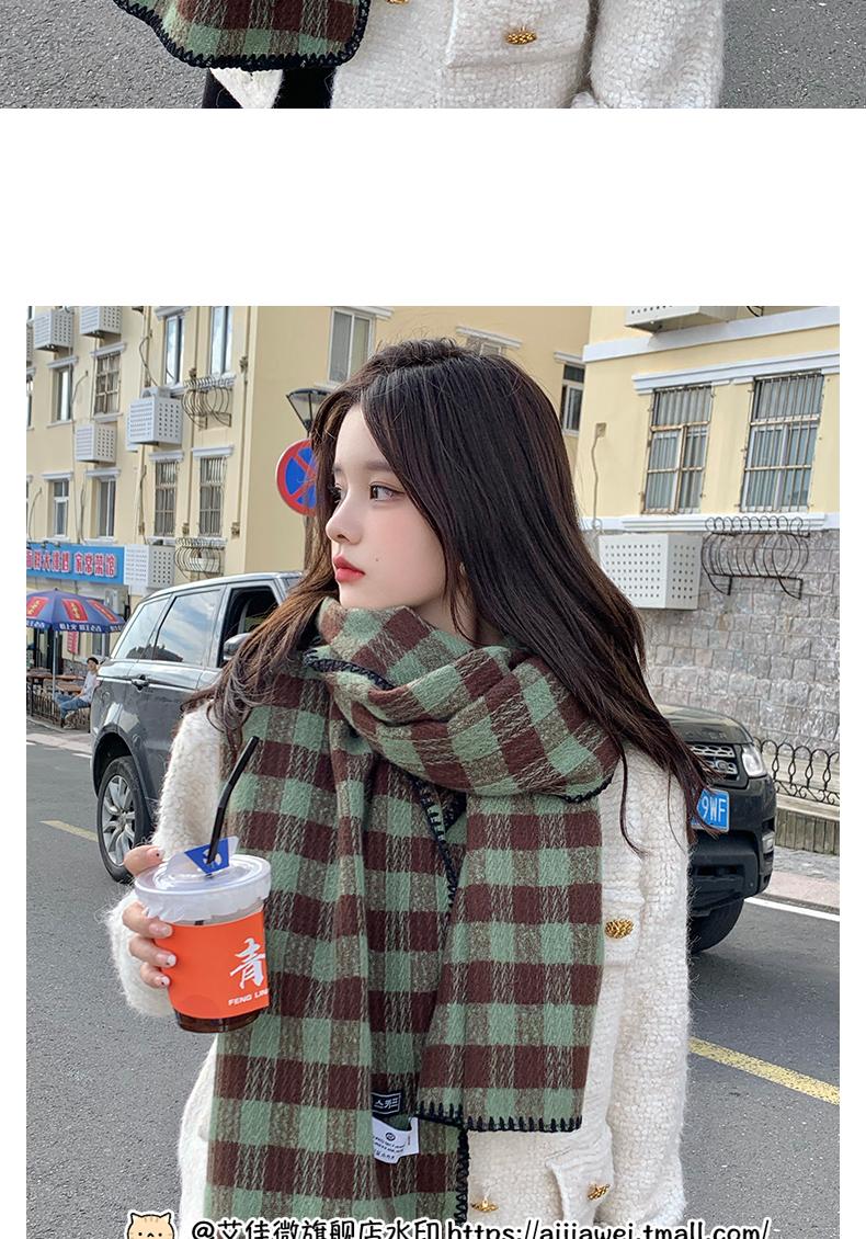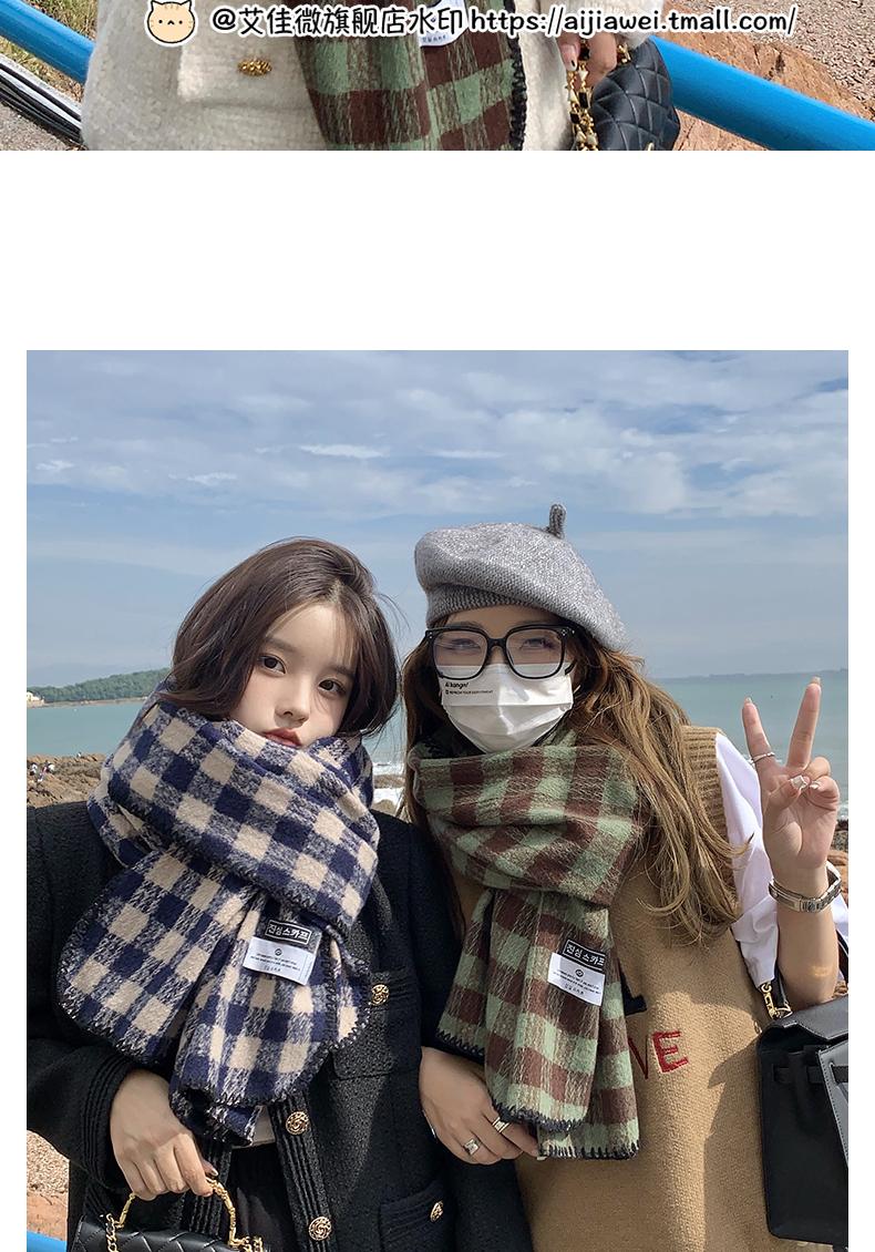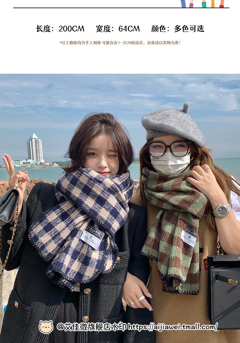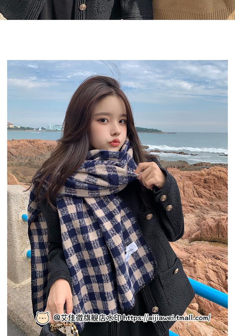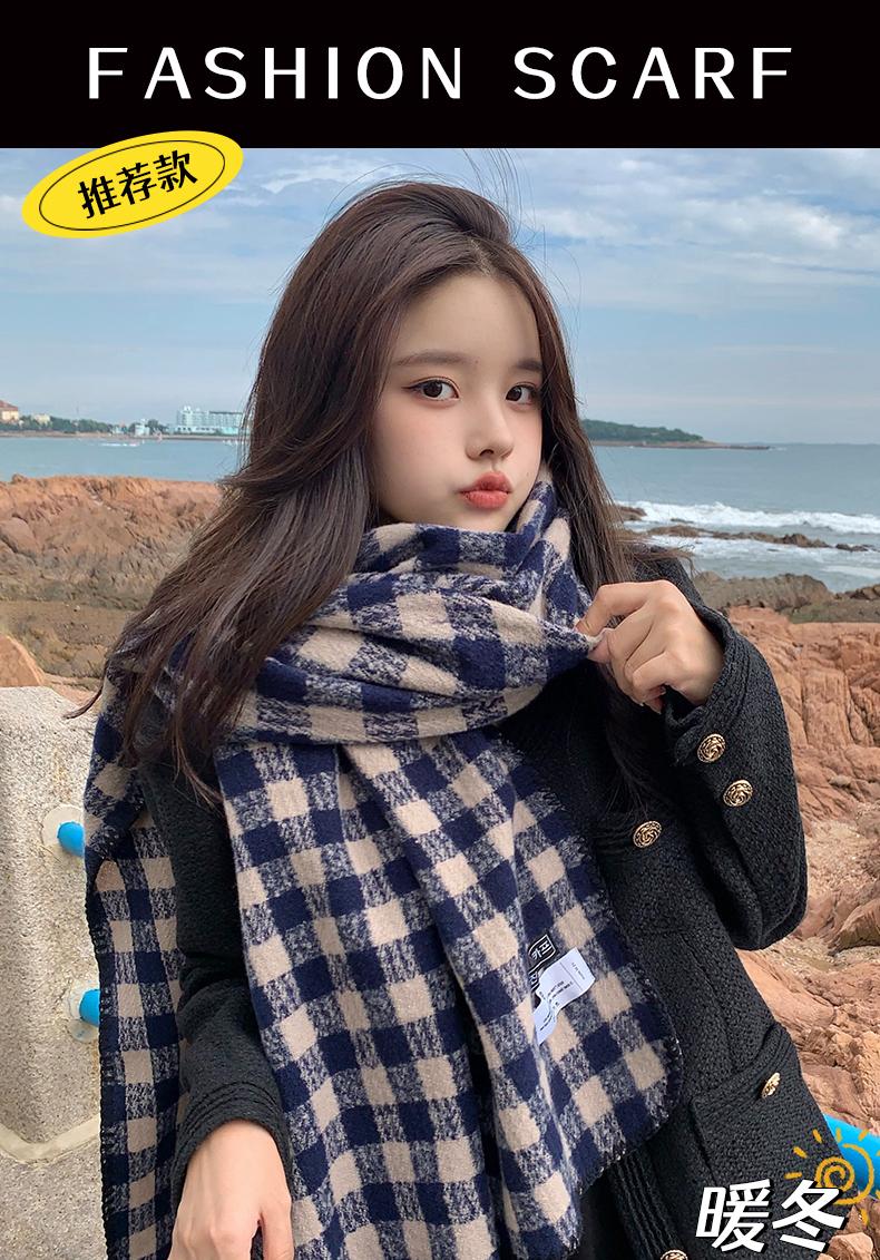 Bufanda ins para mujer invierno estilo coreano versátil otoño e invierno nueva bufanda de estudiante pareja cálida chal de cuadros japonés mujer