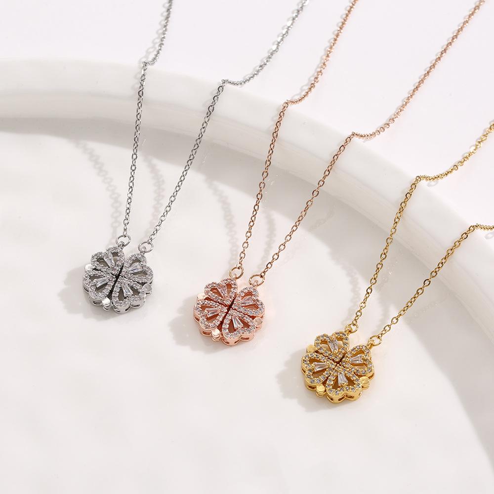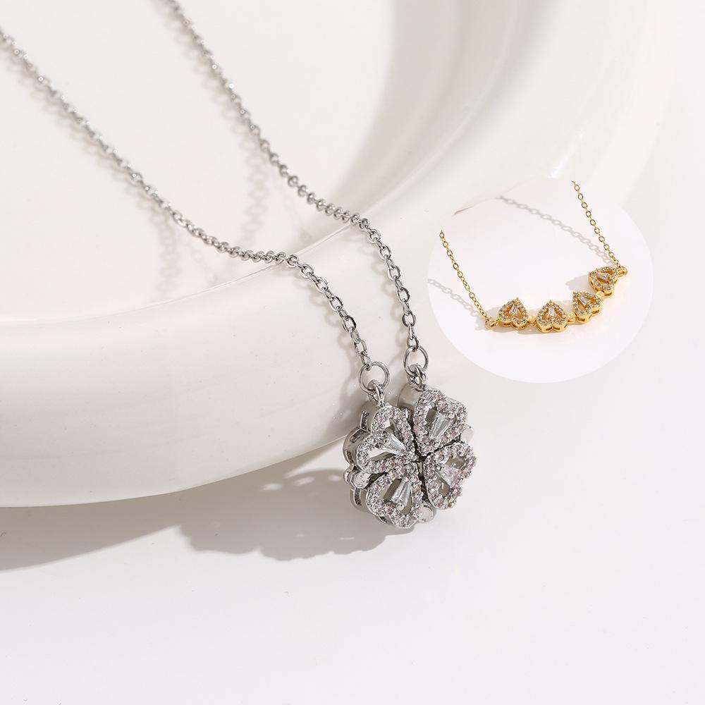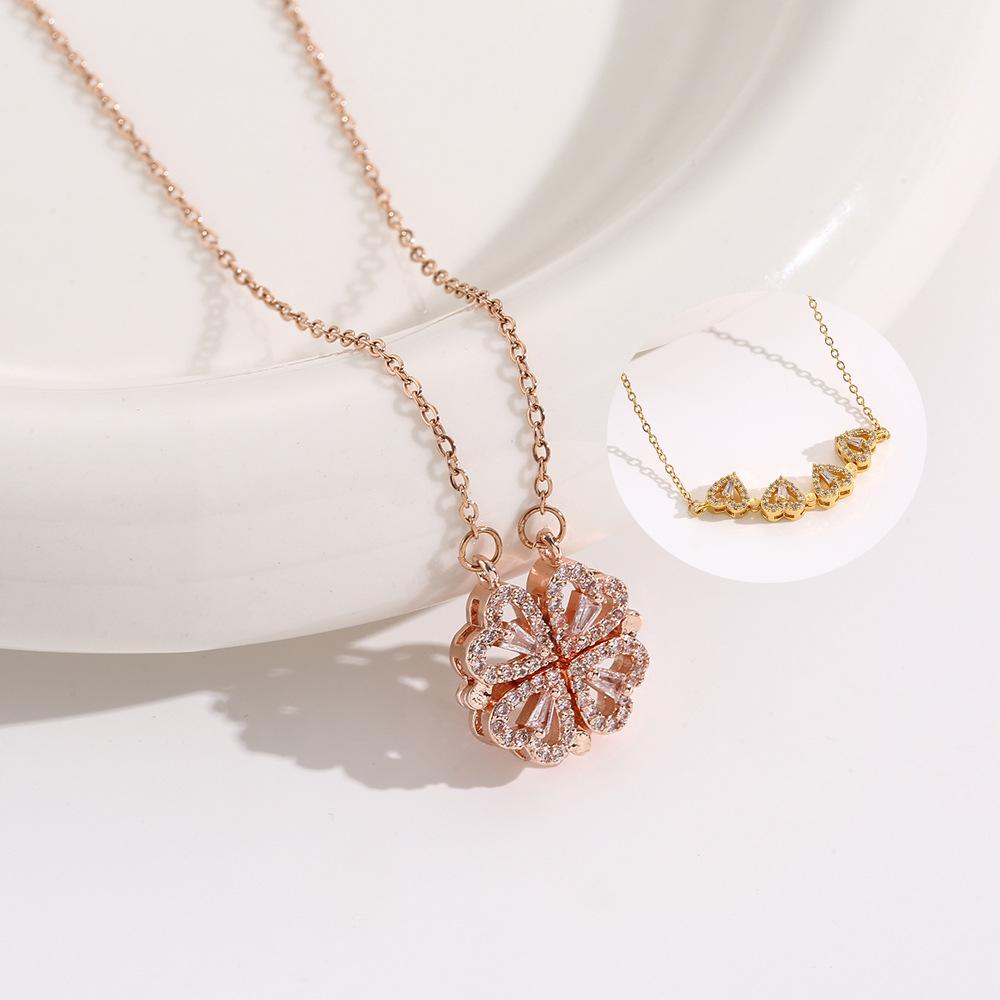 Versión coreana de un exquisito collar de acero de titanio de alta calidad con microincrustaciones, un colgante de trébol de cuatro hojas multiusos que se puede abrir y una cadena de clavícula de alto sentido.