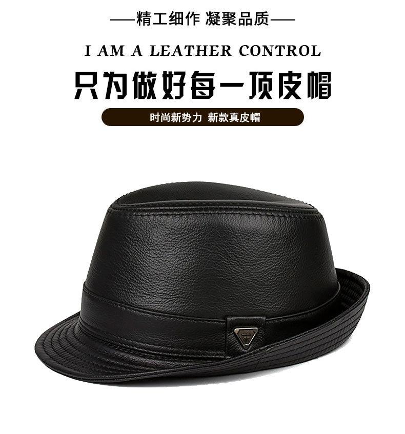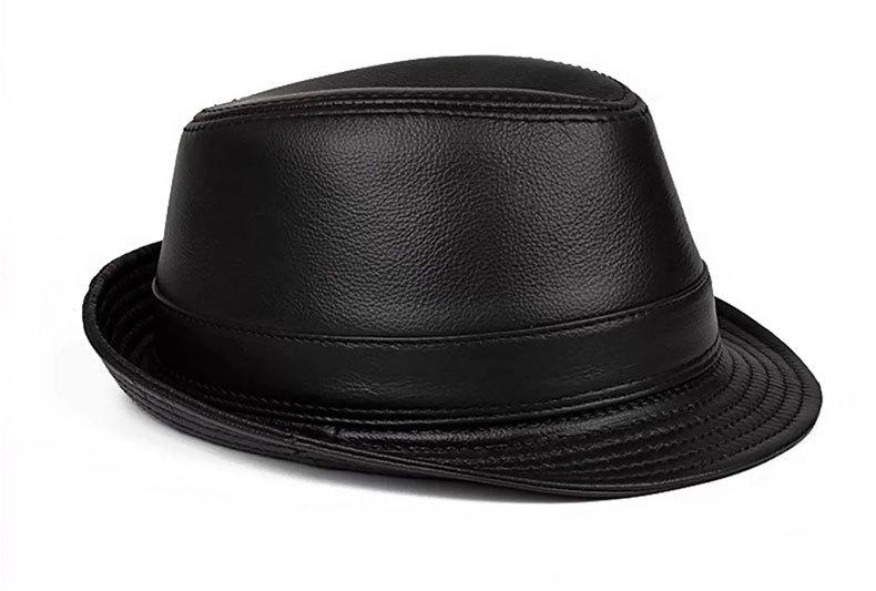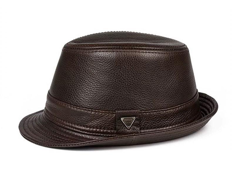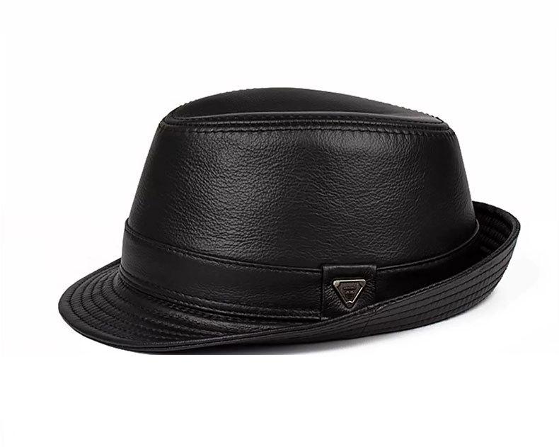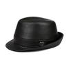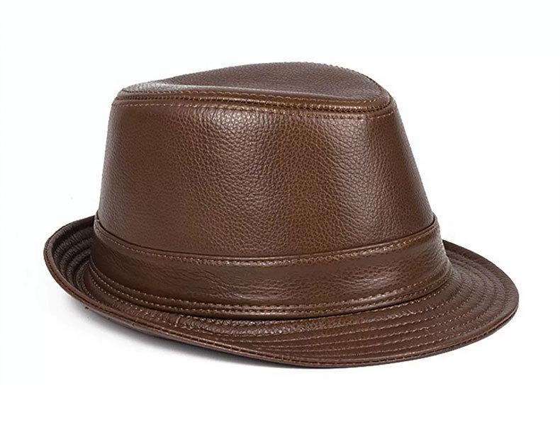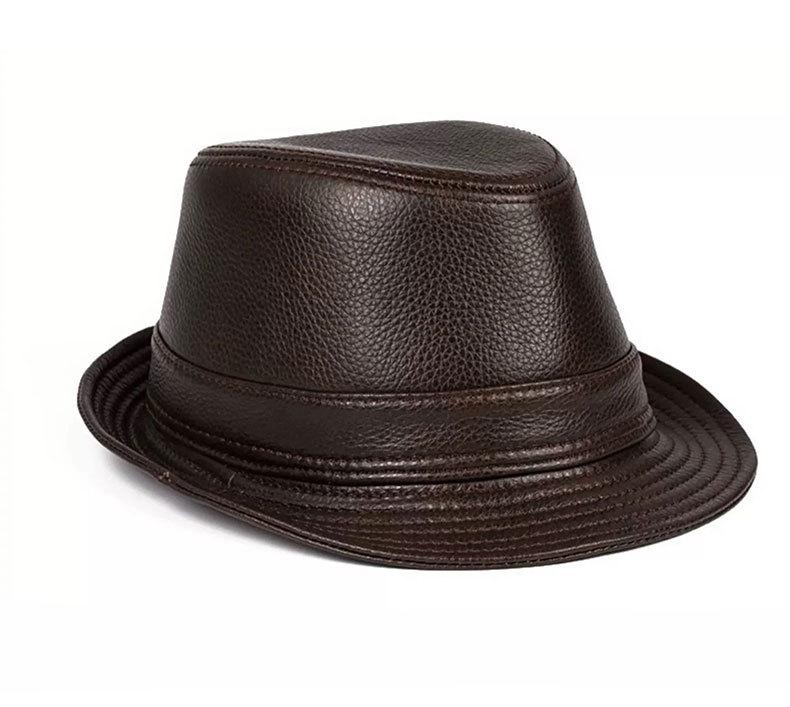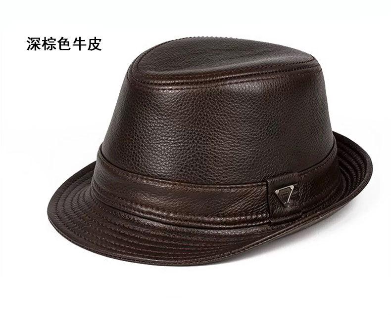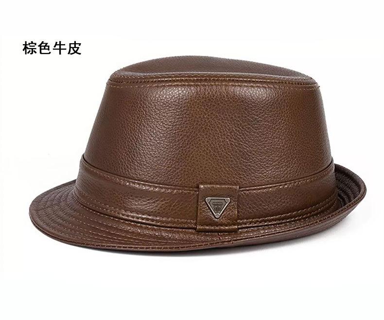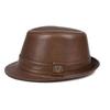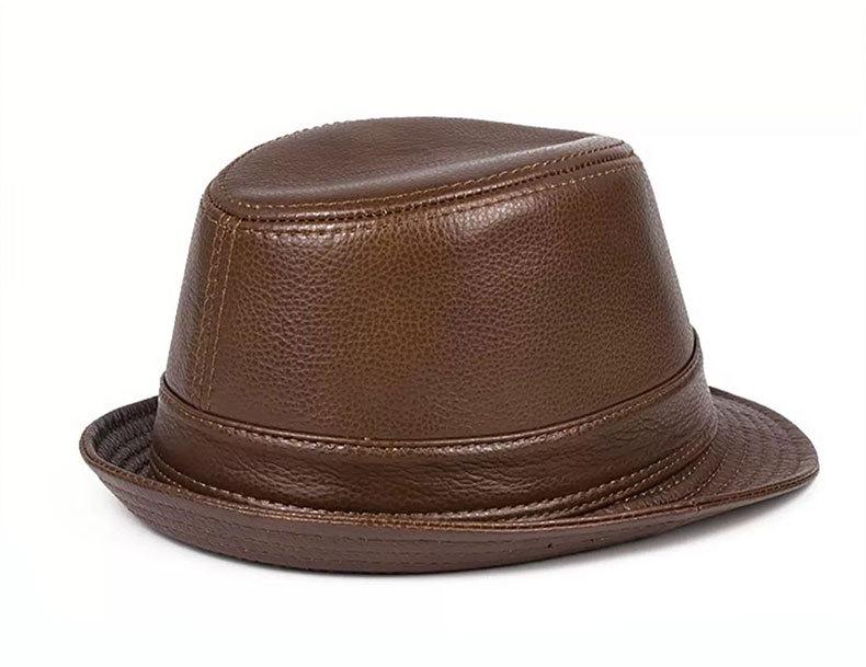 Sombrero de copa de cuero genuino para hombre de otoño e invierno para papá, personas de mediana edad y mayores, sombrero de piel de vaca, sombrero de jazz retro de caballero británico para hombre viejo