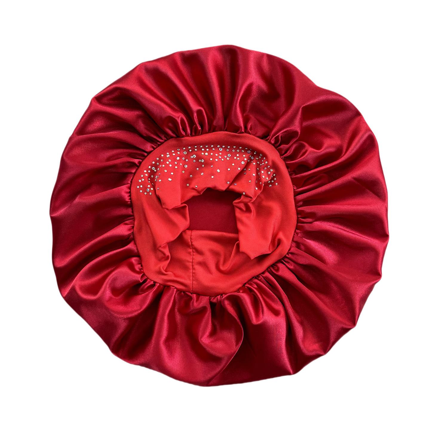 2024 nuevo gorro de noche hecho a mano con taladrado en caliente color seda de imitación europeo y americano cuidado del cabello gorro de ducha comercio exterior transfronterizo nuevo gorro redondo